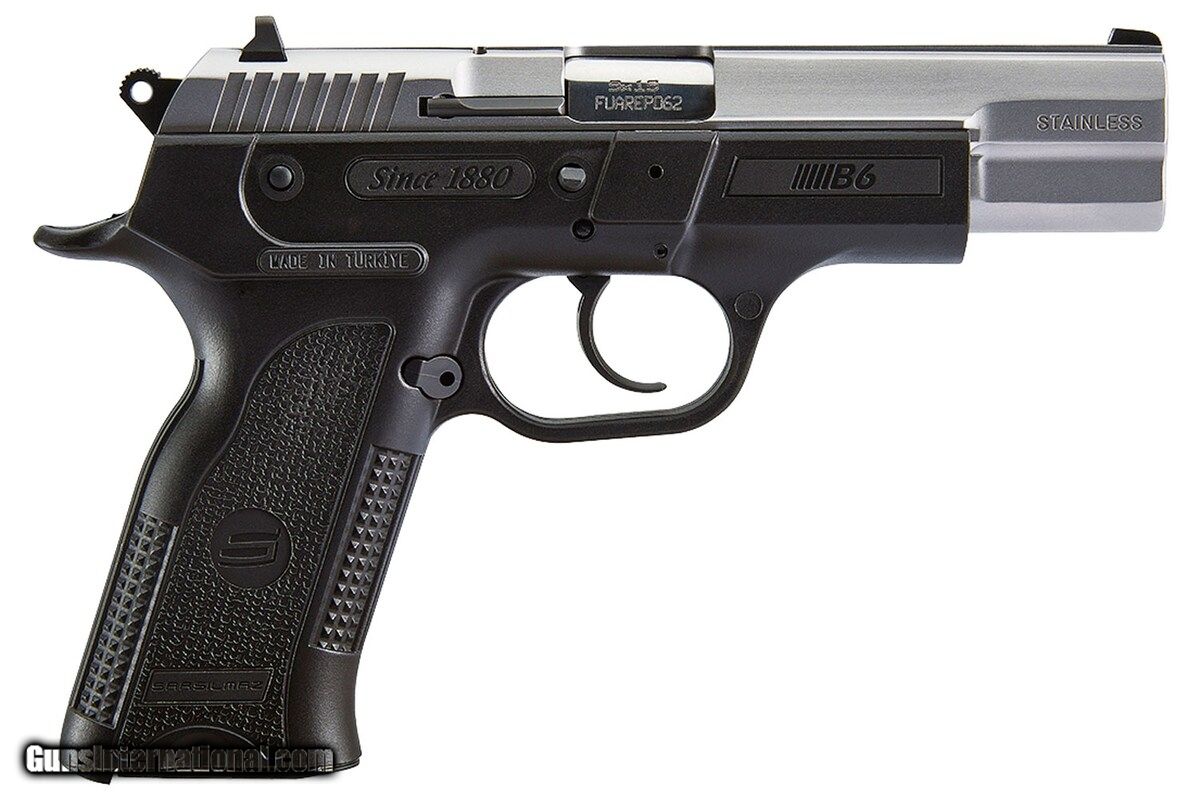Description: Guns Listing ID: 20675 This SAR USA B6 pistol features 4.5\" hammer-forged barrel, 3-dot sights, black polymer frame, stainless steel slide, and has a 17-round magazine capacity. SOLD Manufacturer: SAR USA Model: B6 Caliber Info: 9MM LUGER (9X19 PARA) Condition: new Barrels: 4.5" barrel Finish: BLACK |