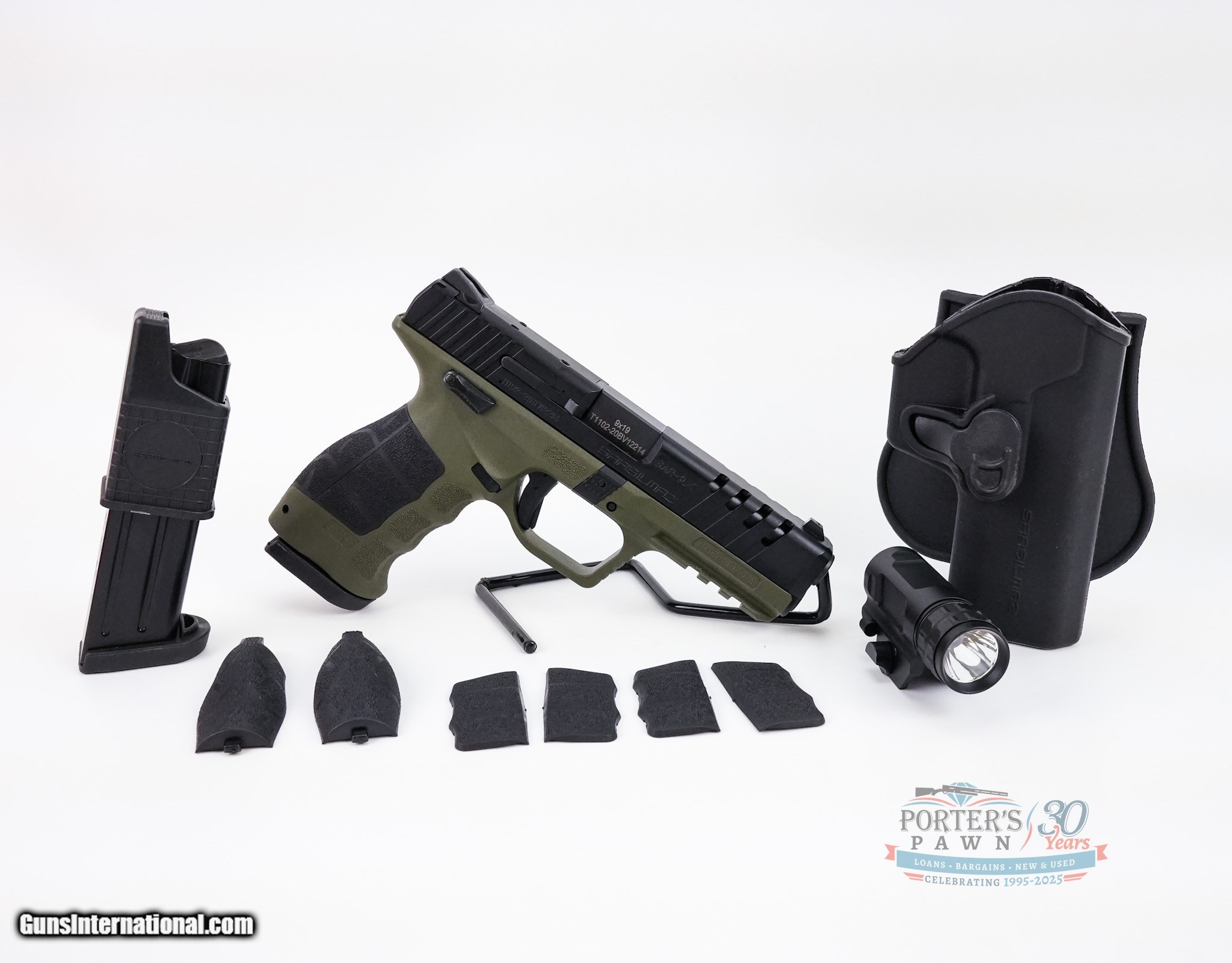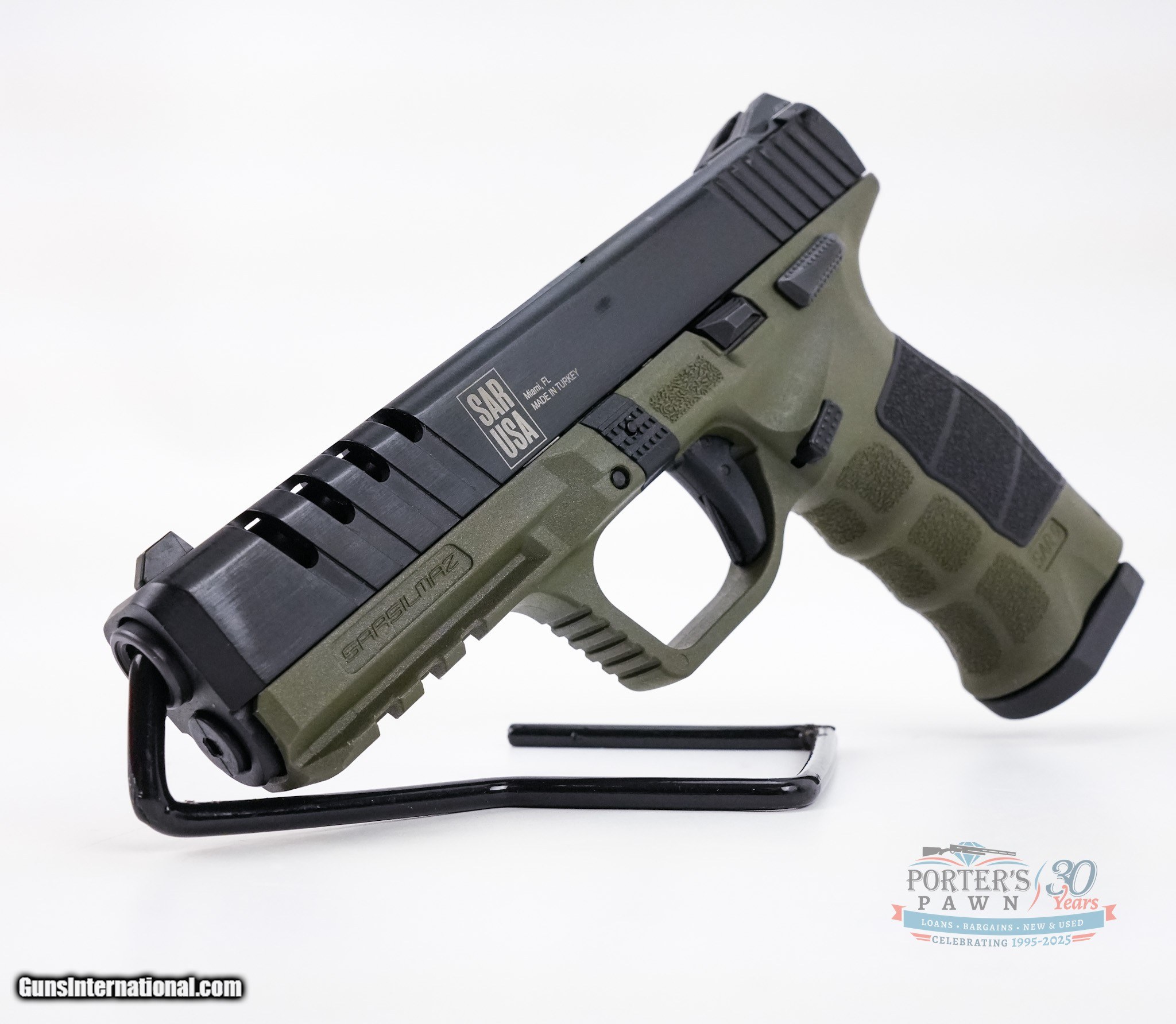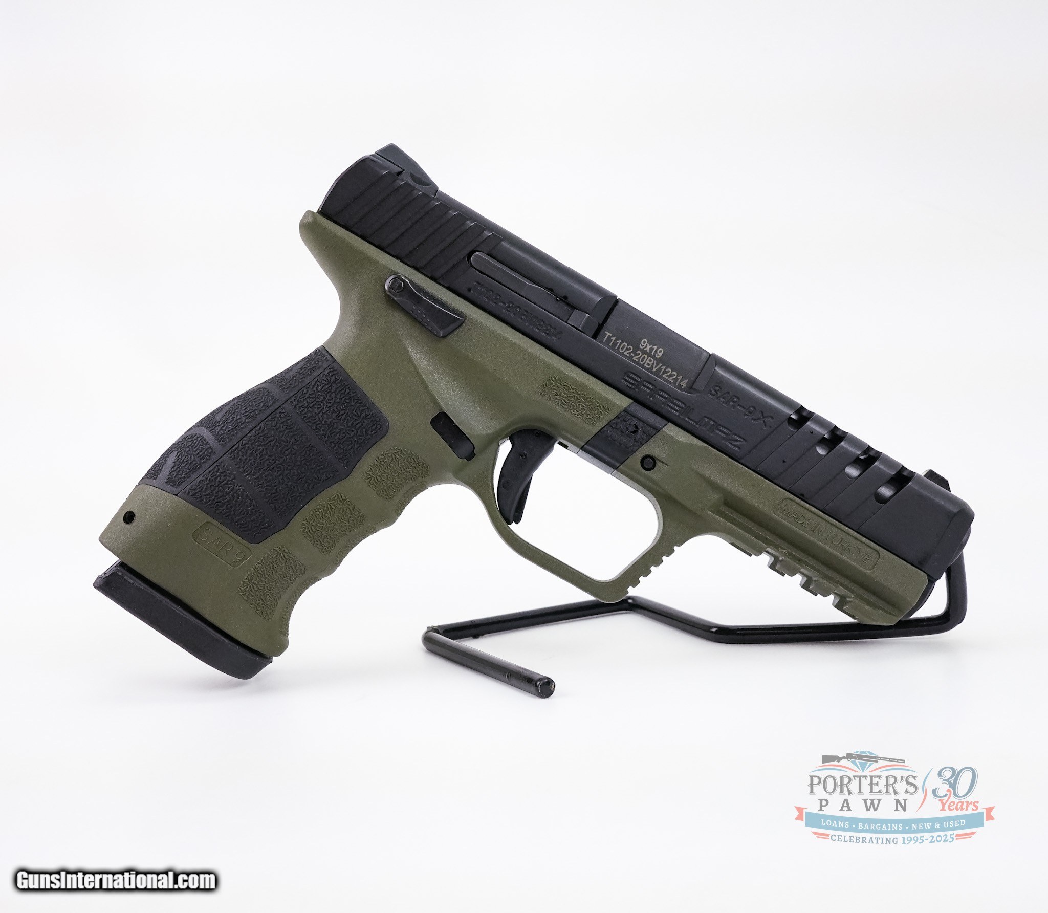 Description: For sale is a factory new SAR USA SAR-9X, a high-performance 9mm semi-automatic pistol built for reliability, accuracy, and comfort. Featuring a forged steel barrel and slide with lightening cuts, this pistol delivers a balance of durability and reduced weight. The polymer frame ensures lightweight handling, and the manual safety provides an extra layer of security. This SAR-9X comes in a striking green Cerakote finish and includes interchangeable grip panels and backstraps to customize the fit to your hand. With a 4.4-inch barrel and a generous 17+1 capacity, this striker-fired pistol is an excellent choice for self-defense, target shooting, or duty use. Specifications