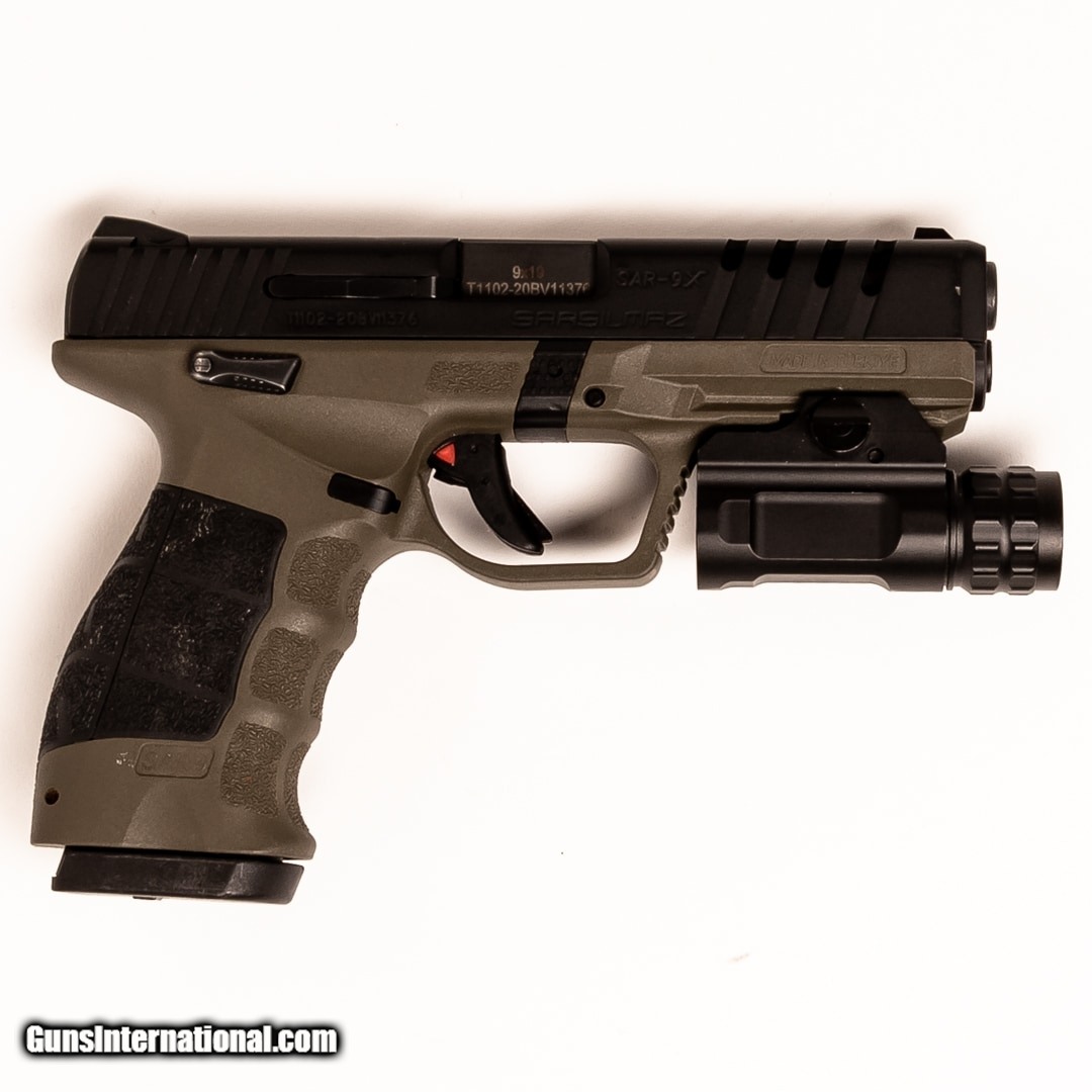 Description: Guns Listing ID: 635279 The Sar Arms Sar-9X is an affordable yet dependable semi-automatic handgun. It‚‚s chambered in 9mm and will make an excellent home defense, personal protection, and range use pistol SOLD Manufacturer: SAR ARMS Model: SAR-9X Caliber Info: 9MM LUGER (9X19 PARA) Condition: Used - Certified Barrels: 4.4 BARREL Finish: OD GREEN/BLACK |