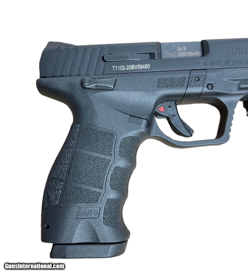 Description: Guns Listing ID: 591626 Manufacturer: Sarsilmaz Importer: Sar Arms Model: Sar 9 Type: Handgun Action Type: Semi-Automatic Caliber / Gauge: 9 MM Finish: Black Barrel Type: Single Grip Type: Polymer Barrel Length: 4.5 Magazine Capacity: 17 Magazine Quantity: 2 Case included: yes Condition: Used SOLD Manufacturer: SAR ARMS Model: Sar 9 Caliber Info: 9MM LUGER (9X19 PARA) Condition: Used - Non-Certified Barrels: 4.5 BARREL Finish: BLACK |