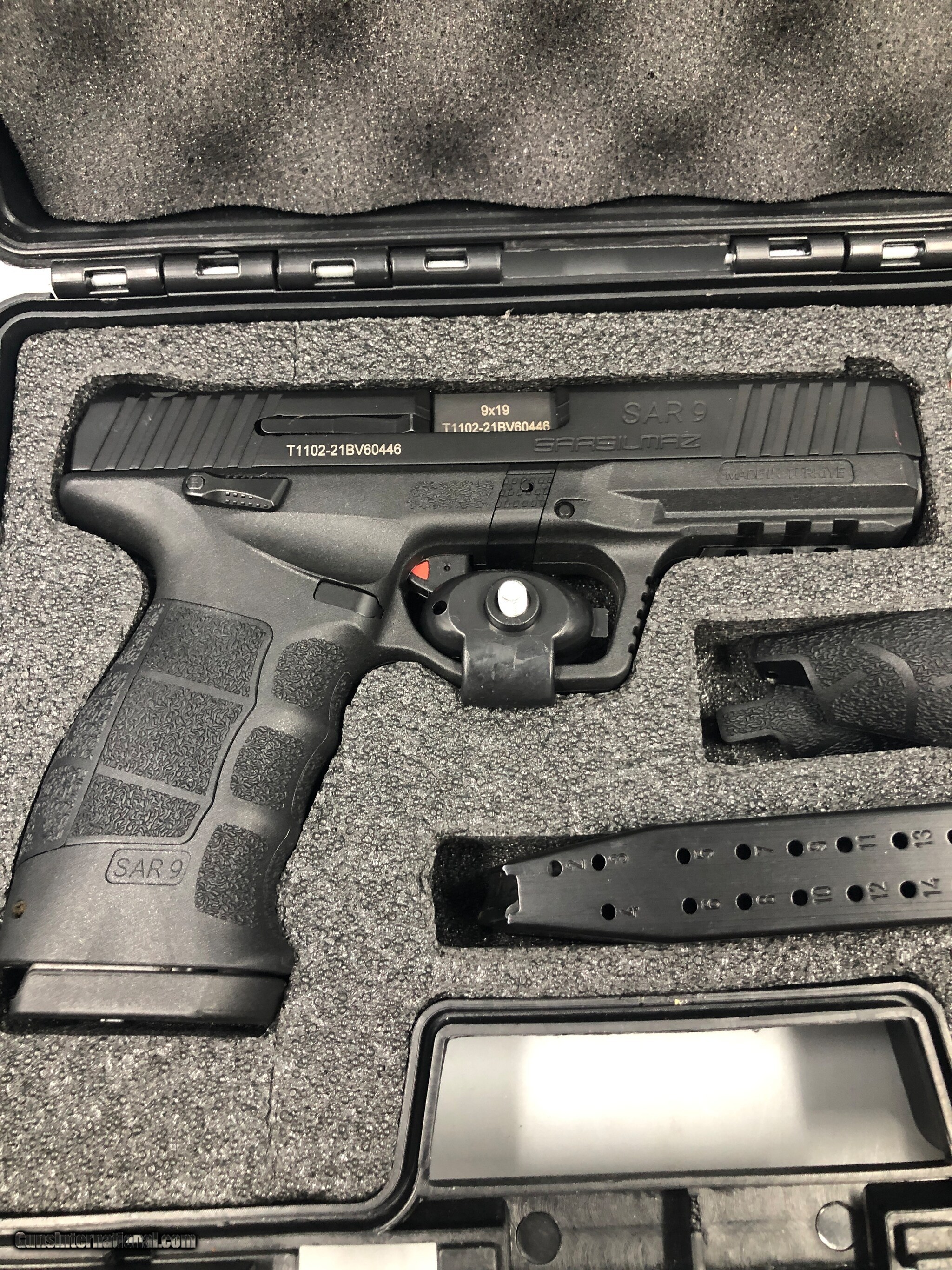 Description: Guns Listing ID: 609741 Sarsilmaz SAR9 9mm pistol in case w 2 magazines in excellent condition. SOLD Manufacturer: SARSILMAZ (SAR ARMS) Model: SAR9 Caliber Info: 9X19MM Condition: Used - Non-Certified Barrels: 5 BARREL Finish: BLACK |