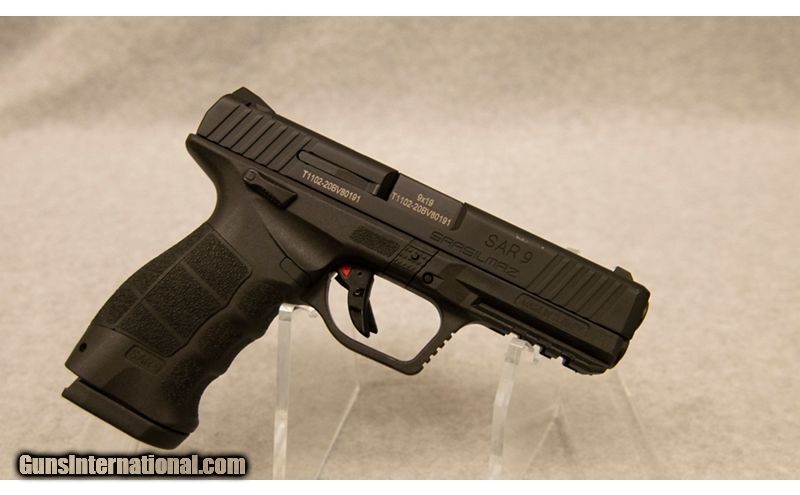 Description: Sarsilmaz SAR9 chambered in 9mm with 17 round magazines. Features include: low profile combat sights, lower picatinny rail, and front and rear serrations 9mm Luger SOLD Chambers: 9mm Metal Condition: Good Bore Condition: Very Good Barrels: 4.25' Sights: Low Profile Item Location: Fort Mill, SC |