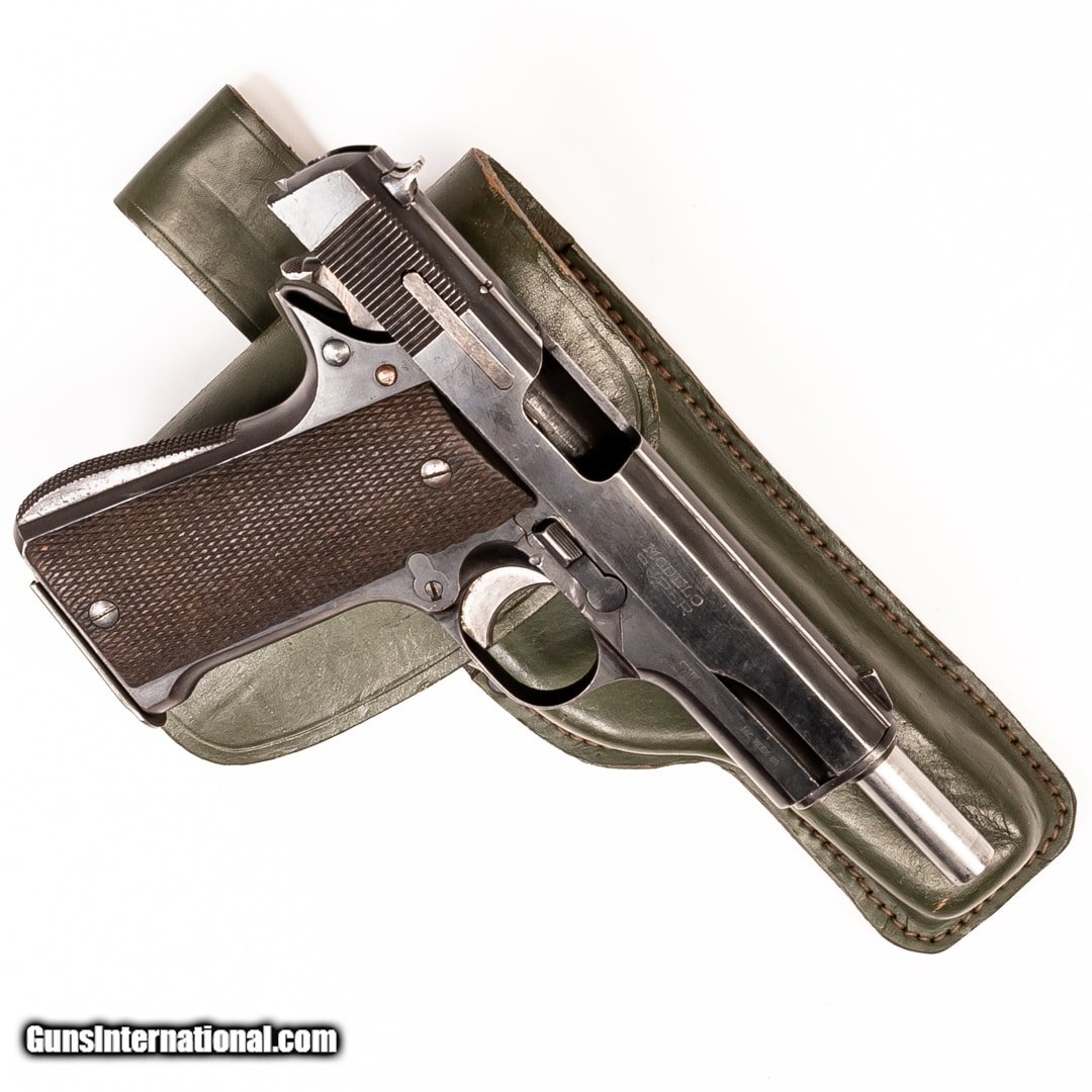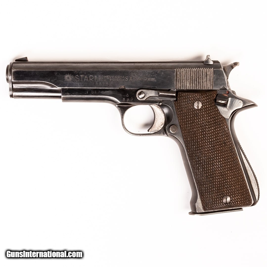 Description: Guns Listing ID: 408790 STAR BONIFACIO ECHEVERRIA, S.A. manufactured many different pistol designs that were copied off of popular military handgun designs. The Modelo Super was designed and started production in 1924 and it is a 1911 variant that is chambered for 9mm Largo. This handgun comes with one 8-round magazine and a green leather holster. SOLD Manufacturer: STAR BONIFACIO ECHEVERRIA, S.A. Model: MODELO SUPER Caliber Info: 9MM LARGO Condition: Used - Certified Barrels: 5 BARREL Finish: BLACK |