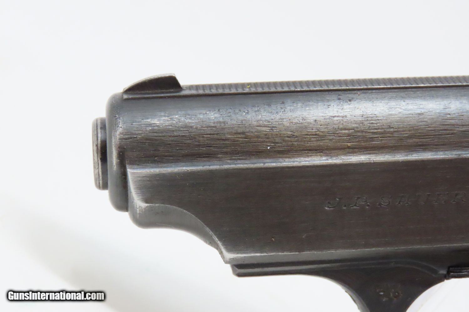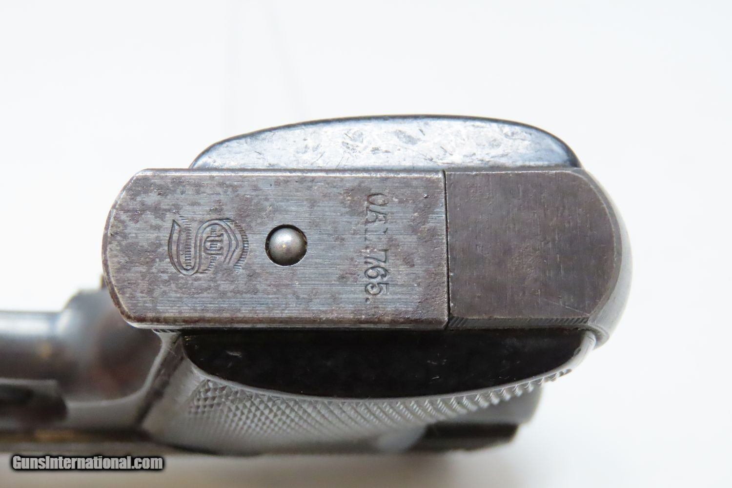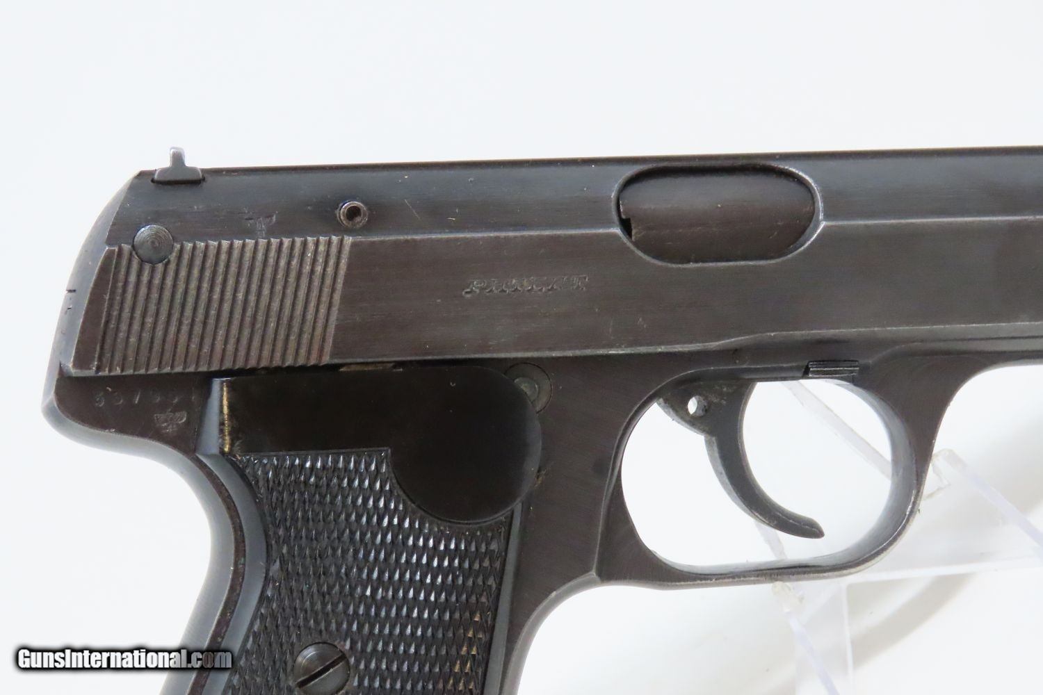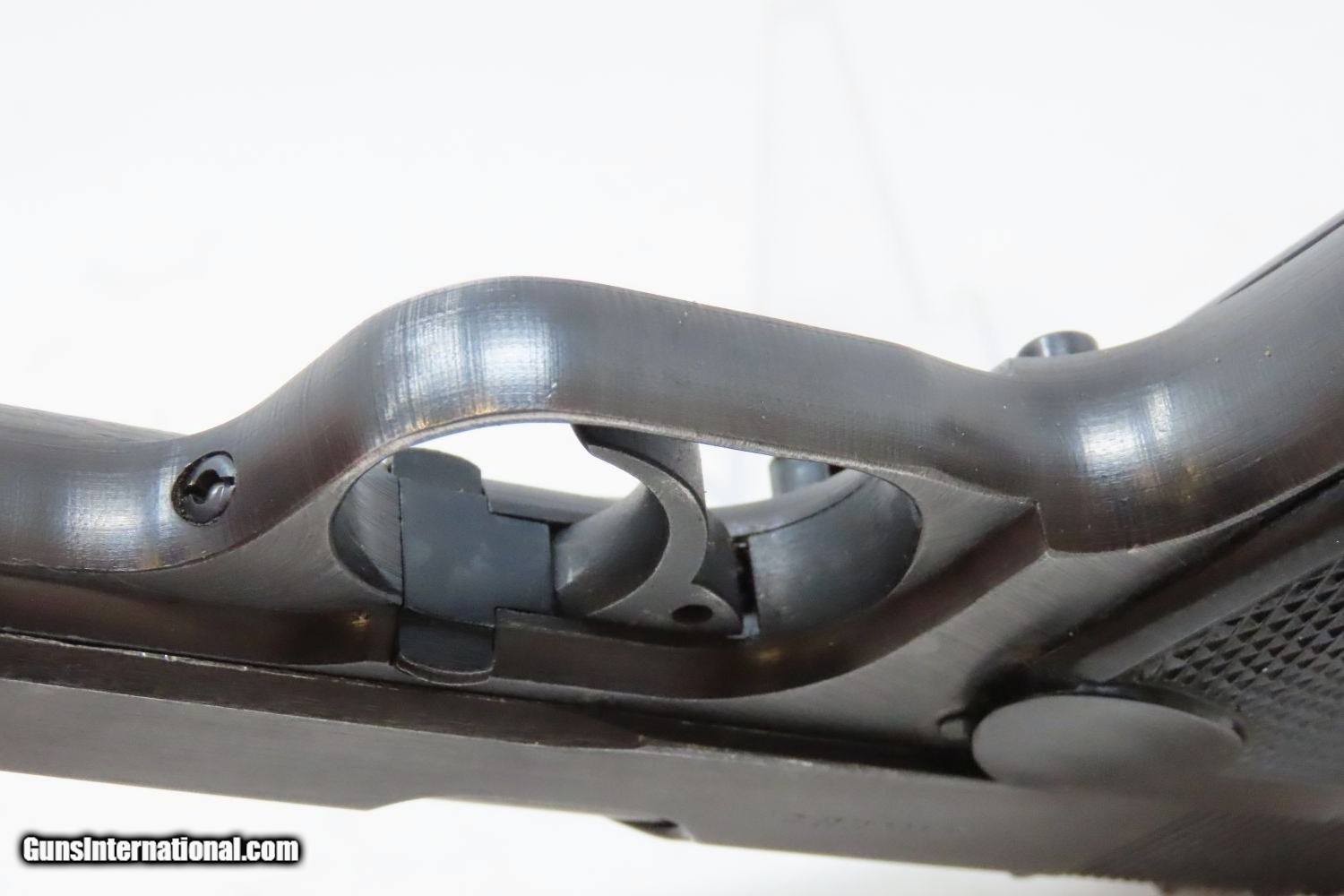 Description: “EAGLE C” Marked WORLD WAR II J.P. SAUER & SOHN Model 38H Semi-Auto PISTOL With HOLSTER Rig! Here we present a J.P. Sauer & Sohn Model 38H Semi-Automatic Pistol manufactured circa 1942 in Suhl, Germany with a production run from 1938 through the end of World War II in 1945 with approximately 200,000 examples made. The "H" in the model number indicates this pistol uses a shrouded hammer as opposed to the striker style firing of earlier Sauer models. This pistol was issued to the German Army and was a favorite of the Luftwaffe as it could be carried while parachuting behind enemy lines. The Eagle over Swastika C proof mark on the frame is a Military acceptance mark indicating that this pistol was issued to the German Army instead of the police. The Sauer 38H was produced in three basic models. The slide of the first model says "JP Sauer und Sohn" on the left along with the caliber. The second version says only "CAL 7.65", and the third version omits the safety and the cocking/decocking lever. Towards the end of the war, weapons produced were simplified for quicker, cheaper production. For the 38H, this meant simpler markings, rough finish, and the elimination of features like the slide-mounted safety. The overall condition is fine. Original blue finish. The action is excellent. The bore is fine, bright with sharp rifling. The grips are in great shape. The holster is in very good condition. This firearm is classified as a Curio & Relic. Barrel is 3-3/8 inches. Caliber: 7.65s17mmSR Browning (.32 ACP) Overall condition as seen in photos. Very Fast. Very Safe. FREE SHIPPING. Will need to be sent to your local FFL or C&R licensee. This firearm is classified as a Curio & Relic. Guaranteed AUTHENTIC & Includes CERTIFICATE OF AUTHENTICITY. ancestryguns $1600 #215531 SOLD Curio/Relic: Yes |