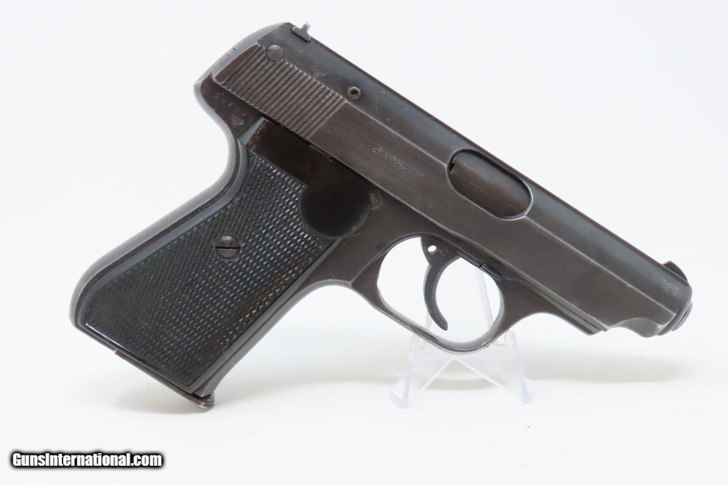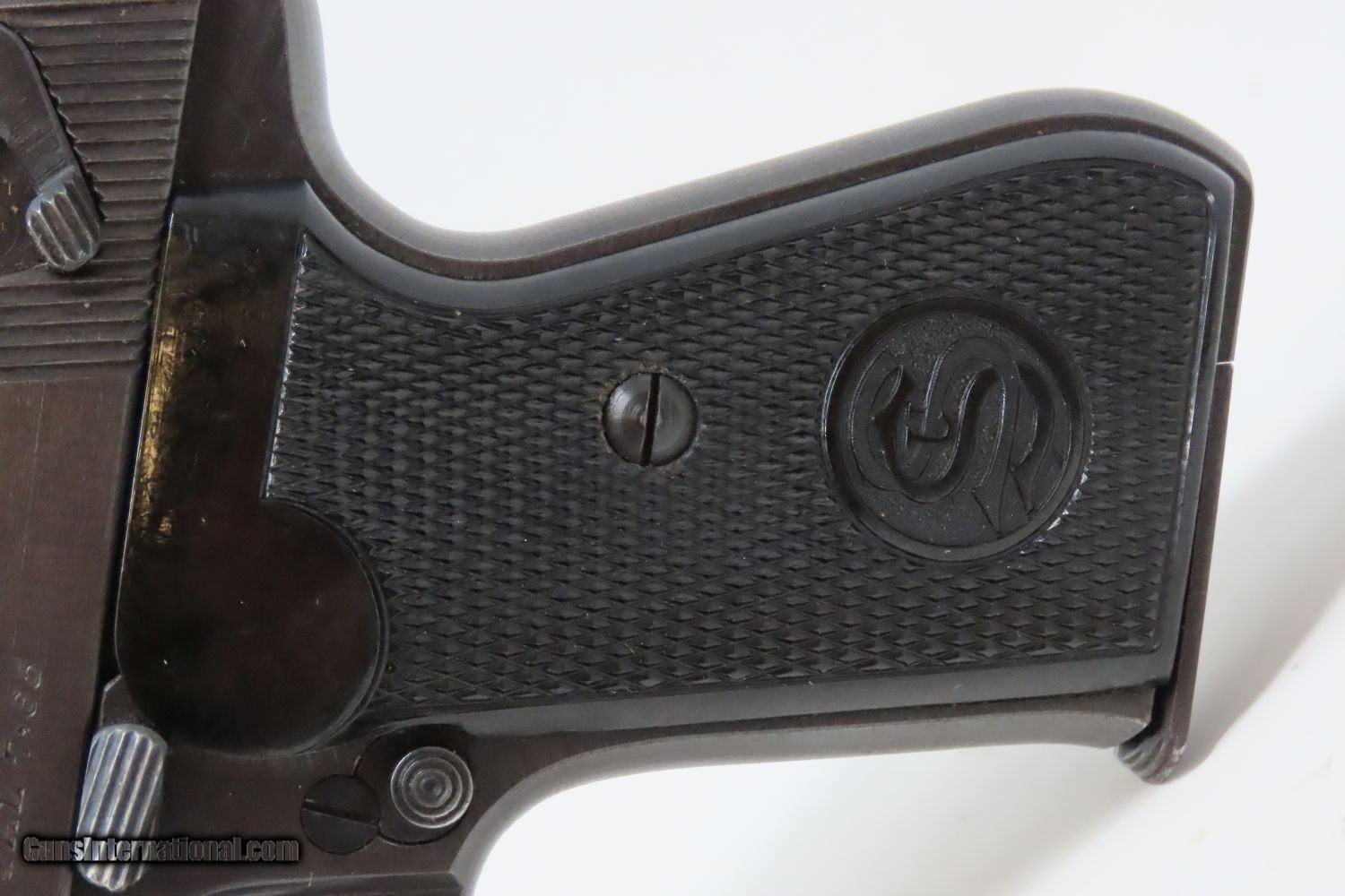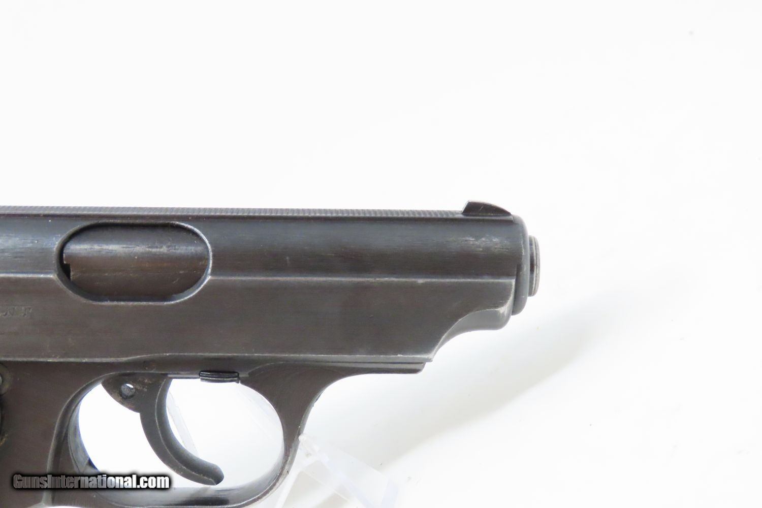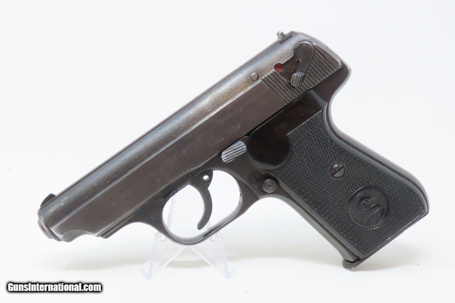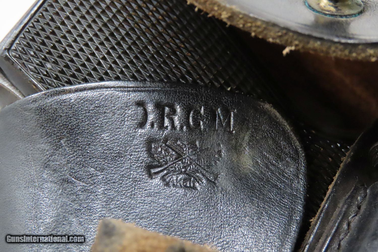 Description: “EAGLE C” Marked WORLD WAR II J.P. SAUER & SOHN Model 38H Semi-Auto PISTOL With HOLSTER Rig! Here we present a J.P. Sauer & Sohn Model 38H Semi-Automatic Pistol manufactured circa 1942 in Suhl, Germany with a production run from 1938 through the end of World War II in 1945 with approximately 200,000 examples made. The "H" in the model number indicates this pistol uses a shrouded hammer as opposed to the striker style firing of earlier Sauer models. This pistol was issued to the German Army and was a favorite of the Luftwaffe as it could be carried while parachuting behind enemy lines. The Eagle over Swastika C proof mark on the frame is a Military acceptance mark indicating that this pistol was issued to the German Army instead of the police. The Sauer 38H was produced in three basic models. The slide of the first model says "JP Sauer und Sohn" on the left along with the caliber. The second version says only "CAL 7.65", and the third version omits the safety and the cocking/decocking lever. Towards the end of the war, weapons produced were simplified for quicker, cheaper production. For the 38H, this meant simpler markings, rough finish, and the elimination of features like the slide-mounted safety. The overall condition is fine. Original blue finish. The action is excellent. The bore is fine, bright with sharp rifling. The grips are in great shape. The holster is in very good condition. This firearm is classified as a Curio & Relic. Barrel is 3-3/8 inches. Caliber: 7.65s17mmSR Browning (.32 ACP) Overall condition as seen in photos. Very Fast. Very Safe. FREE SHIPPING. Will need to be sent to your local FFL or C&R licensee. This firearm is classified as a Curio & Relic. Guaranteed AUTHENTIC & Includes CERTIFICATE OF AUTHENTICITY. ancestryguns $1600 #215531 SOLD Curio/Relic: Yes |