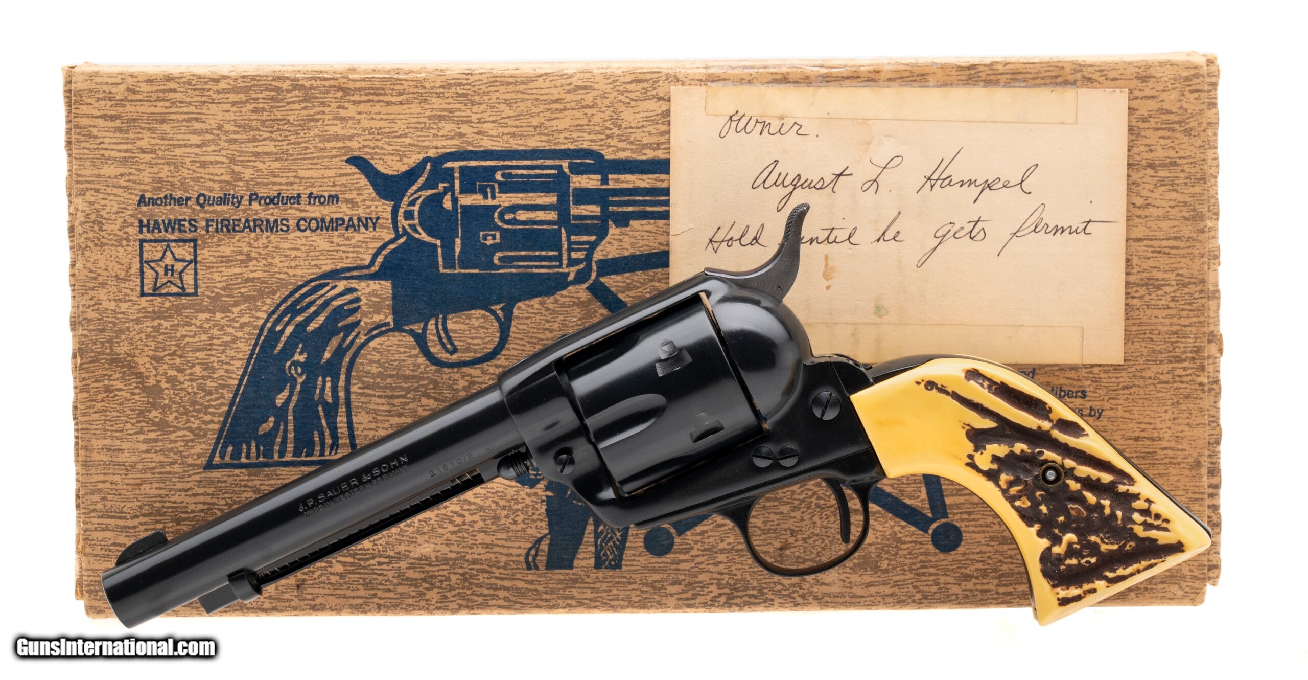 Description: "SN: 21810/2 made in Germany circa 1970’s. 22 caliber 6 shot single action revolver with a 5.5" barrel, blued finish and faux stag grips in near excellent condition for the age. Comes with original box. Dallas Location Price: $399.99 Contact Seller |