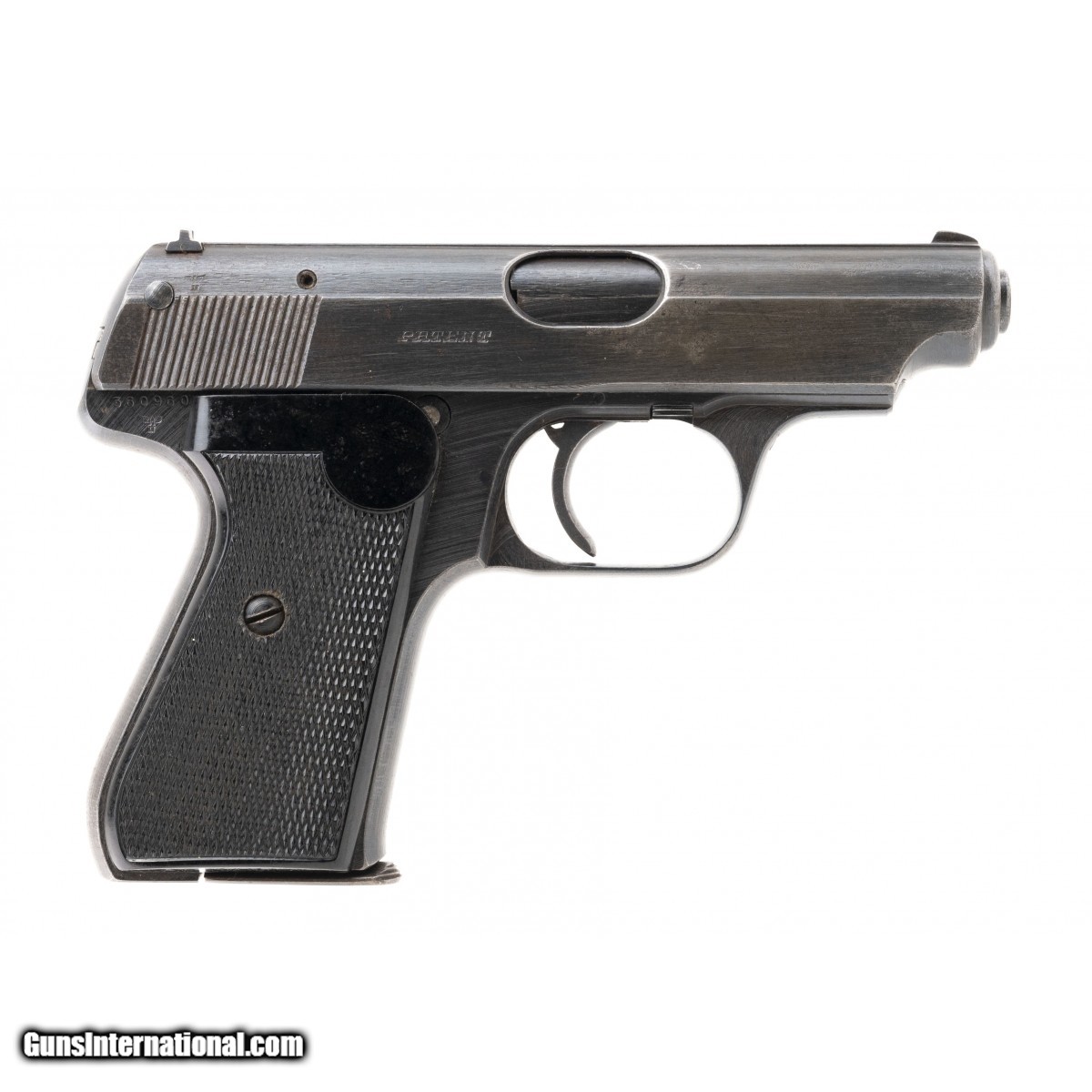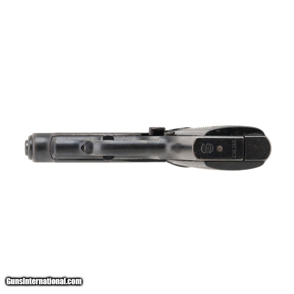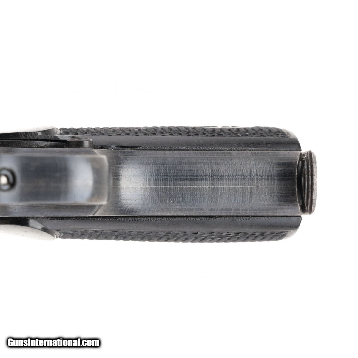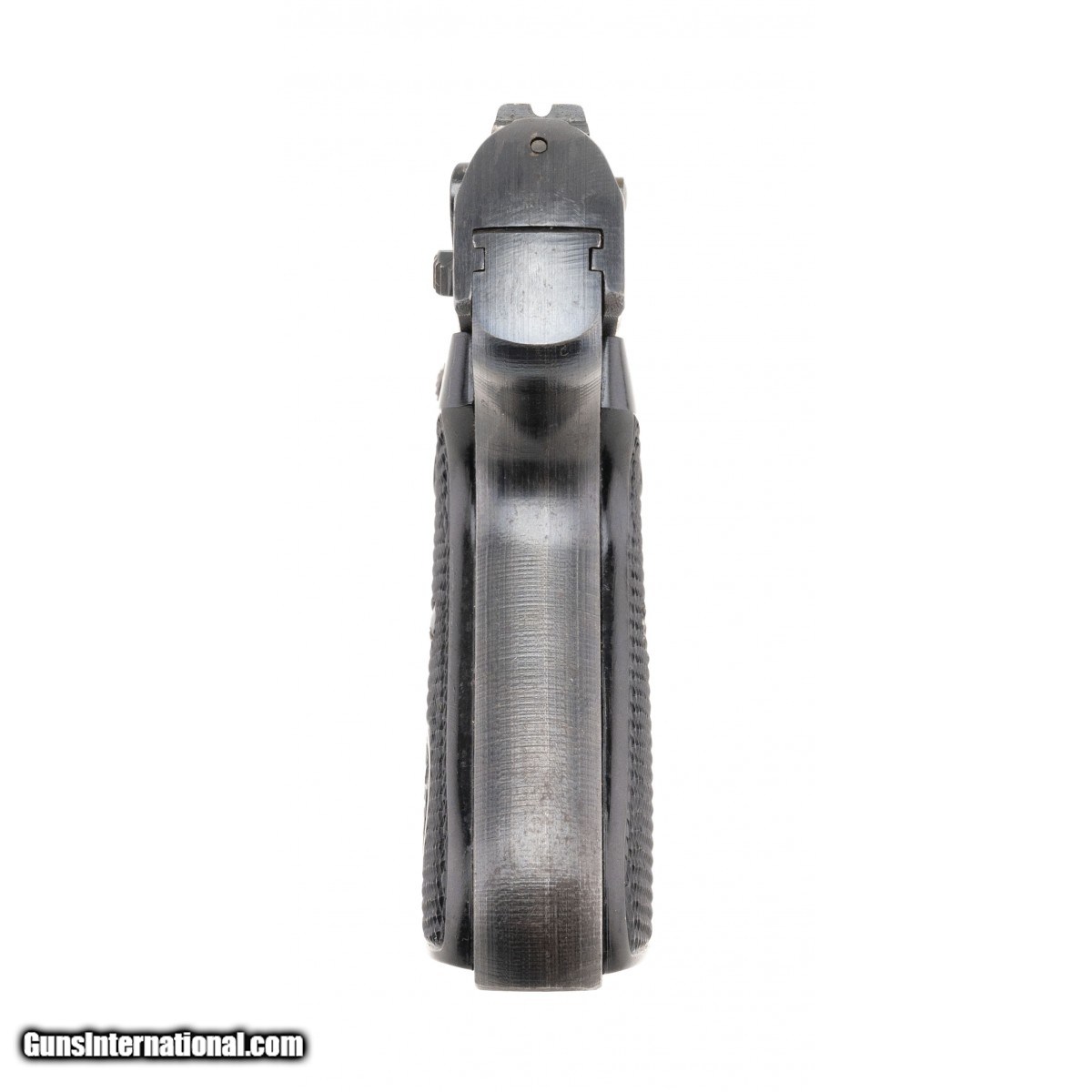 Description: " WWII German pistol with 3.5"" barrel. The slide is marked with both J.P. Sauer & Sohn and Suhl. There is and Eagle N marked on the slide and frame and are proof marked for 1939. The grips are in very good plus condition. The Magazine is marked with the Sauer logo and a caliber marking. The metal has the early WWII finish and retains approximately 98% with some wear. Overall condition is very good plus. SOLD |