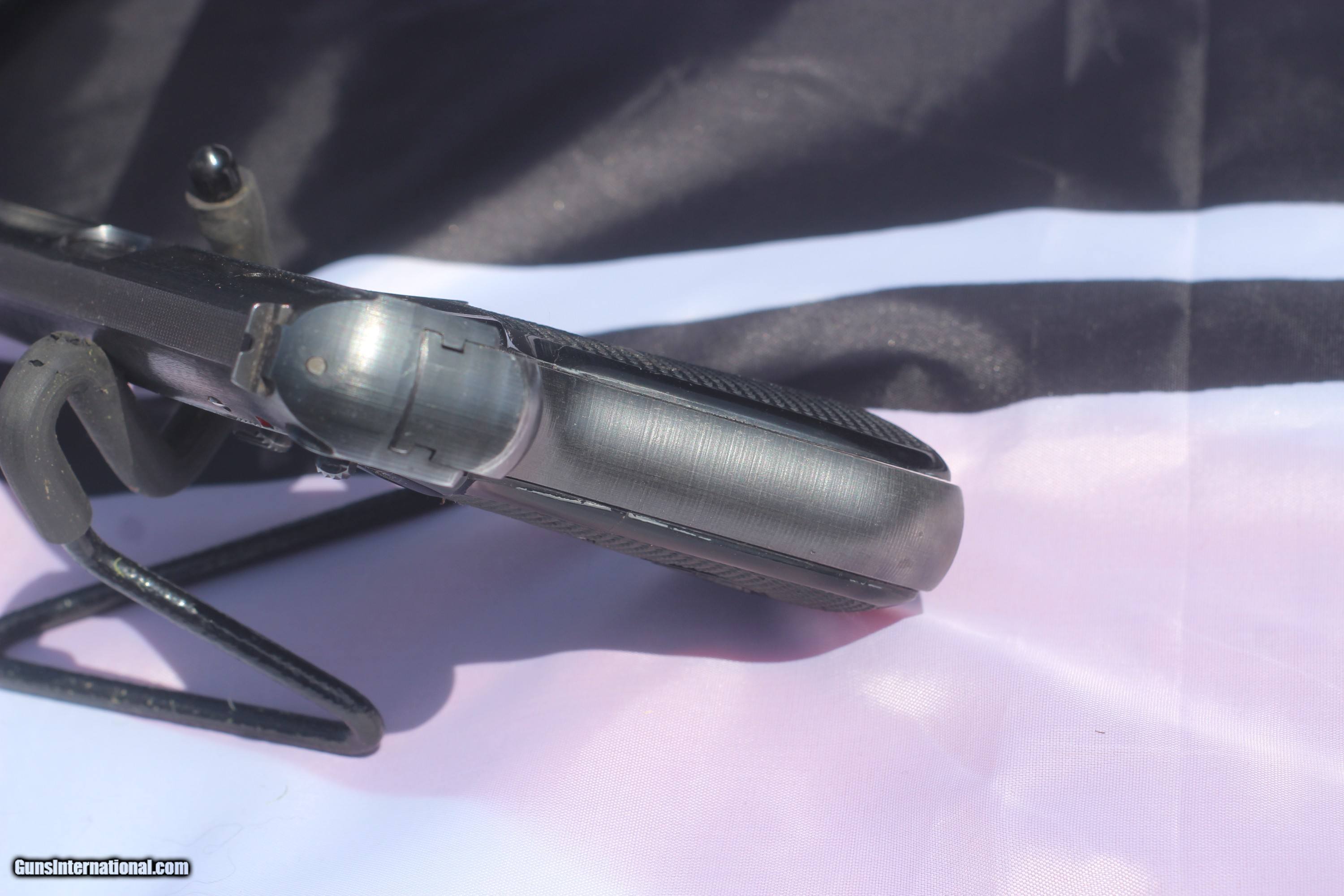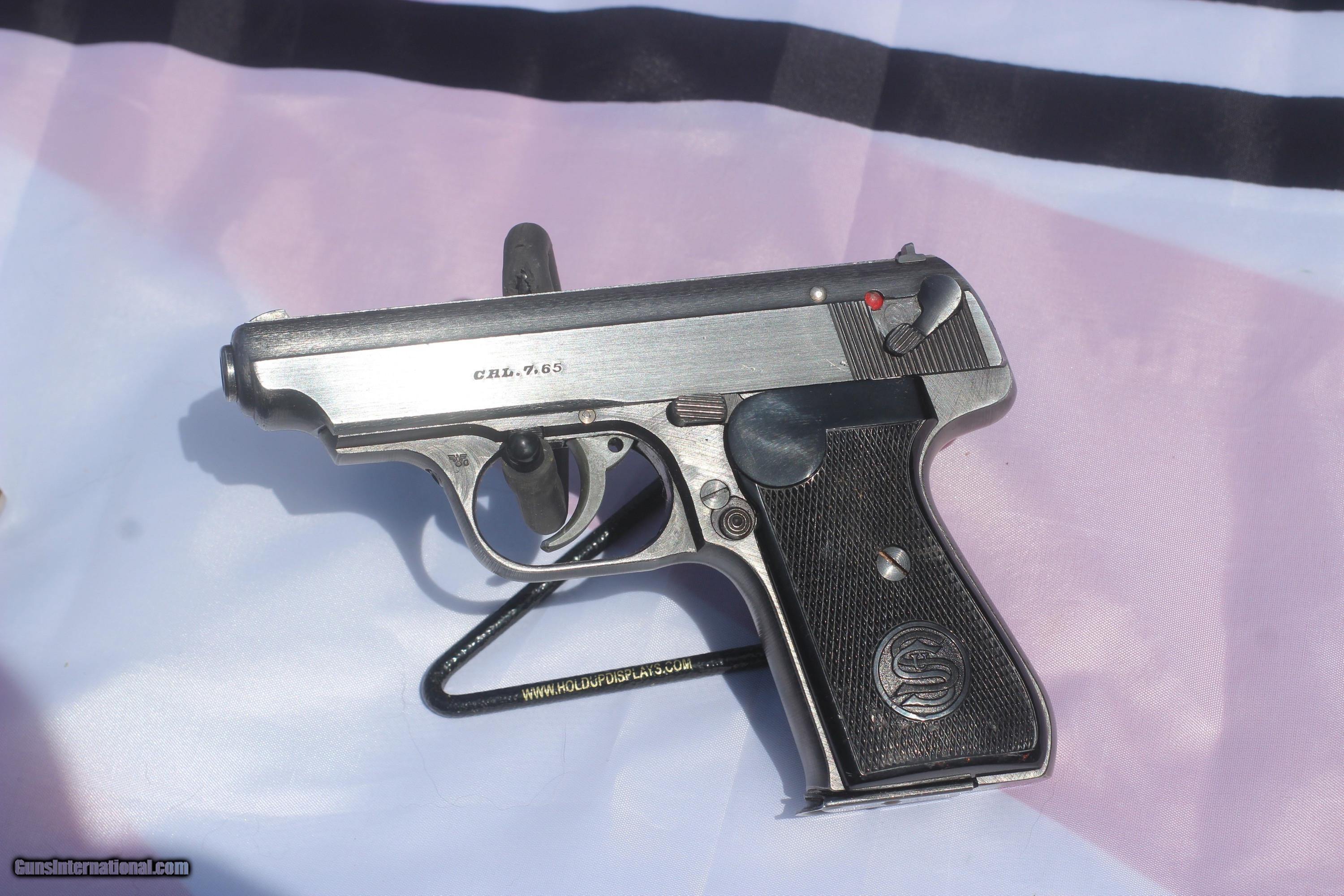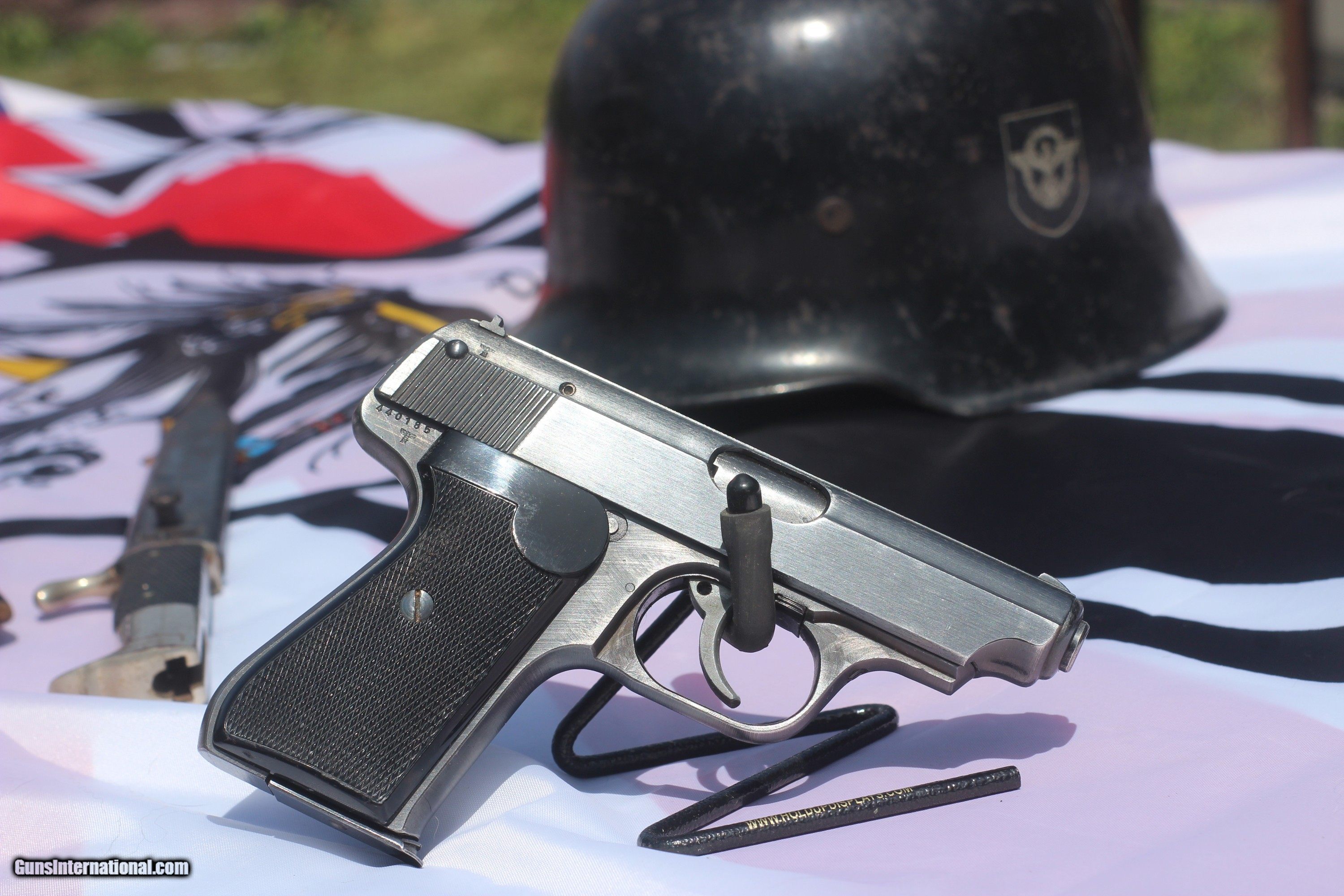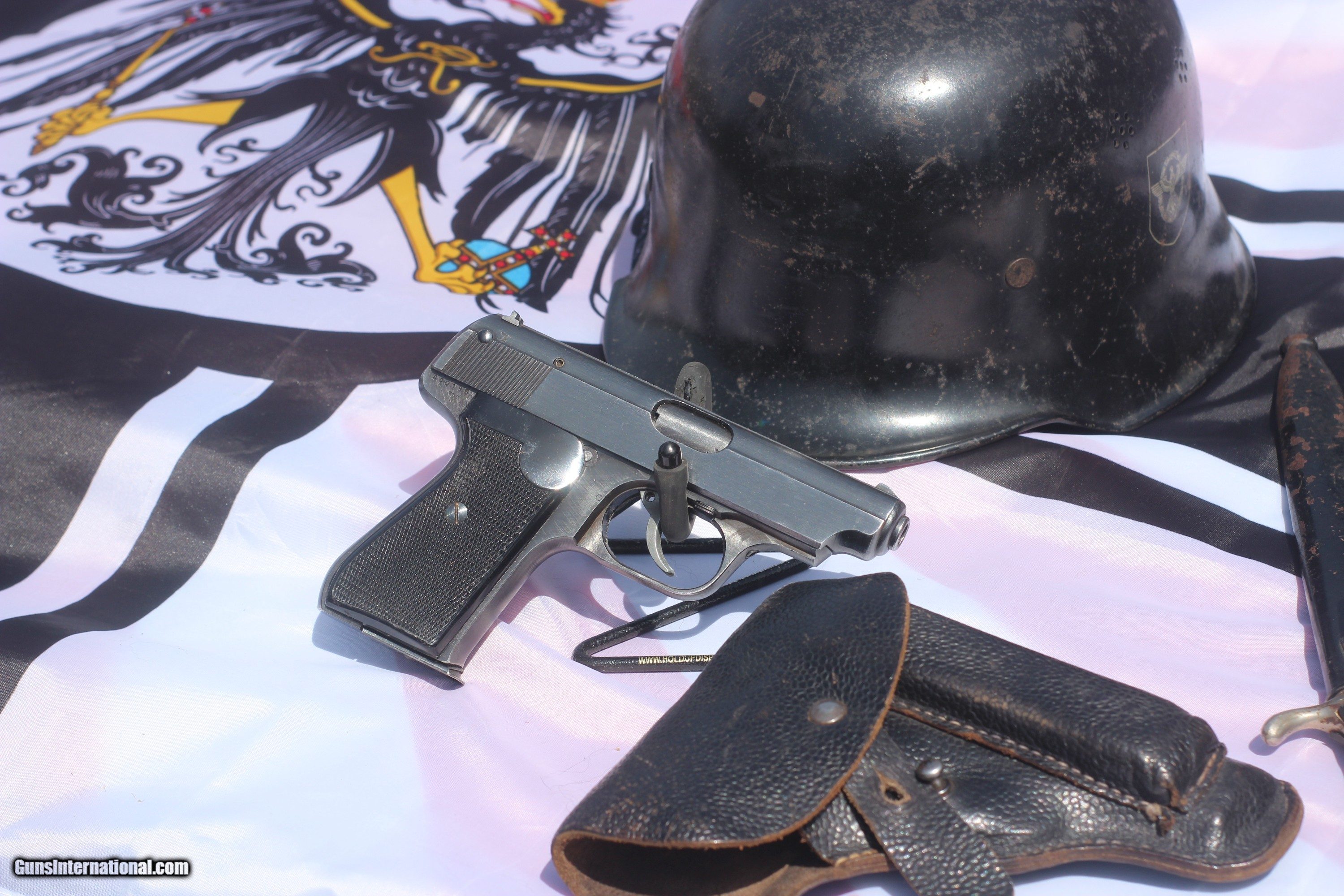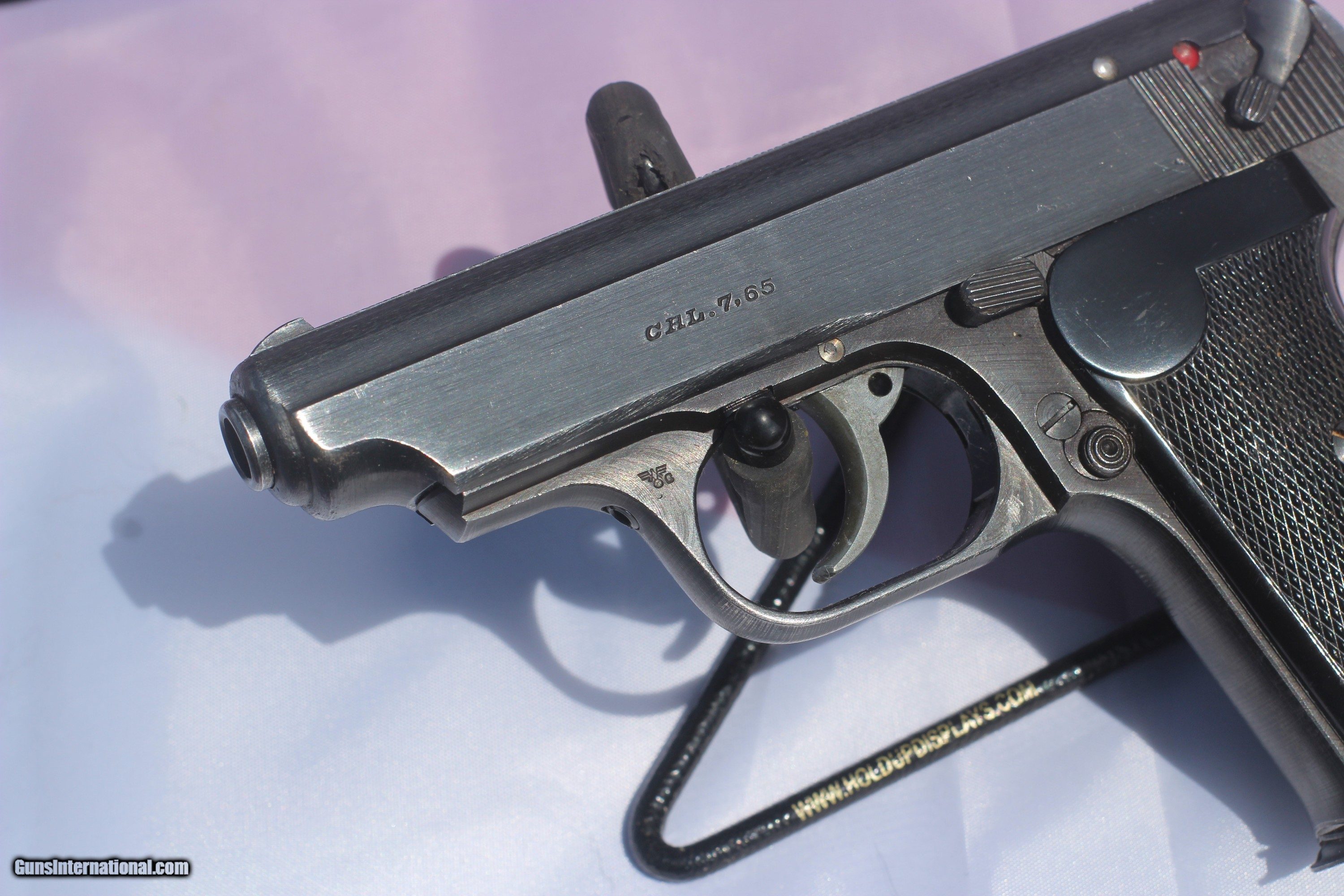 Description: WWII German maufactured 1944 German Police marked with eagle "C" Waffenamp Variation 3 with military finishand manual safety Serial # 4401xx...low production pistol Excellent bore 99% + all original bluing, with speed machine marks on contoured surfaces Comes with one original , and two extra reproduction magazines Extra set of wood grips also included Collector quality $ 2295 SOLD |
