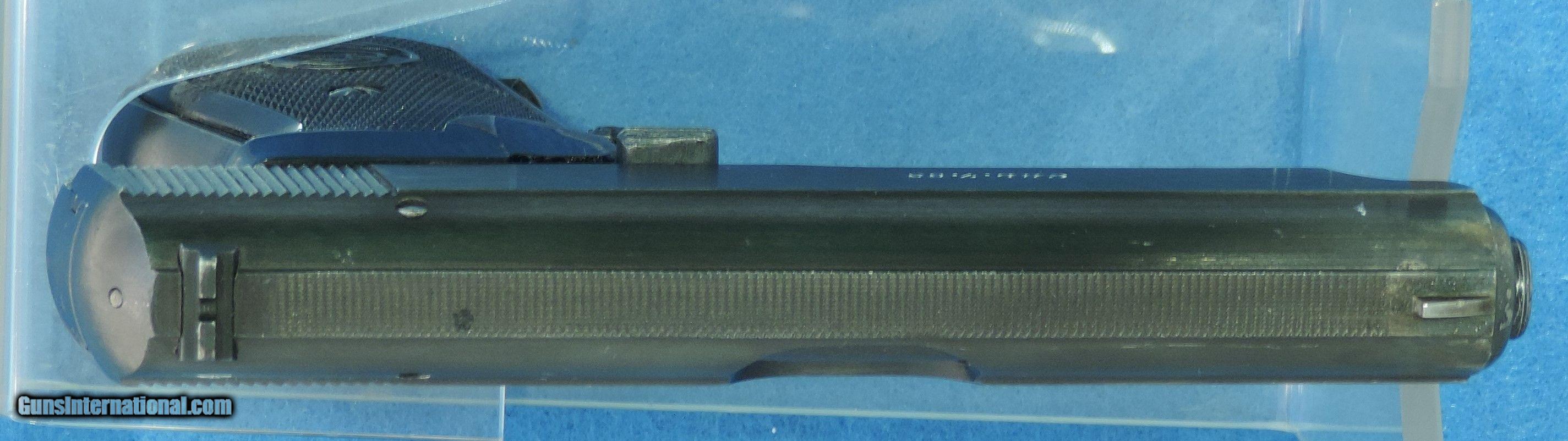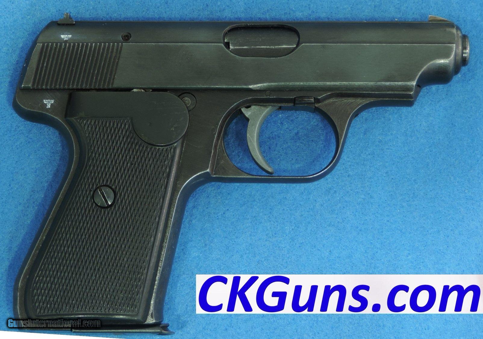 Description: Inv. 6529 J.P. Sauer Mdl. 38H (Nazi), Cal. .32acp., Ser. 4961XX. If condition is your thing, this one is has it. It is easily a 99+% factory blued gun. There is nothing more than some of the very slightest edge silvering to detract from the way it left the factory. Not a pit, rust spot, flake, rub mark or scratch anywhere. This is a very late issue gun with no manufacturers legend. It has the caliber on the slide and that's it. The left side trigger bow is stamped Eagle/37, the right rear of the slide and frame each have an Eagle/N. The grip straps show no sign of graying. The slide and the frame match. The original grips are near perfect. The left panel has a slight depression which could have left the factory that way. It certainly doesn't detract from the beautiful appearance of the gun. The slide rails, bolt face and feed ramp show no signs of any use. The bore is mirror bright with razor sharp rifling. Not a spot of frost anywhere. The gun comes with one correct Sauer magazine. You could not add a finer 38H "Cabinet Queen" to your collection.....$945. To purchase this firearm or if you want to request more information contact us at: Email ckgunsymail Phone 201-512-0002 Cell 201-575-6838 FAX 201-215-4759 We accept most major credit cards. Prices shown are Discounted 3% for Cash or Check. The buyer must be familiar with all the laws governing the purchase and the ownership of firearms in their own city and state. The Yankee Armorer, Inc is not responsible for any failure to comply with or observe these laws. The Yankee Armorer, Inc will only ship after full payment and receipt of all required documents. Shipping: Add $35.00 for handguns, $45.00 for long guns. New Jersey buyers are subject to a 7% sales tax. The Yankee Armorer, Inc offers a 3 day inspection period with full refund upon return of intact firearm and in the original condition. The Yankee Armorer, Inc offers a no interest lay away program - 25% down; 25% in 30 days; 25% in 60 days; and full payment in 90 days. Any violation of this policy is subject to restocking and forfeiture of all payments. Any variation from this policy must be agreed to in advance. Unshipped Cancelled sales are subject to a 20% restocking fee. Be advised that all firearms sold by The Yankee Armorer, Inc. or the Gun Exchange, LLC (SELLER) are sold as collector’s items. They have not been fired or tested for safety and must be examined by a license gunsmith prior to use. By purchasing any item from the (SELLER), you are agreeing to hold the (SELLER) free from any damages or lawsuits of any nature. Any item left for transfer or storage will be charged to $25.00 per month, per item from the day of its receipt. Any variation from this policy must be agreed to in advance. Store hours 10:00 am to 5:00 pm Tuesday -Saturday. It's always best to call for appointment. Store 201-512-0002, cell 201-575-6838. SOLD Curio/Relic: Yes Manufacturer: J.P. Sauer Model: 38H Serial Number: 4961XX Caliber Info: .32 acp |