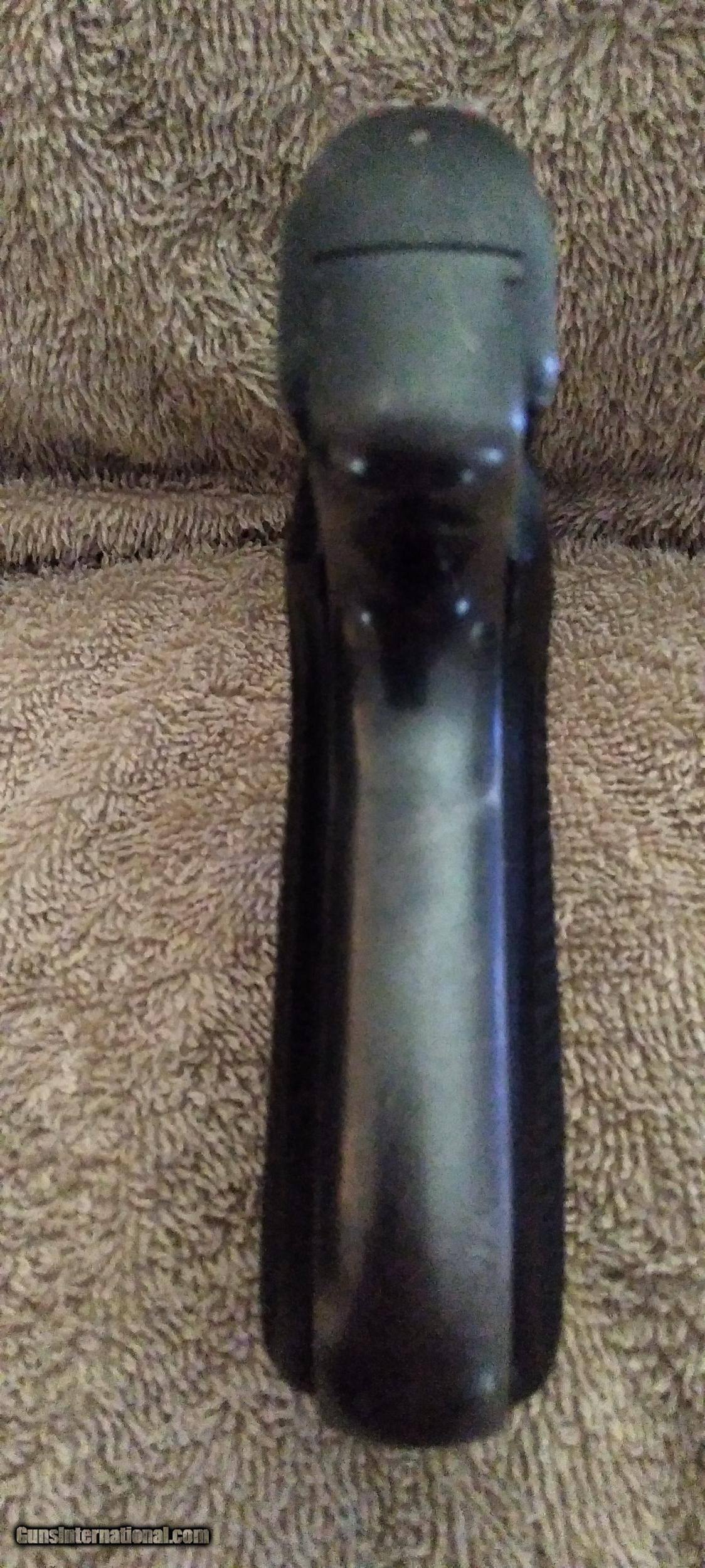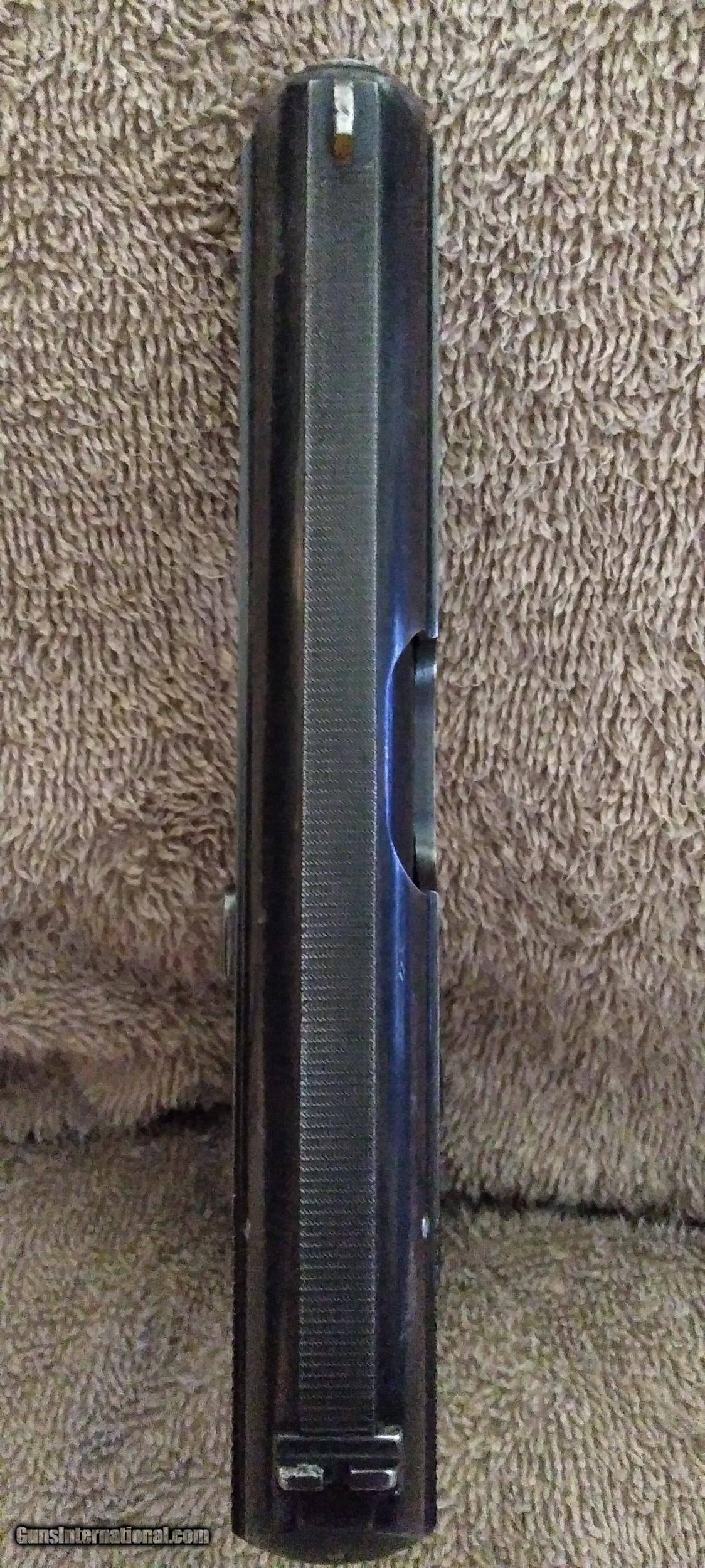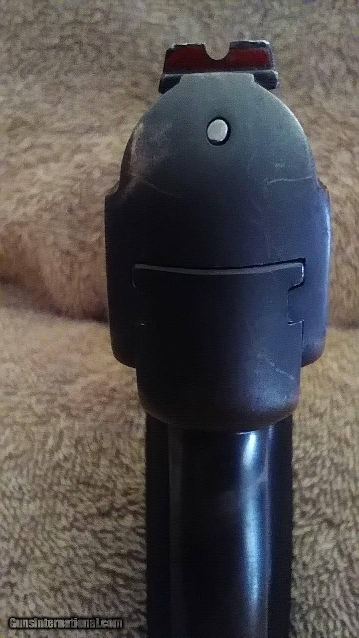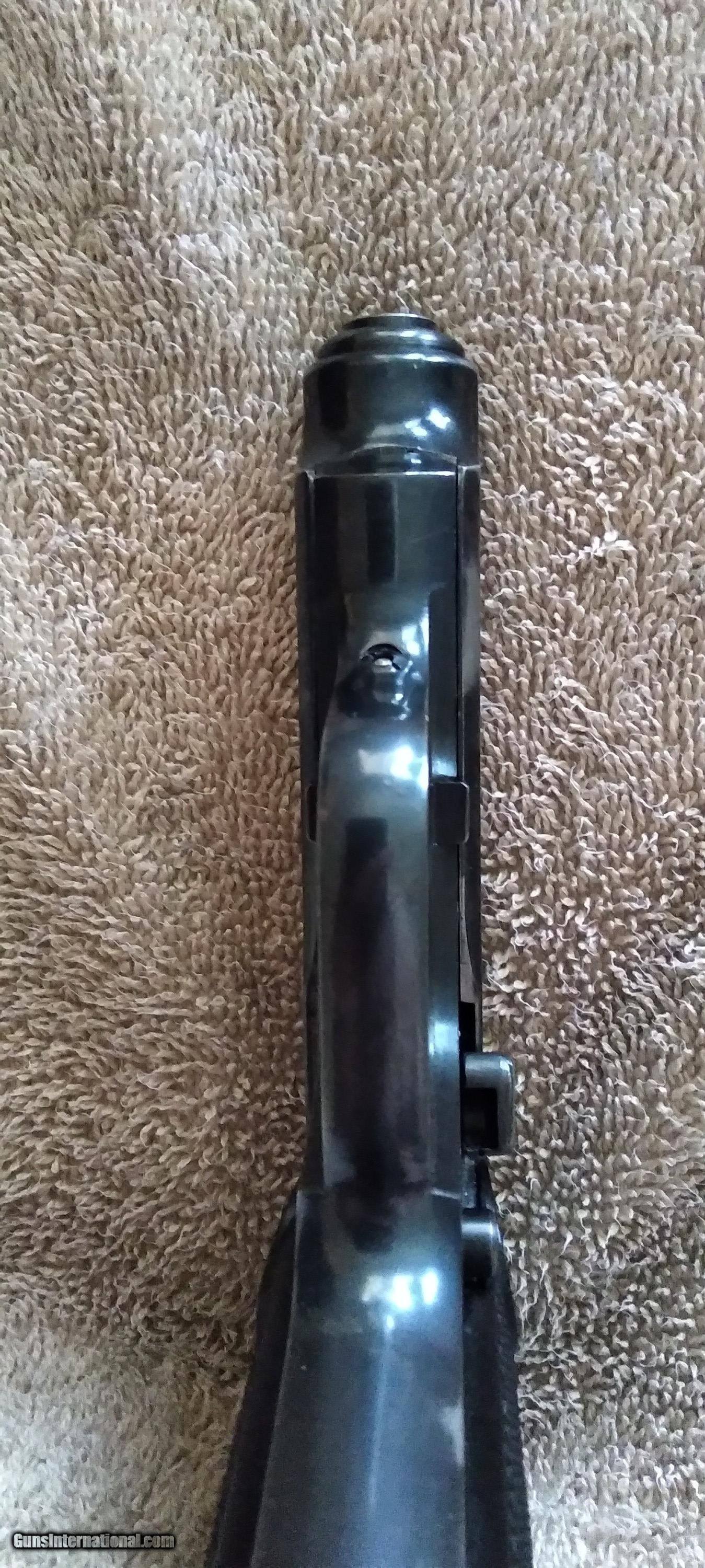 Description: SOLD SOLD SAUER 38H MANUFACTURED EARLY 1938 SOLD SOLD CALIBER 7.65 S/N 261478 ONE OF THE FIRST 1500 SAUER 38 H PRODUCED RARE WAR TIME NON-MILITARY VERY EARLY VARIATION 1 WITH THE HIGH POLISH FINISH, NO THUMB SAFETY LEVER THE ADDED SCREW TO THE MAGAZINE RELEASE AND THE CROWN OVER N PROOF MARKS THE SAUER 38H S/N STARTED AT 260000 IN 1938 THE THUMB SAFETY LEVER WAS ADDED AROUND S/N 263000 THE CROWN OVER N PROOF MARK WAS CHANGED TO THE EAGLE OVER N PROOF MARK AROUND S/N 269100 THE HIGHEST CROWN OVER N PROOF MARK KNOWN IS S/N 269257 THE LOWEST EAGLE OVER N PROOF MARK KNOWN IS S/N 269275 THE HIGH POLISH FINISH ON THE SLIDE IS GOOD WITH HIGH EDGE WEAR AND THE TYPICAL HOLSTER WEAR THE HIGH POLISH FINISH ON THE FRAME IS EXCELLENT WITH SOME THINNING AND WEAR ON FRONT AND REAR GRIP STRAPS THE BASE OF THE REAR GRIP STRAP HAS 12-14 HITS ( POSSIBLELY WAS USED AS A HAMMER? ) THE ORIGINAL GRIPS ARE EXCELLENT WITH NO CRACKS, CHIPS OR HITS THE REAR SIGHT HAS THE ORIGINAL RED PAINT THE REAR SIGHT WAS PAINTED YELLOW WHEN I PURCHASED THE SAUER ( BUBBA DID IT ) LOADED CHAMBER PIN REAR OF SLIDE EXCELLANT BORE AND RIFLING ORIGINAL MAGAZINE INCLUDED WITH ERA CORRECT HOLSTER NO IMPORT MARKS MUST SHIP TO A C&R FFL OR FFL SOLD SHIPPING $35.00 SOLD SOLD Curio/Relic: Yes Handgun Caliber: .32 ACP (7.65x17mm Browning SR) Manufacturer: J.P. SHUER & SOHN Model: 38H Serial Number: 261478 Barrel Length: 86MM ( 3.4 IN ) Bore: BRIGHT AND SHINNY Condition: Excellent Metal Condition: Excellent Bore Condition: EXCELLENT RIFLING Action: DA/SA Finish: SOME EDGE WEAR Weight: 715 G ( 1LB 9 0Z ) Sights: FIXED IRON SIGHTS Manufacture Date: 1938 |