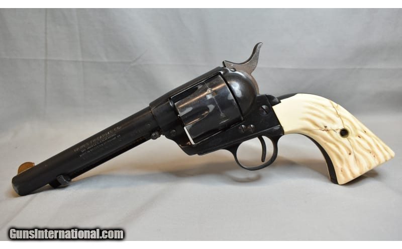Description: This JP Sauer & Sohn Western Sixshooter single action .22 LR is in very good condition. It was manufactured in West Germany and previous owner used a 1975 penny for the front sight. The barrel has three or four scratches and the left grip is cracked. All in all a very solid gun at a good price. .22 Long Rifle SOLD Chambers: .22 with six round cylinder Metal Condition: Very Good Bore Condition: Very Good Barrels: 5 1/2 Weight: 3 Sights: Fixed Item Location: Kansas City, KS |
