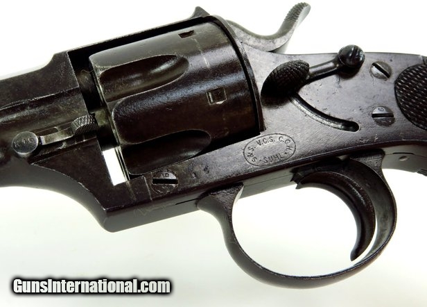 Description: Rare German Reich Revolver. Serial â„– 16. Frame is marked “S.&S. V.C.S. C.G.H. SUHL” for Sauer and Sohn, V. Charles Scailling, and Suhl. This is a scarce early commercial revolver. Grip is a different configuration and they are finely checkered. SOLD Curio/Relic: Yes |