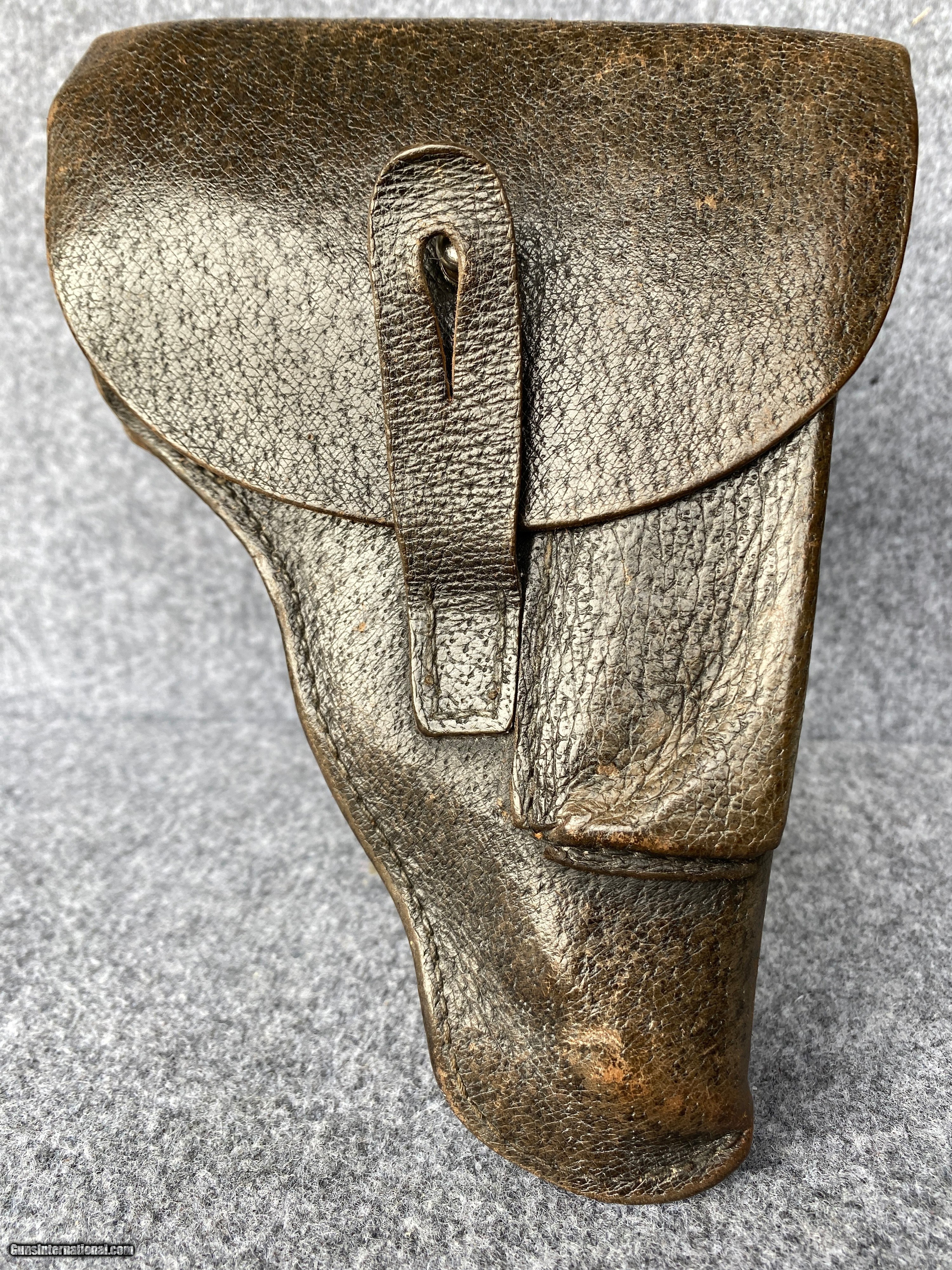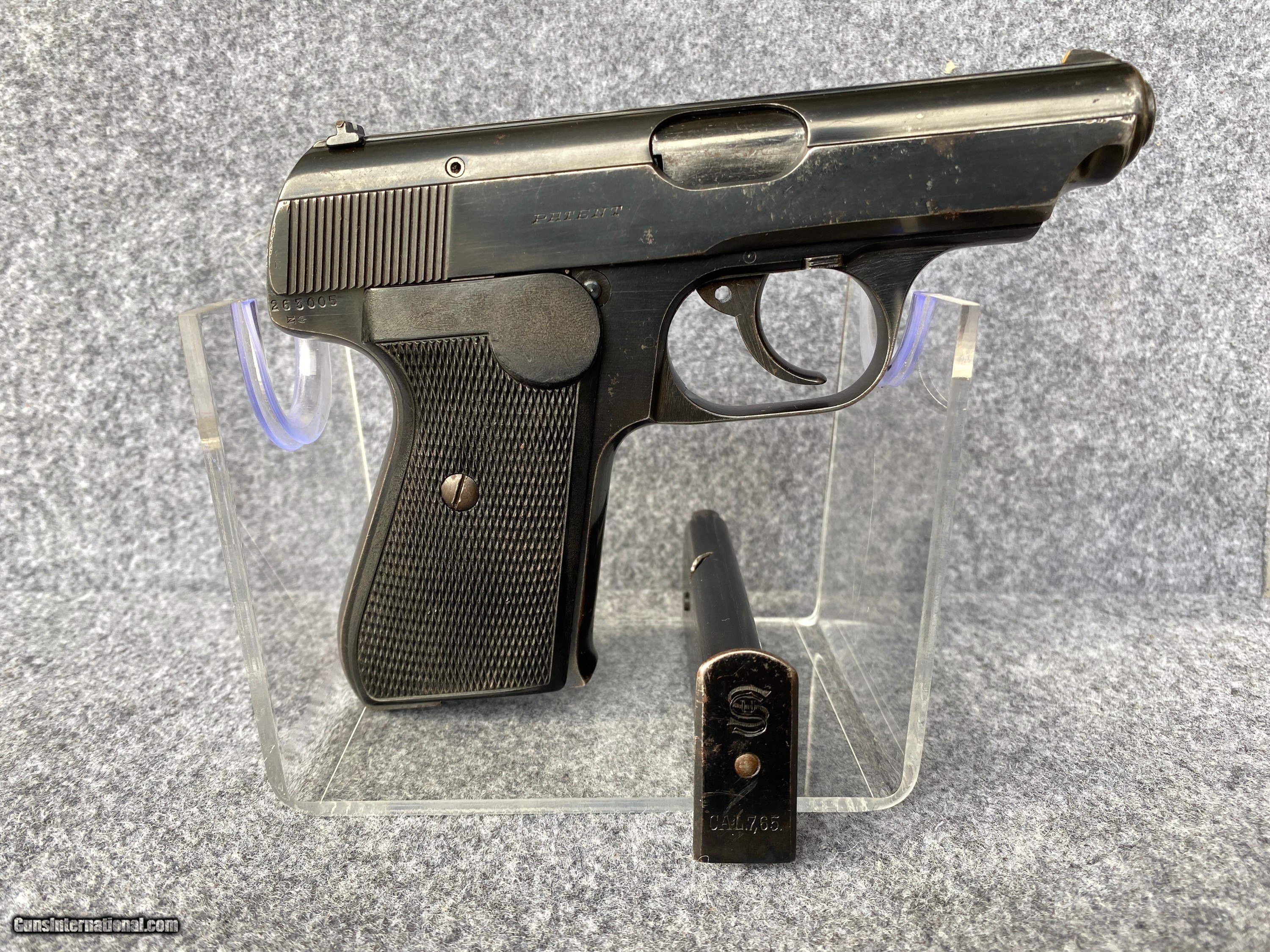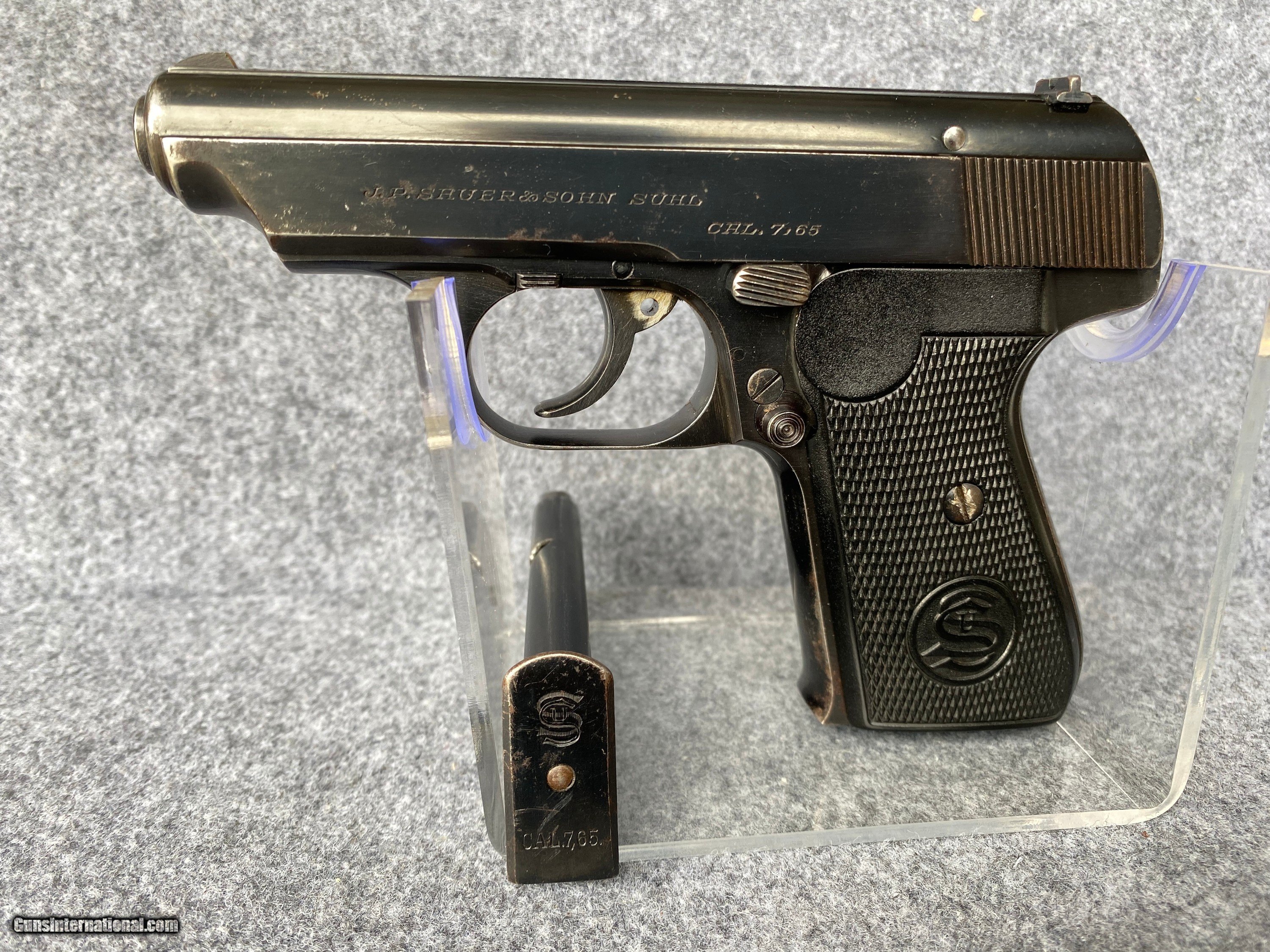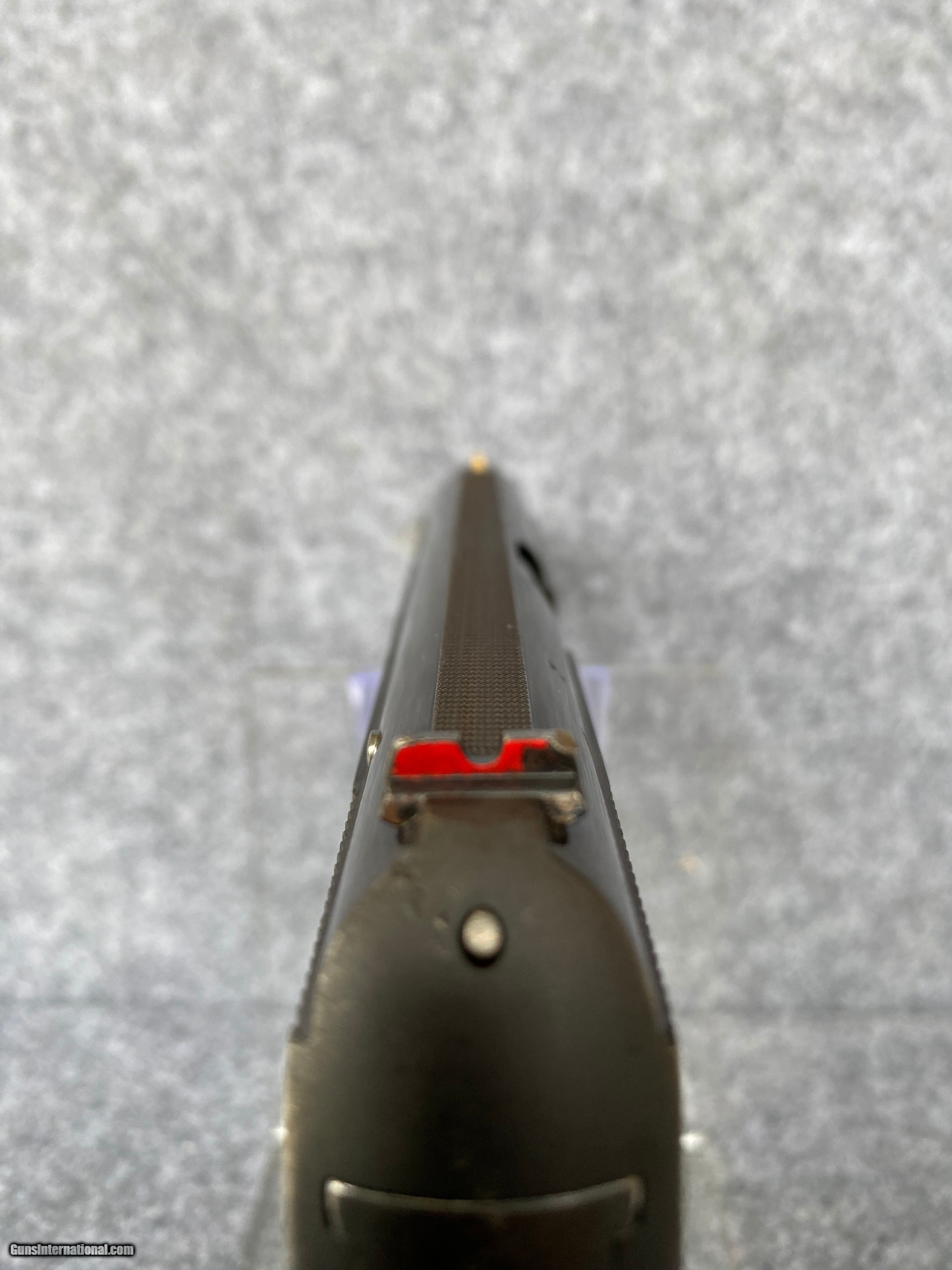 Description: Early police version of Sauer 38H serial number 263005 with an original Sauer magazine. Matching serial numbers as shown in photos. Overall very good condition with correct blue finish. Marked with a Crown N and made before April 1940. Features a decocking lever. Shiny bore, original sight paint, and good holster. $985 and free shipping. Payment by USPS MO, certified check, or Zelle. Ships to a C&R holder or FFL dealer. 3 day non-firing inspection. SOLD |