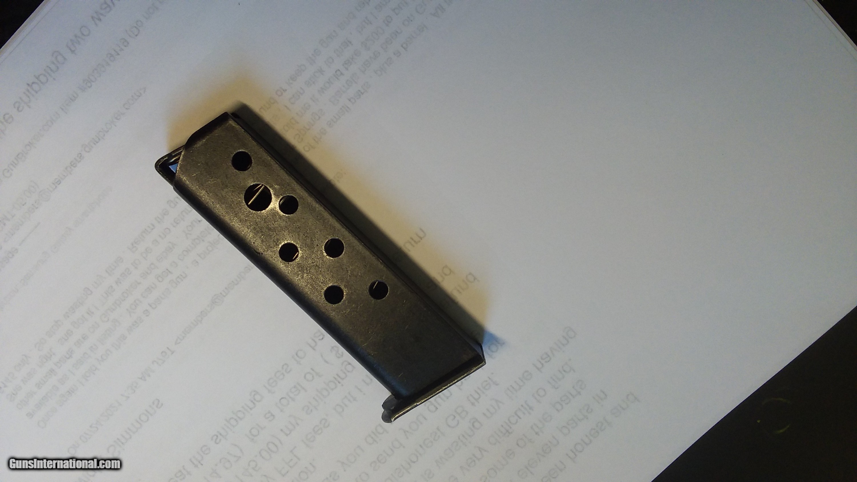 Description: German made WWII original magazine for Sauer 38H . Very good condition , fully functional . You will get magazine pictured . Getting hard to find nice ones . Add $5 for 1st class USPS postage . Only sales in USA . Check or Postal Money Order SOLD |