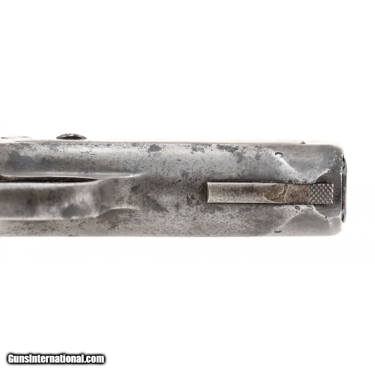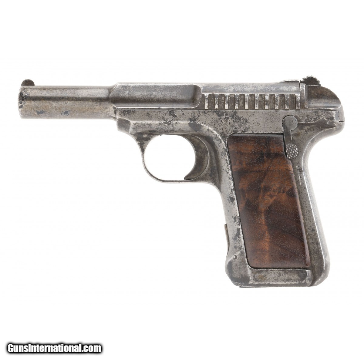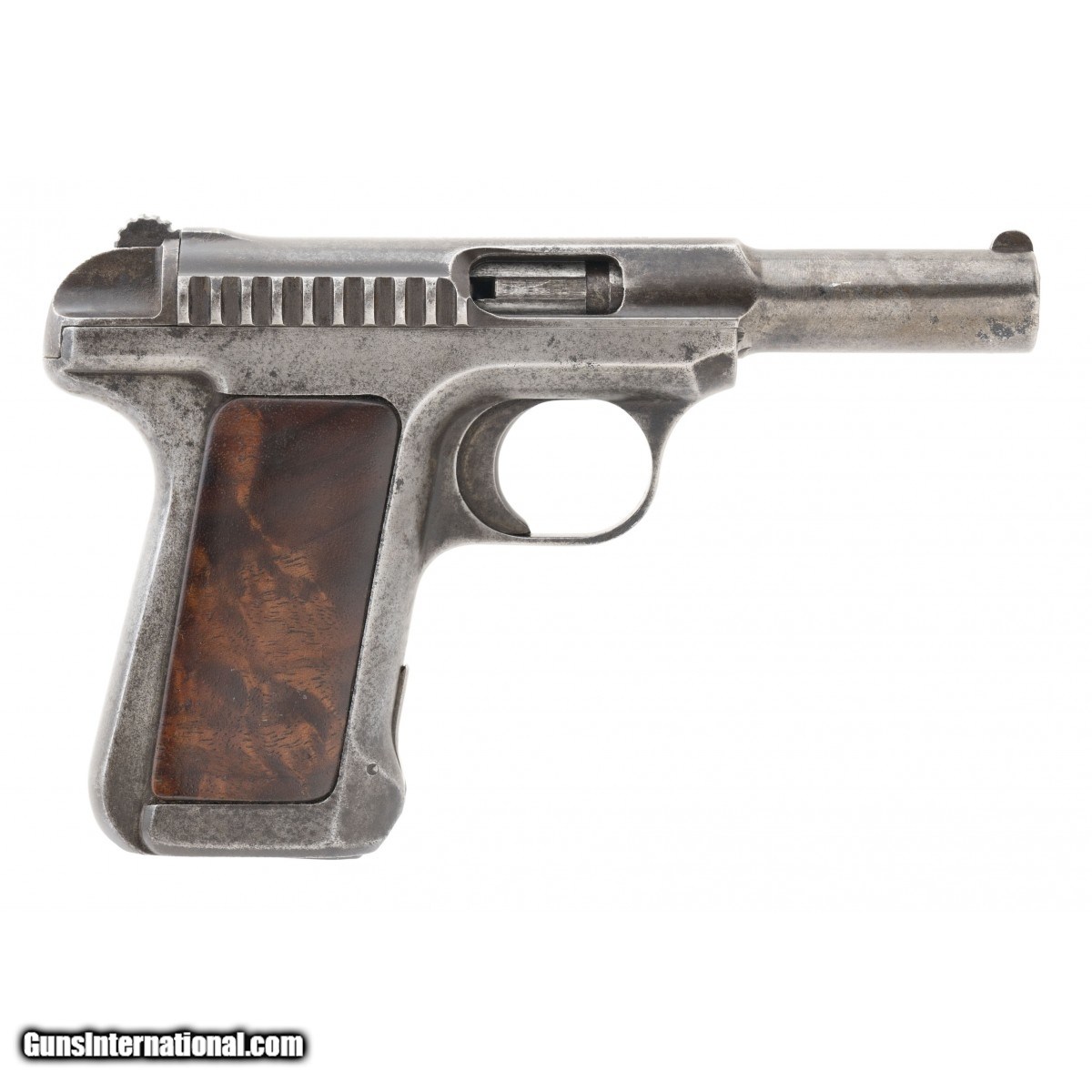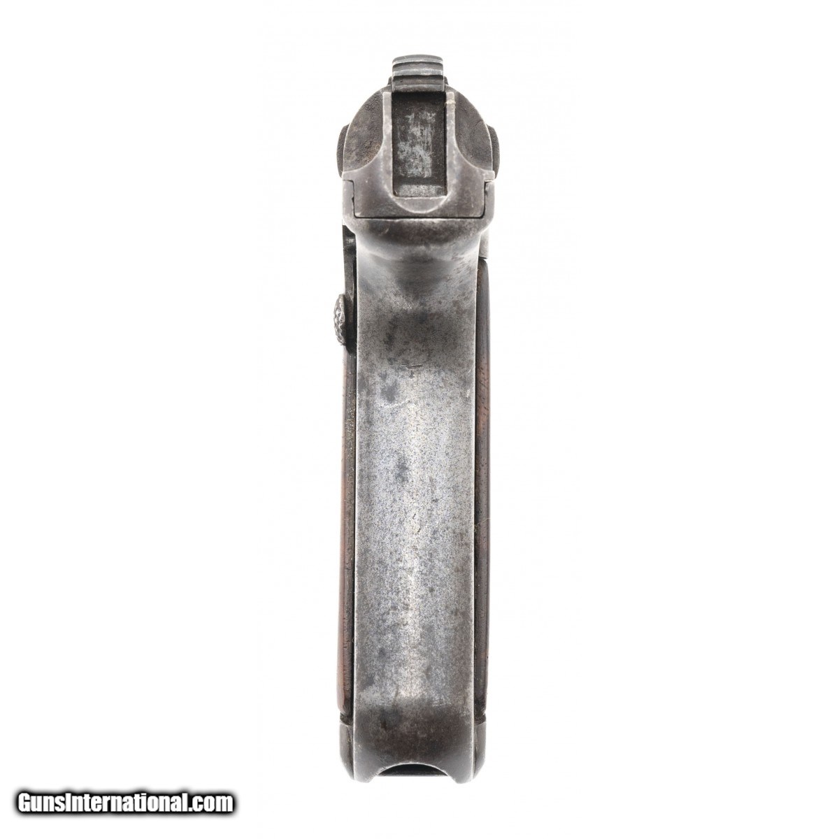 Description: " SN: 104543. Pre-war pocket auto. The bore is fair, evenly frosted with good rifling. The finish is a gray patina, the grips are custom made wood panels. SOLD Curio/Relic: Yes |