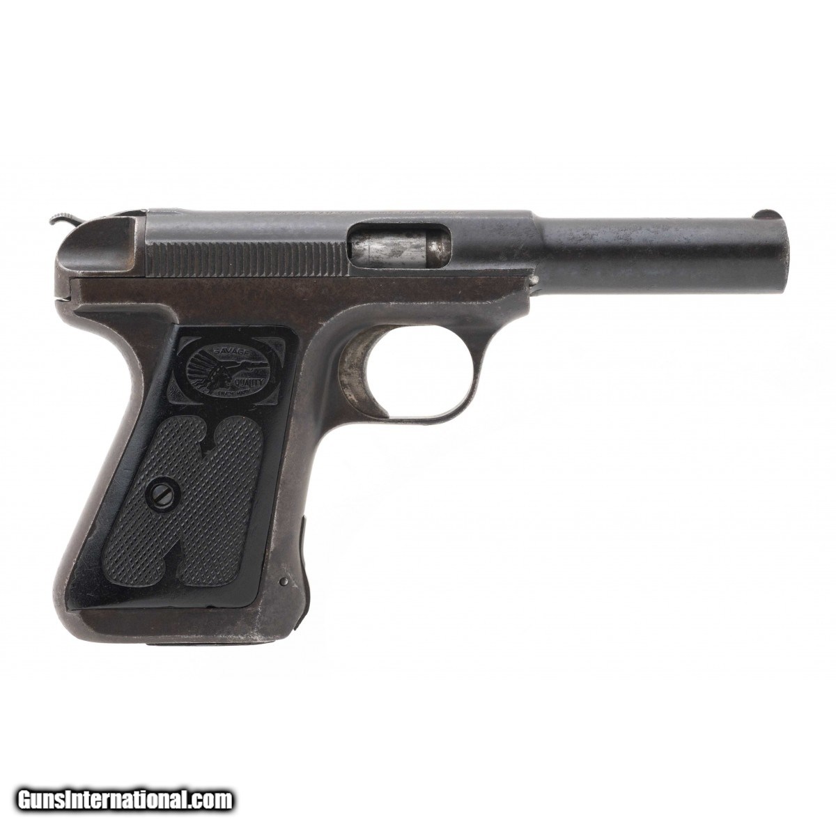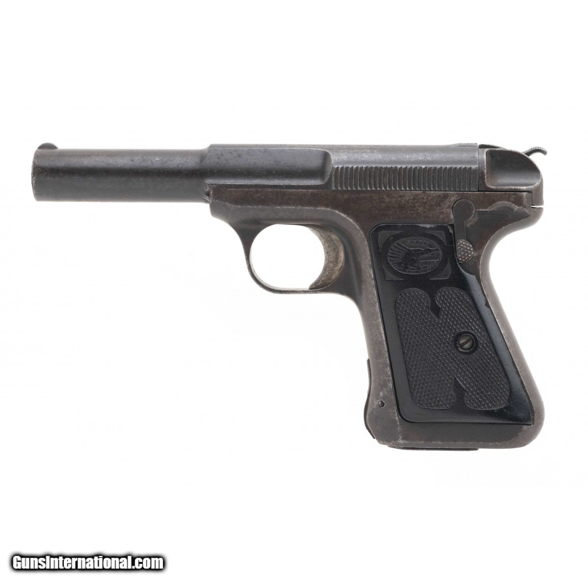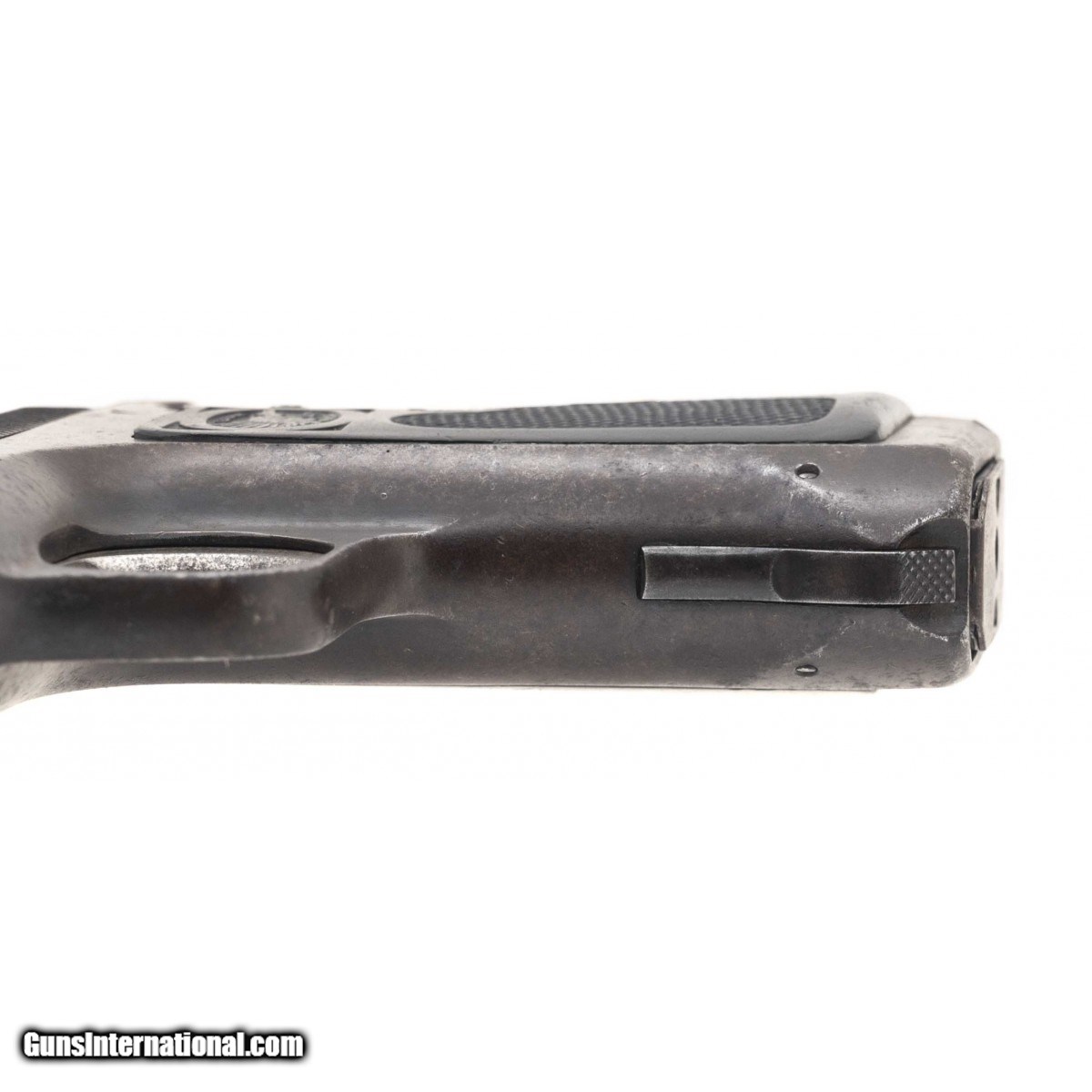 Description: " SN:15941B. Made from 1917-1920, .380 ACP (9mm Kurz), 4.1"" barrel. Bore is good + & overall condition is good with an appropriate aged patina on metal parts. Comes with original plastic grips & one factory 9-round magazine. SOLD Curio/Relic: Yes |