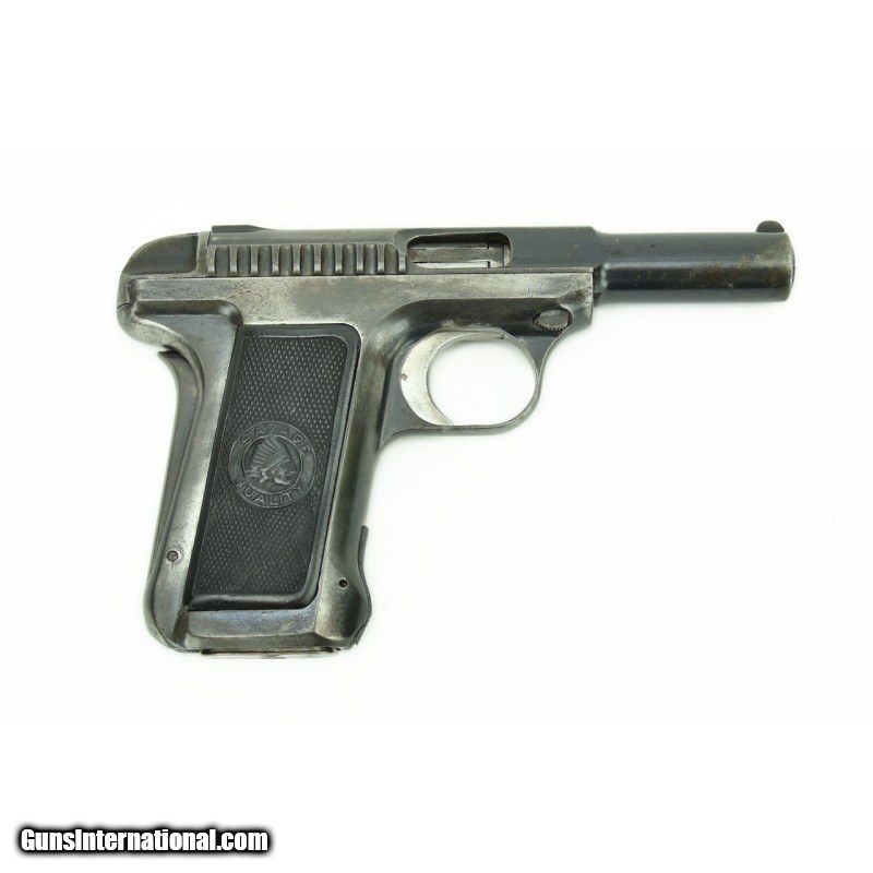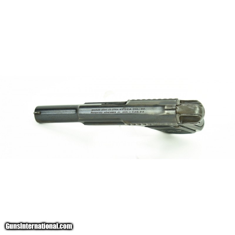 Description: "Savage Model 1915 .32 caliber pistol. Made in 1915. This gun has 25% finish. These guns are unique in that they have no screws in construction. These were very popular guns and were a competitor to the Colts. SOLD Curio/Relic: Yes |
