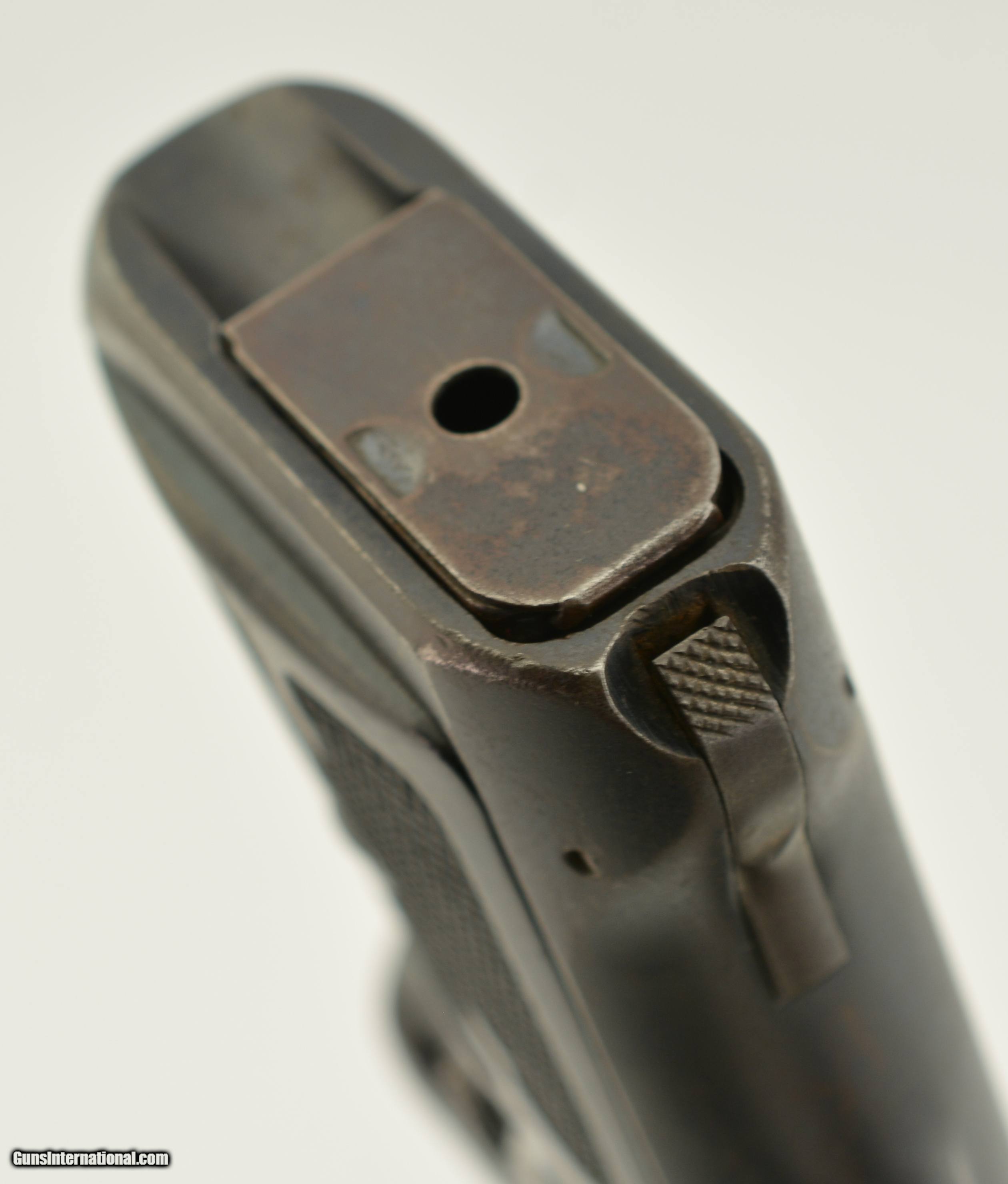 Description: Serial #239861, .32 ACP, 4 inch barrel with a fine dark bore with some roughness and good rifling. This is an early type 1917 pistol manufactured between 1920-21 and lacks the “Savage 1917 Model" writing on the frame of the later versions. The semi-automatic pistol is in very good condition showing about 75% of the matte black finish that has thinned on the high edges and shows an overall freckled surface. The trigger shows very muted traces of the original case color now a smoky grey. The hard rubber “SAVAGE QUALITY" grips are in very good condition with small chips to the left grip edge and moderate wear overall. It comes with one original 10 round magazine. Mechanically the gun functions properly with tight springs and a crisp trigger pull. FFL or C&R SOLD Manufacturer: Savage Serial Number: 239861 Caliber Info: 1917 Gauge Info: 1917 |