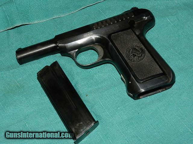 Description: This .32 ACP pistol has a 3 3/4" barrel with an about good bore, with some surface freckles, but not pitted .Medal surfaces are clean with about 92%soft blue and I suspect that this may have had a an early re-blue with all the markings readable!. This model has the exposed cocking hammer, and multiple spaced cocking grooves. The hard rubber Indian Head grips are in excellent shape. And comes with one blued double stack 10round mag!This is a good little Savage overall.SN. 1143XX .Buffalo Bill had one and he endorsed this early model! We don’t have asite .I prefer money orders or a check. Item ships when funds come in. If you can only pay with a card let me know. I hope you like my wide selection of unusual guns, knives and gun parts. Shipping price determined by zip code. I try to keep the prices affordable, which means I make less money than most dealers. You won’t get altitude sickness with my prices! I consistently have the best selection of older guns If you BUY IT NOW you must still contact us for details buy it now doesn't end the sale, it just sends an email telling us you want to buy this gun. A phone call won’t secure a sale! Not home many times, the first buyer by email buys the gun !Thissite doesnot close down a sale when you do a BUY IT NOW like Ebay!I can get six buy it nows in an hour, first buyer to email gets the guns, others are in second place! Best to send another email . Sometimes not home to get calls. Some guns are required shipment to a gun dealer near you for a transfer to you when it arrives. With the widest selection of older guns at great prices, We don’t have a store, and sell on the internet only. SOLD Curio/Relic: Yes |