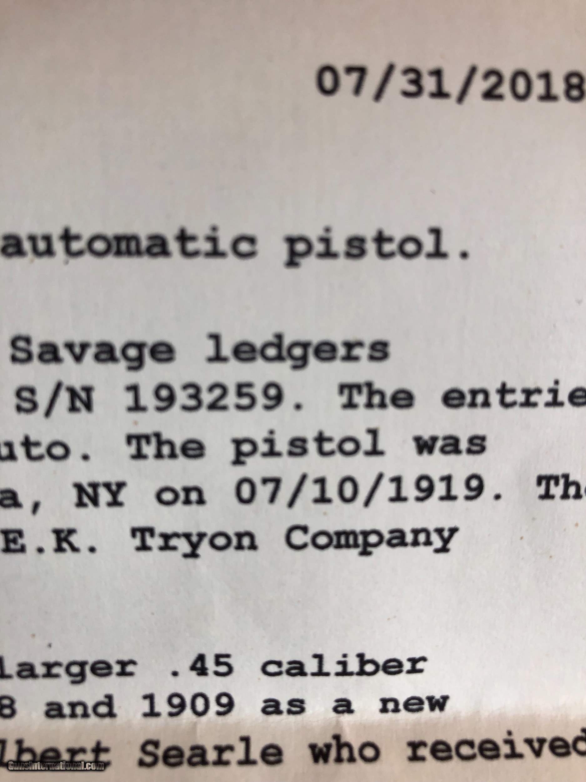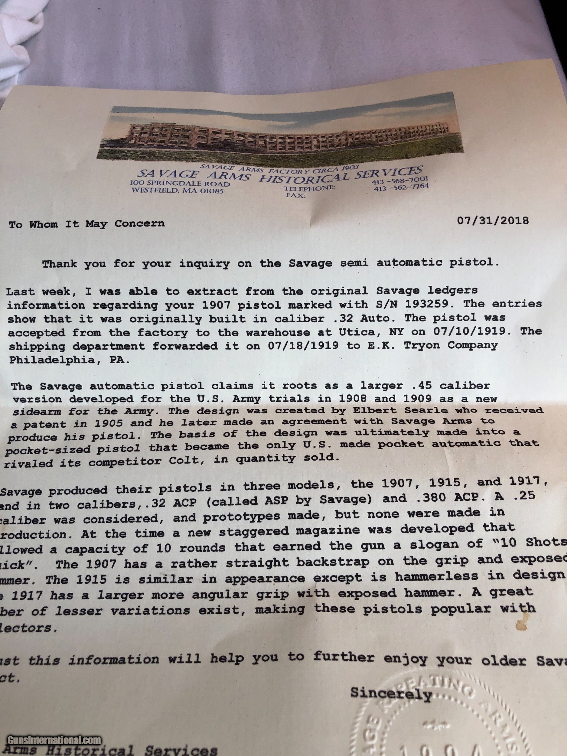 Savage 1907 32 cal auto/w letter