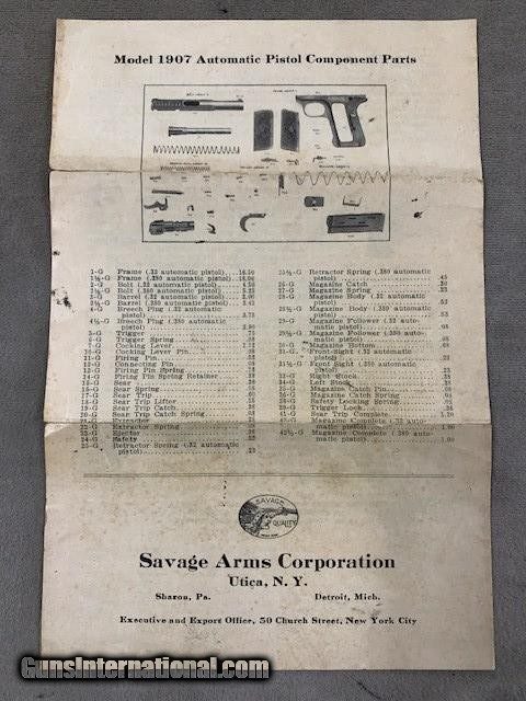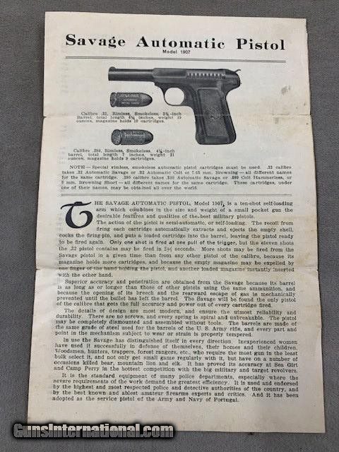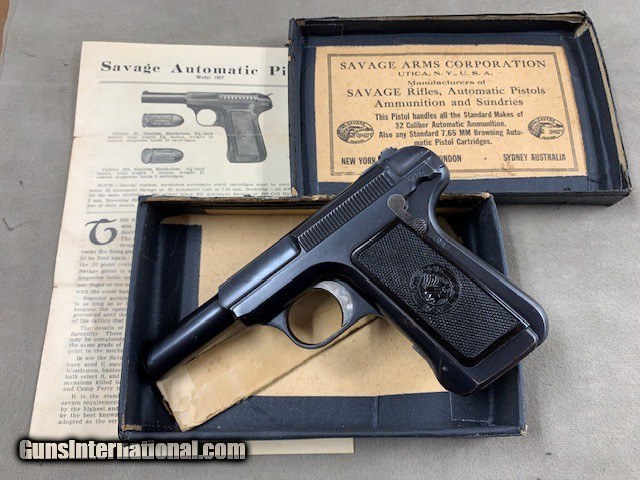 Description: An excellent original Savage Model 1907 in .32 acp with original box, papers, as shown. Would be difficult to improve upon. You will receive all that you see in the photos. SOLD Curio/Relic: Yes Handgun Caliber: .32 ACP (7.65x17mm Browning SR) |