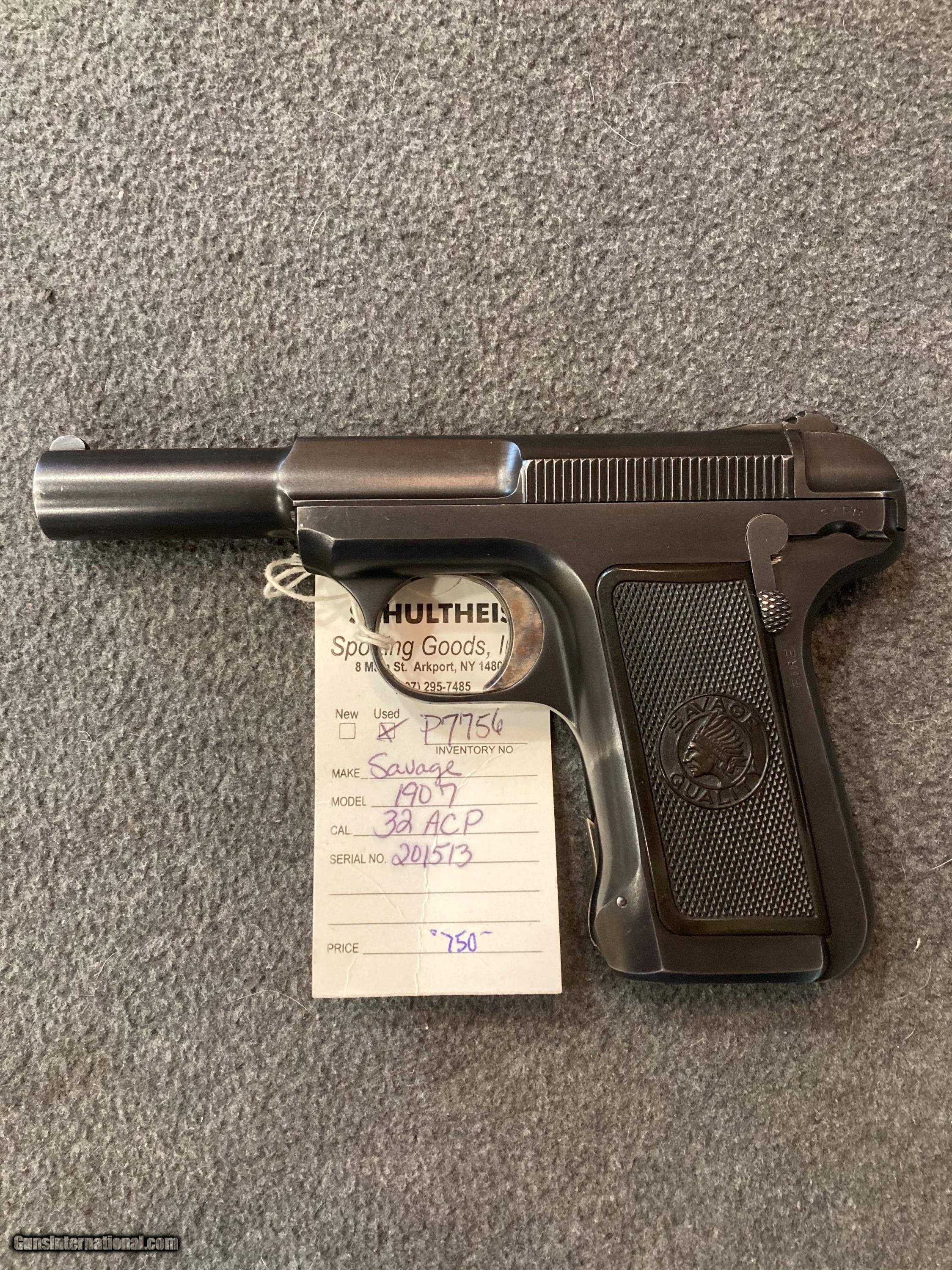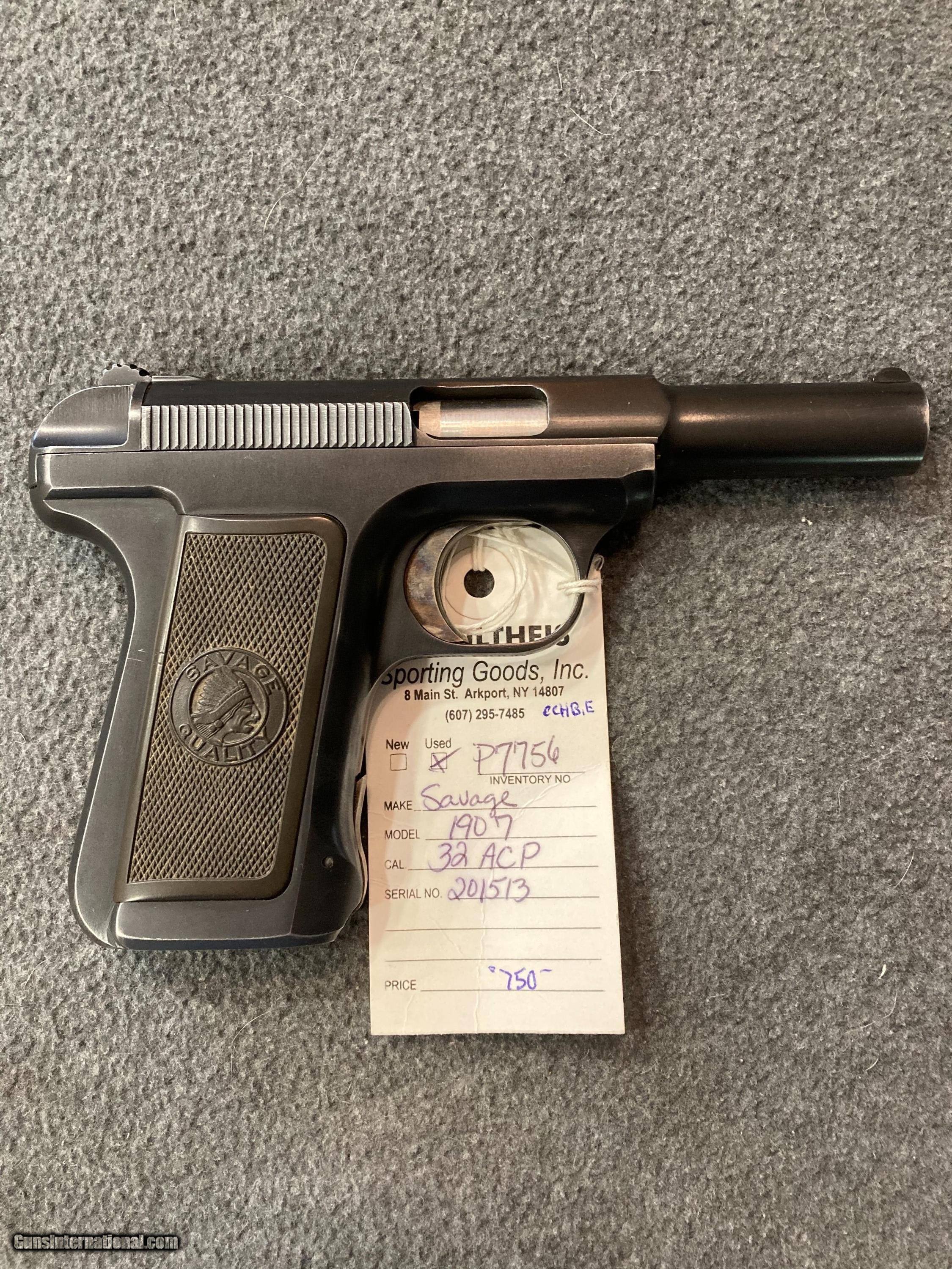 Description: Savage 1907 32acp, #201XXX, matte finish, 97% blue, very slight on each side of muzzle and one small thinning spot on left front grip strap. SOLD |