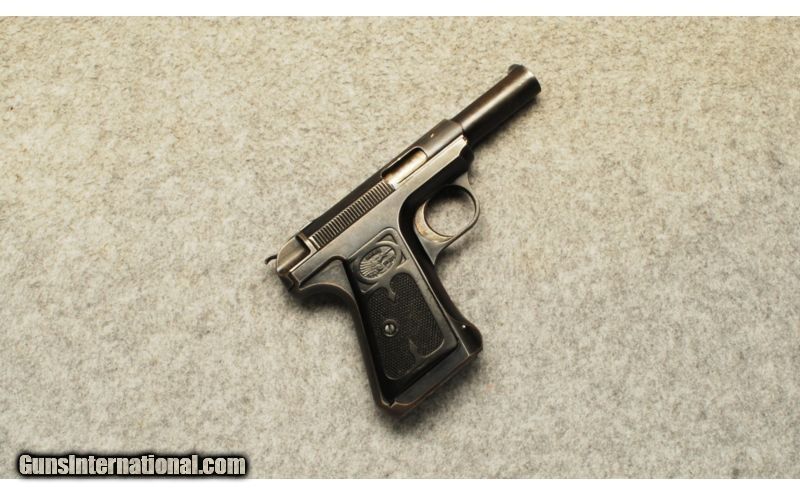 Description: Here we have a decent example of a Savage Model 1917 pistol in .32 ACP. Although the gun shows its age, it remains mechanically sound, and should be a good shooter. SOLD Manufacturer: 1920-1928 Caliber Info: .32 ACP Metal Condition: Fair to good, fading to patina in places, and with some dings and scratches from use Wood Condition: Good, the left grip panel has some chips and dings Bore Condition: Good, strong rifling and bright throughout Barrels: 3.75 Triggers: Single Weight: 23 oz. Sights: Fixed Item Location: Scarborough, ME |