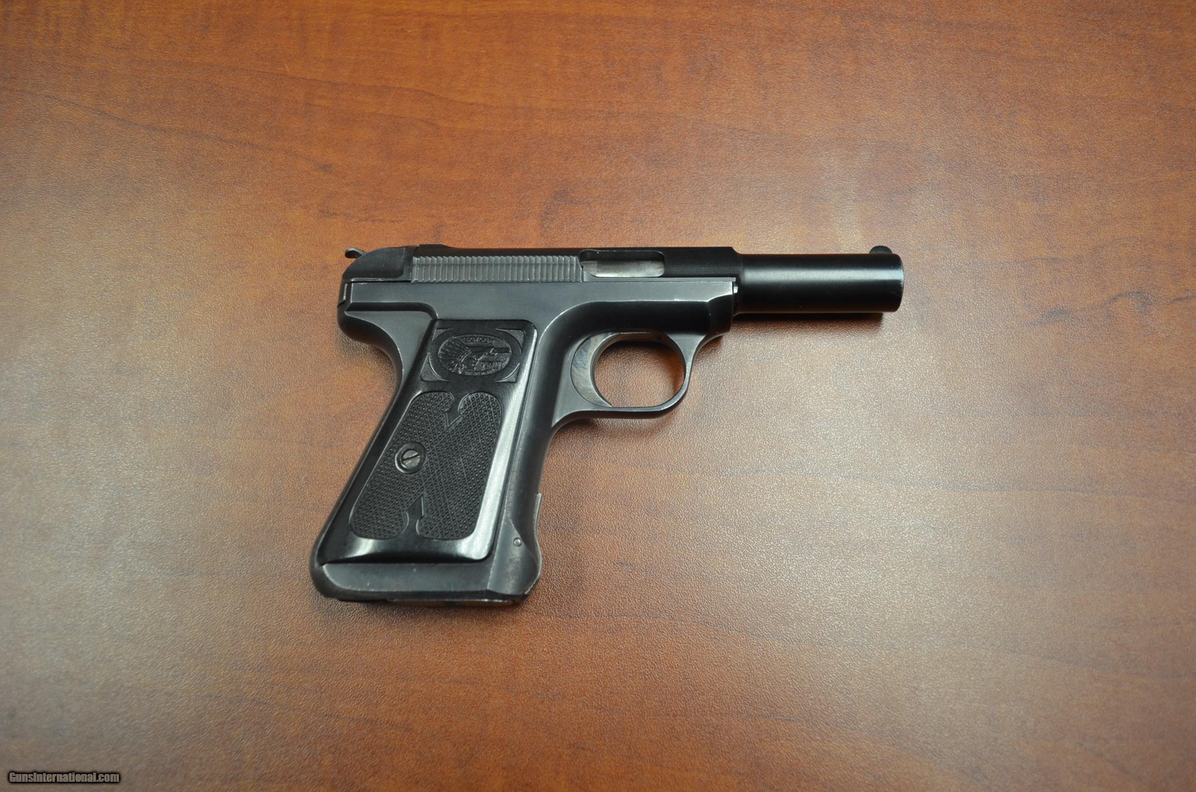 Description: Savage 1917 32ACP 3.75” barrel- this pistol is a Savage model 1917 chambered in 32acp. Pistol has original finish which shows wear from use and age. Pistol has black savage grips and fixed sights. Pistol comes with original savage two tone magazine. Pistol has a bright bore and strong grooves. Please call and ask for Jason in sales at 610.258.5500 Tuesday through Saturday 10am-5pm. All guns subject to sale in our retail location. SOLD Curio/Relic: Yes Manufacturer: Savage Model: 1917 Caliber Info: 32acp Bore: bright |