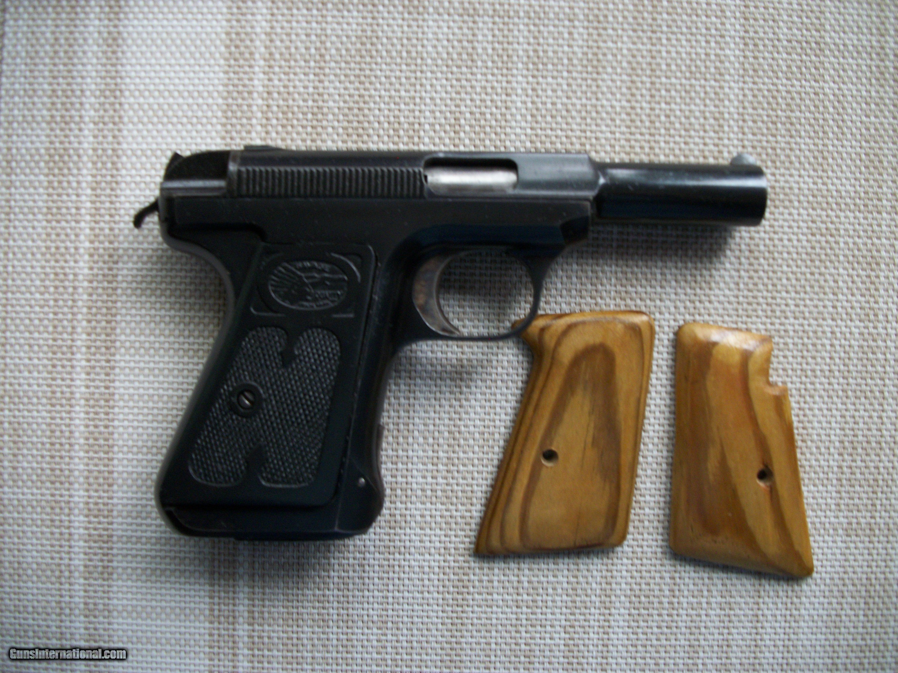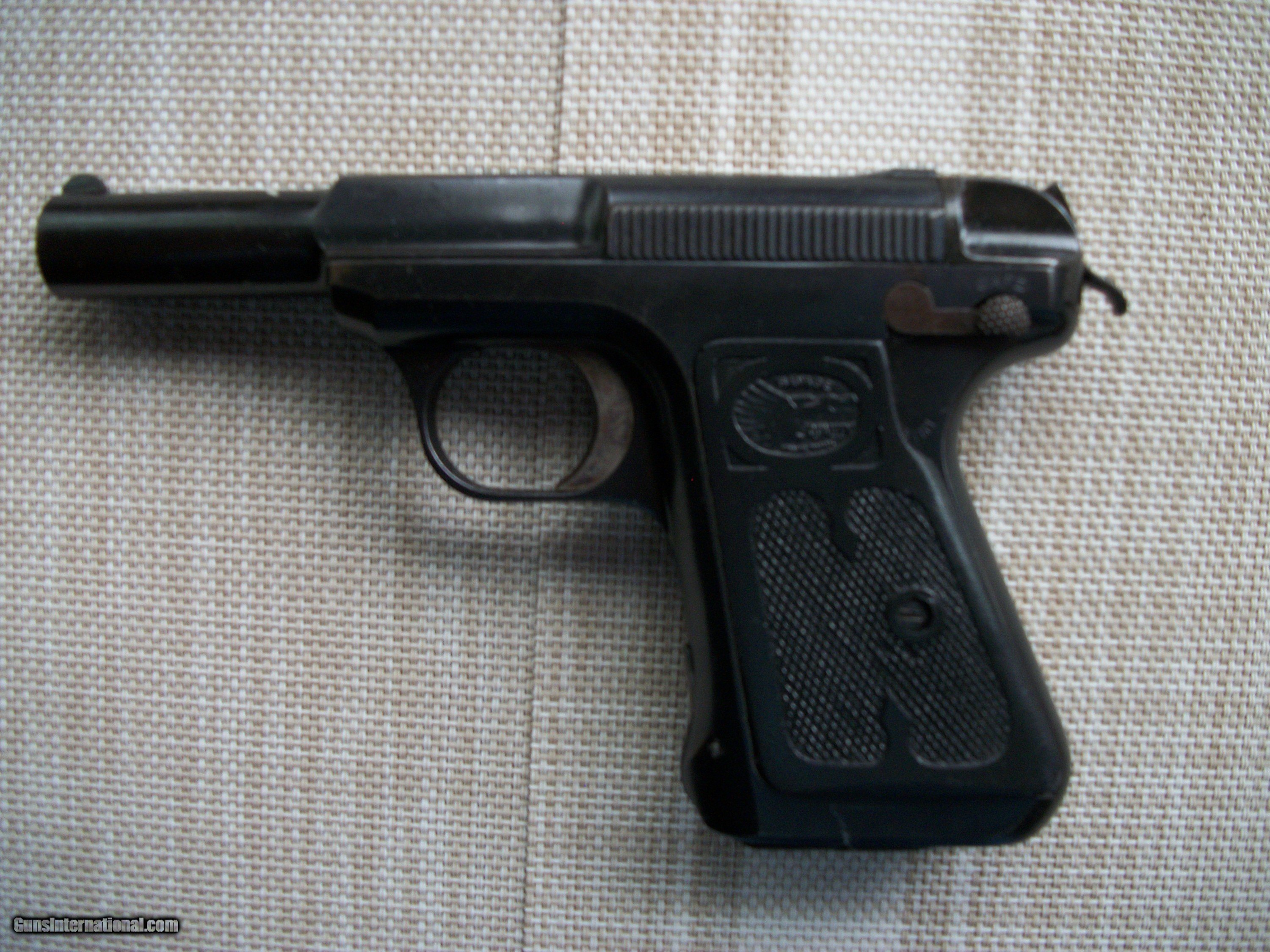 Description: Savage 1917 .32acp mfg date 1920,3in bbl 8rd mag.Pistol is in perfect condition pistol comes with a custom set of wood gripsand a hard case.I ship to the lower 48 only.I accept MONEY ORDERS OR CASHIERS CHECKS Only.Shipping will be $25.00.I will ship to your C&R or FFL.on the same day that payment is received.If return is requested,buyer will pay return shipping and I must be notified first. SOLD Curio/Relic: Yes Handgun Caliber: .32 ACP (7.65x17mm Browning SR) Manufacturer: Savage Model: 1917 Serial Number: 233586 Barrel Length: 3in Condition: excellent Metal Condition: some blemishes Bore Condition: excellent |