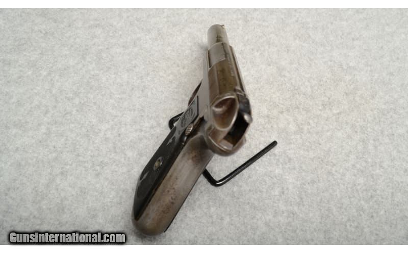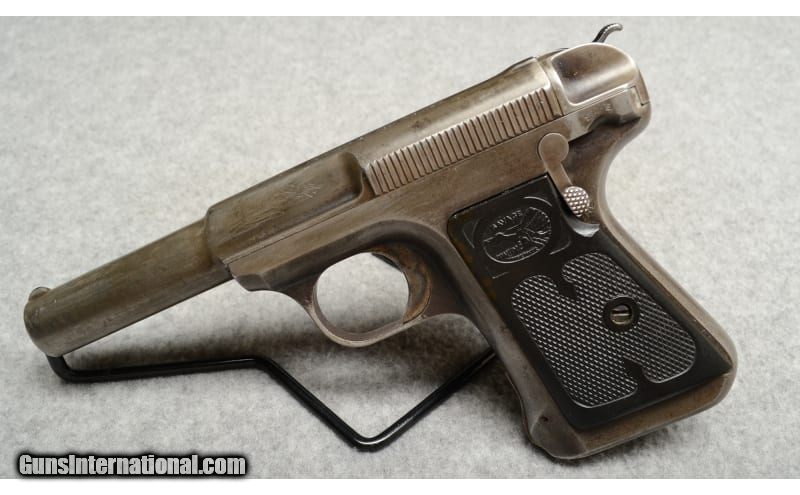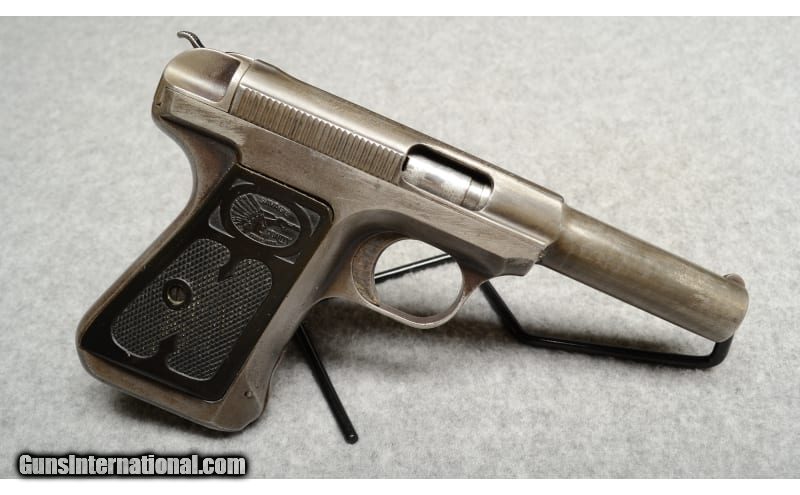 Description: Designed by Army Ordnance Maj. Elbert Hamilton Searle under patents issued to him in 1905, the first Savage .32 ACP guns were designated the M1907. Collectors will find at least 12 variations thereafter. They all featured Searle's locking system. He used the torque of the bullet going through the rifling to slow the rotation and unlocking of the barrel lug a bit—enabling the recoiling parts to be made two ounces lighter than on a pure blowback-operated gun. .380 ACP SOLD Curio/Relic: Yes Metal Condition: Good Bore Condition: Good Barrels: Factory 4 Triggers: Factory Weight: 2 lbs Sights: Factory Item Location: Columbus, OH |