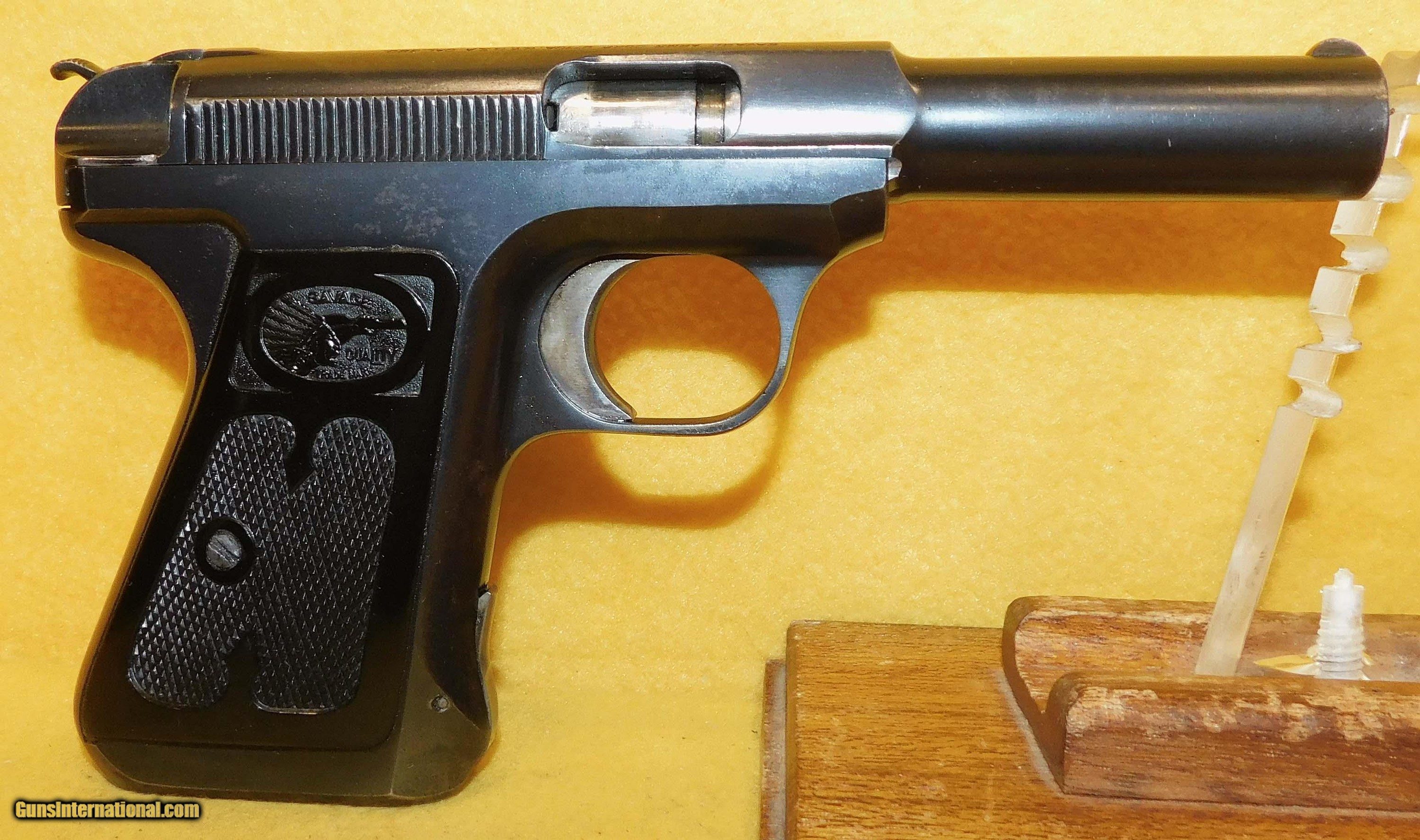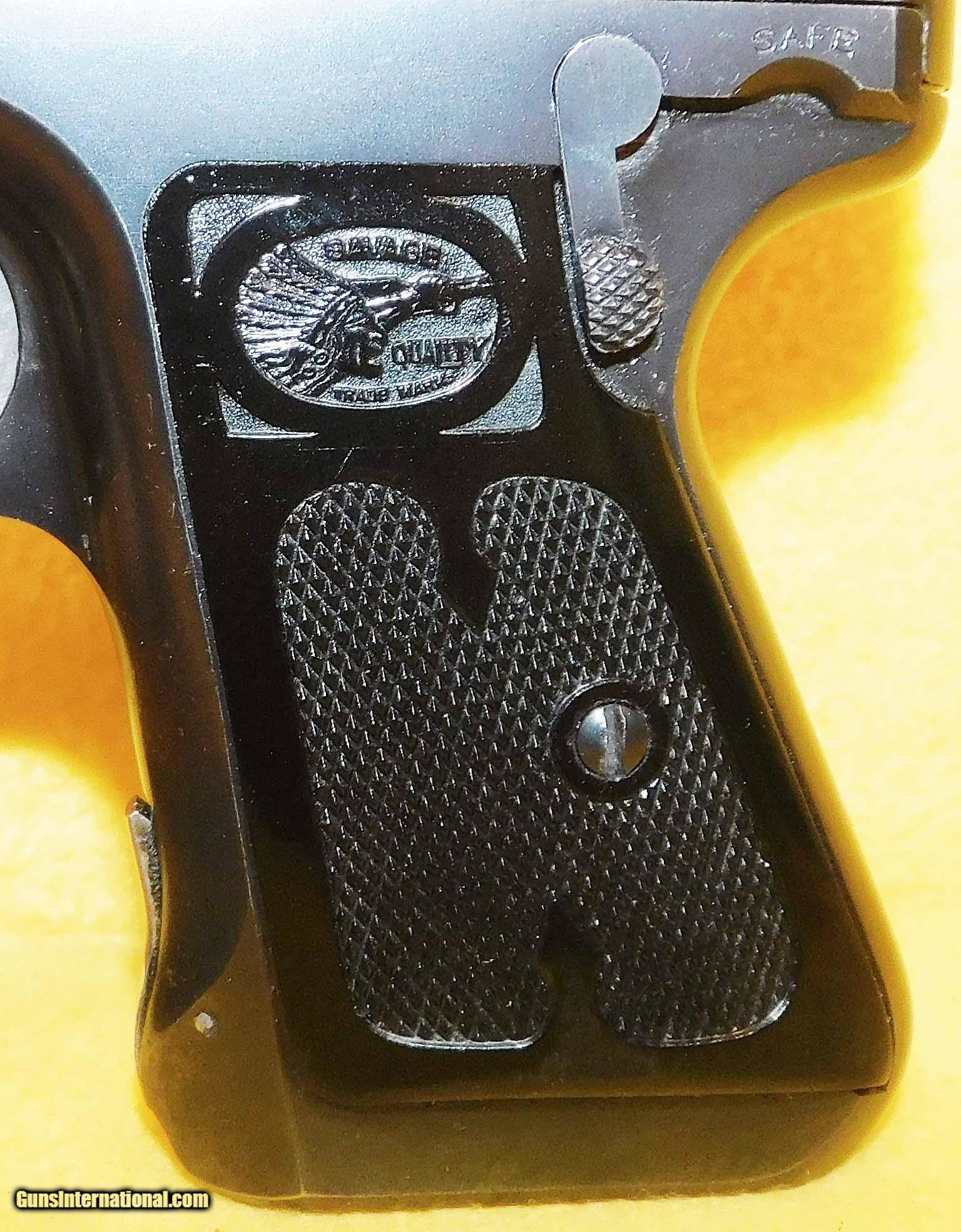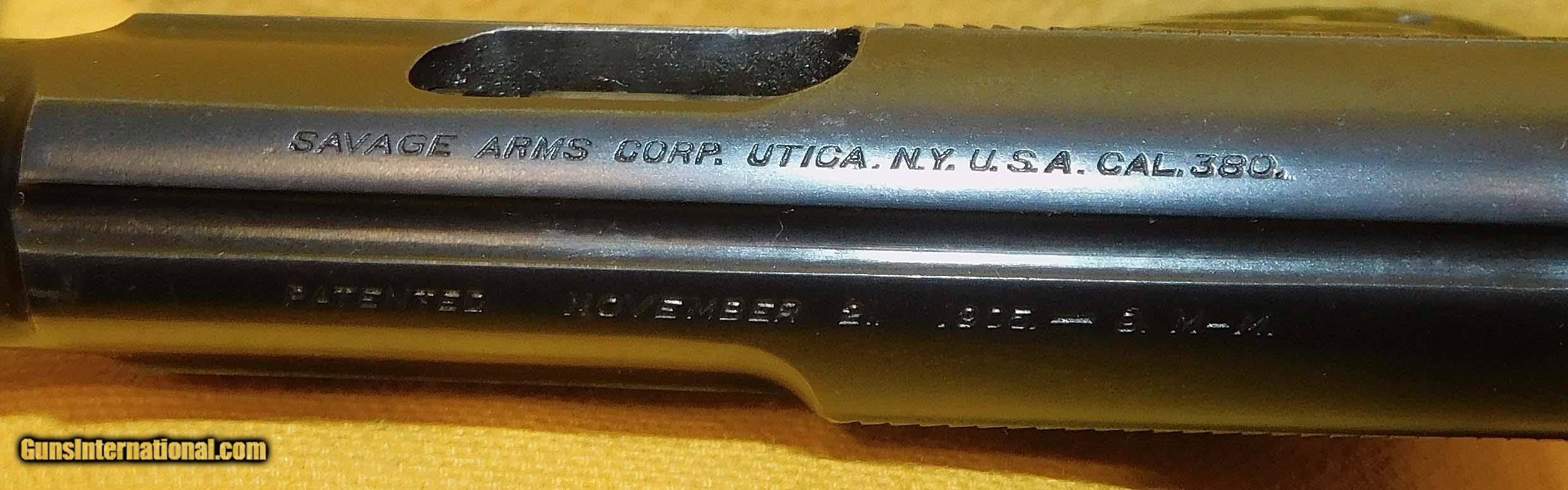 Description: SAVAGE 1917 IN .380 ACP CAL., WITH 4 1/4" BARREL. COLOR BLUE. CONDITION 90%+. SERIAL NUMBER 17703B. SAVAGE MODEL 1917 (CIRCA 1920) IN .380 ACP CALIBER, BAKELITE ONE SCREW GRIPS EXCELLENT, BRIGHT BORE, COMES WITH ONE FACTORY MAGAZINE, 90%+ OVERALL CONDITION, OUR STOCK # D4336 SOLD |