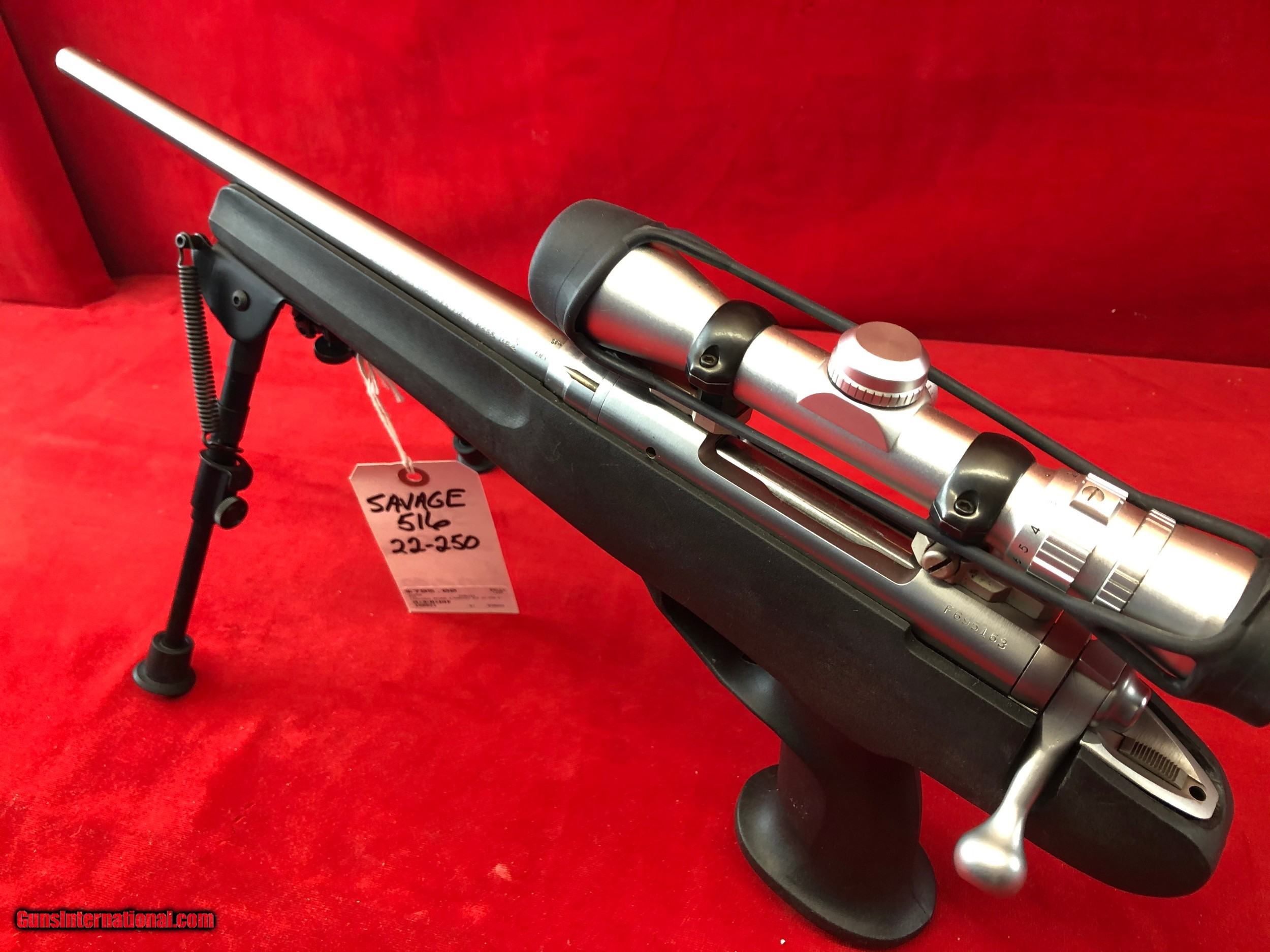 Description: We have a USED Savage 516 chambered in 22-250 Rem. THis Long Range Pistol features a Bousch & Lomb optic 2-6x30, that has very clear glass SOLD Rifle Caliber: .22-250 Remington Manufacturer: Savage Model: 516 Barrel Length: 14 |