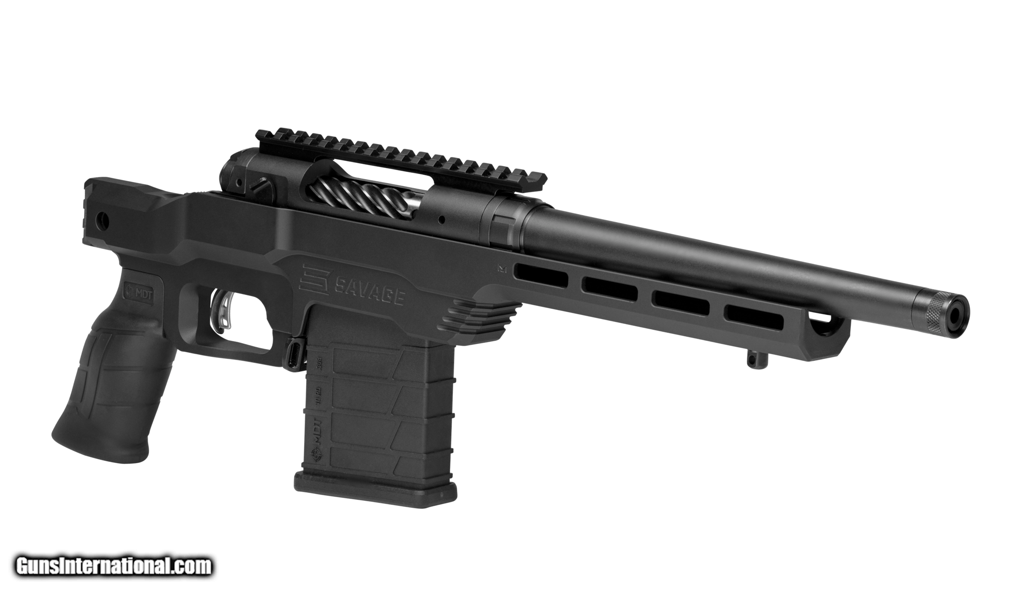 Description: Guns Listing ID: 419627 Savage once again proves there‚‚s no limit to the adaptability of the Model 110. The new 110 PCS is a bolt-action pistol built around the 110s factory blueprinted action. The 110 PCS has a user-adjustable AccuTrigger for a crisp, clean pull. The action is secured in a one-piece aluminum chassis from Modular Driven Technologies (MDT) and includes an AICS-style detachable box magazine. The 110 PCS combines compact performance with the Model 110s exceptional reputation for accuracy and reliability. This Model is Left-Hand Bolt, Right-Side Ejection. Accepts most AR-15 pistol grips SOLD Manufacturer: SAVAGE ARMS Model: 110 PCS Caliber Info: .223 REM Condition: new Barrels: 10.5 BARREL Finish: BLACK CERAKOTE |