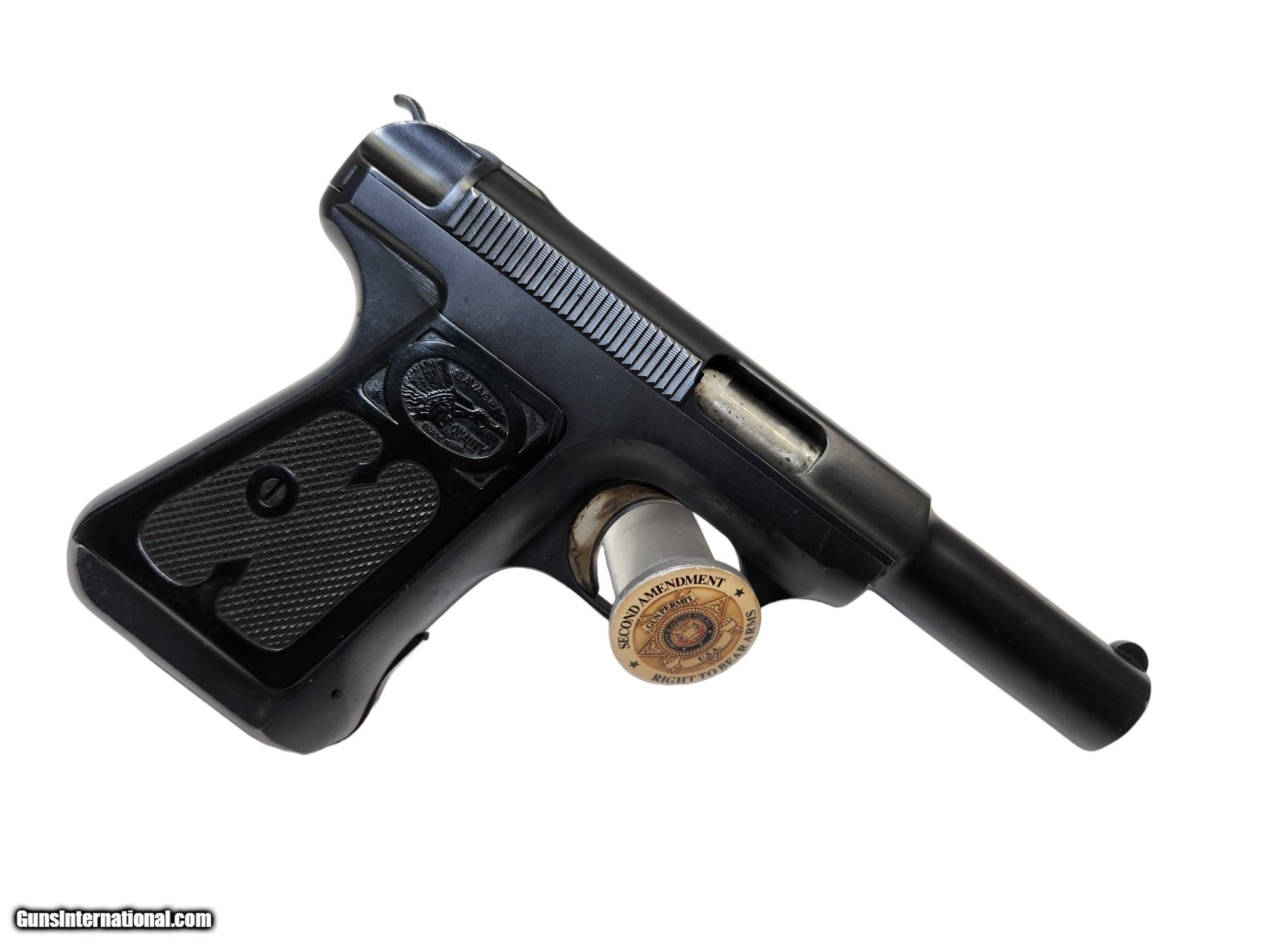 Description: Guns Listing ID: 1210081 For sale is a used Savage Arms Model 1907 chambered in .32 ACP (Automatic Colt Pistol). Here‚‚s a detailed description: Key Features: Brand: Savage Arms Model: Model 1907 Caliber: .32 ACP (Automatic Colt Pistol) Condition: Used Pistol Features: The Savage Arms Model 1907 is a semi-automatic pistol known for its reliability and unique design features. Some key features include: Caliber: Chambered in .32 ACP, a popular cartridge known for its manageable recoil and sufficient stopping power for self-defense purposes. Semi-automatic Action: The pistol operates on a semi-automatic action, allowing for rapid follow-up shots with minimal manual operation. Magazine Capacity: The Model 1907 typically features a magazine capacity of 10 rounds, providing ample firepower for its compact size. Condition: This used Savage Arms Model 1907 is in good condition, showing signs of wear consistent with its age and previous use. As with any used firearm, there may be minor cosmetic imperfections such as scratches or finish wear, but the overall function of the pistol remains reliable. Legal Considerations: Prospective buyers must comply with all local, state, and federal regulations governing the purchase and ownership of firearms, including any specific regulations regarding the sale and possession of firearms chambered in .32 ACP. Note to Buyers: It‚‚s advisable to have the pistol inspected by a qualified firearms expert before purchase to ensure its safety and proper function. Additionally, buyers should familiarize themselves with the characteristics and specifications of .32 ACP ammunition, as it may not be as commonly available as other calibers. Historical Significance: The Savage Arms Model 1907 holds historical significance as one of the early semi-automatic pistols designed and produced in the United States. Its innovative features and reliable performance make it a popular choice among collectors of vintage firearms and enthusiasts interested in firearms history. Whether for collection, display, or occasional shooting, the Savage Model 1907 offers a tangible connection to the past and a testament to the ingenuity of its designer SOLD Curio/Relic: Yes Manufacturer: SAVAGE ARMS Model: 1907 Caliber Info: .32 ACP Condition: Used - Non-Certified Barrels: 3 BARREL Finish: BLACK |