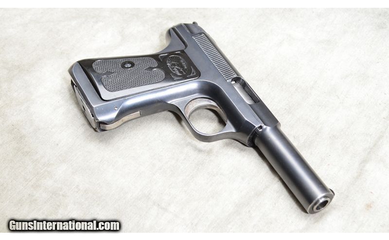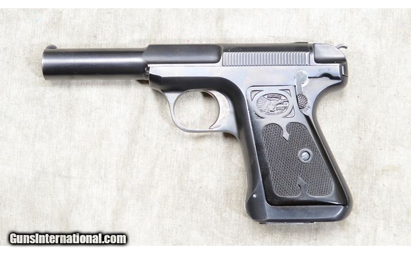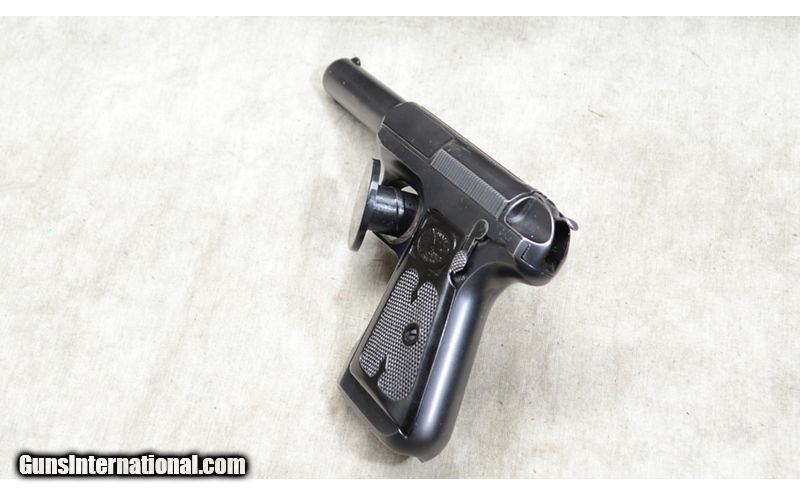 Description: This little pistol features external hammer, nice Bakelite handle grips, and has the box/manual/2 mags. .380 ACP SOLD Chambers: 9+1 capacity Metal Condition: Very good. Small amounts of finish wear at the high points. Wood Condition: Very good. Bore Condition: Shiny and bright. Barrels: 4-1/4 inch. Triggers: Factory single action. Butt Pad: Black Bakelite with molded in checkering and Owl Logo. Weight: 23 oz. Sights: Low profile post and top slide notch Item Location: Rogers |