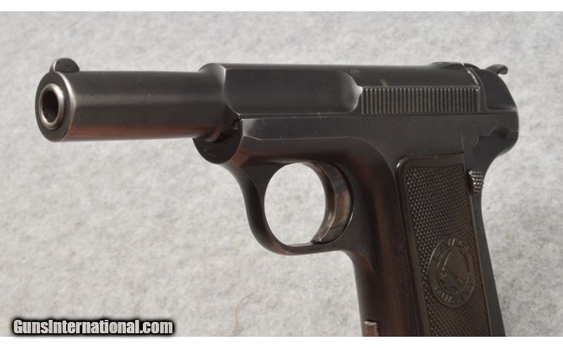 Description: This is a very nice Savage Arms Model 1907 semi auto pistol in .32 ACP. The Model 1907 was produced from 1908 to 1920 as a personal pocket pistol for self defense. The blued barrel and frame are in very good condition. The blued 3" barrel is very good with sharp rifling in its bore. The factory curved smooth trigger is firm and smooth on release. The factory black plastic hand grip panels are very good with very defined checkering and company logo. This Savage pistol is quite a piece of history to own, that isn't seen much. No box or other accessories. .32 ACP SOLD Curio/Relic: Yes Metal Condition: Very Good Bore Condition: Very Good Barrels: Blued 3 Triggers: Factory Curved Smooth Stock Dimensions: 3" LOP Weight: 20 oz. Sights: Fixed Front and Rear Item Location: West Chester, OH |