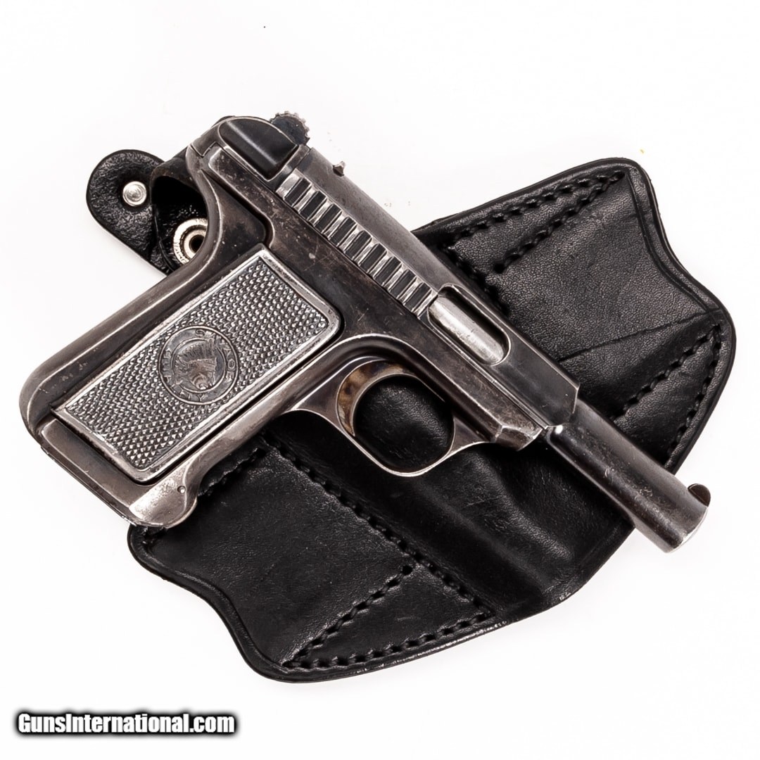 Description: Guns Listing ID: 328804 The Savage Arms Model 1907 is a vintage turn of the century handgun that was designed in 1907 and first produced in 1908. It is most famous for being the first "high capacity" handgun as it could hold 11 rounds (including 1 in the chamber). This model may be considered obsolete by present day standards; however, the idea of high-capacity pistols is certainly not. This pistol has some worn bluing and patina on the finish, which is expected for a gun of this age. It includes one 10-round magazine. Serial number: 5079 SOLD Curio/Relic: Yes Manufacturer: SAVAGE ARMS Model: MODEL 1907 Caliber Info: .32 ACP Condition: used Barrels: 3.75 BARREL Finish: BLACK |