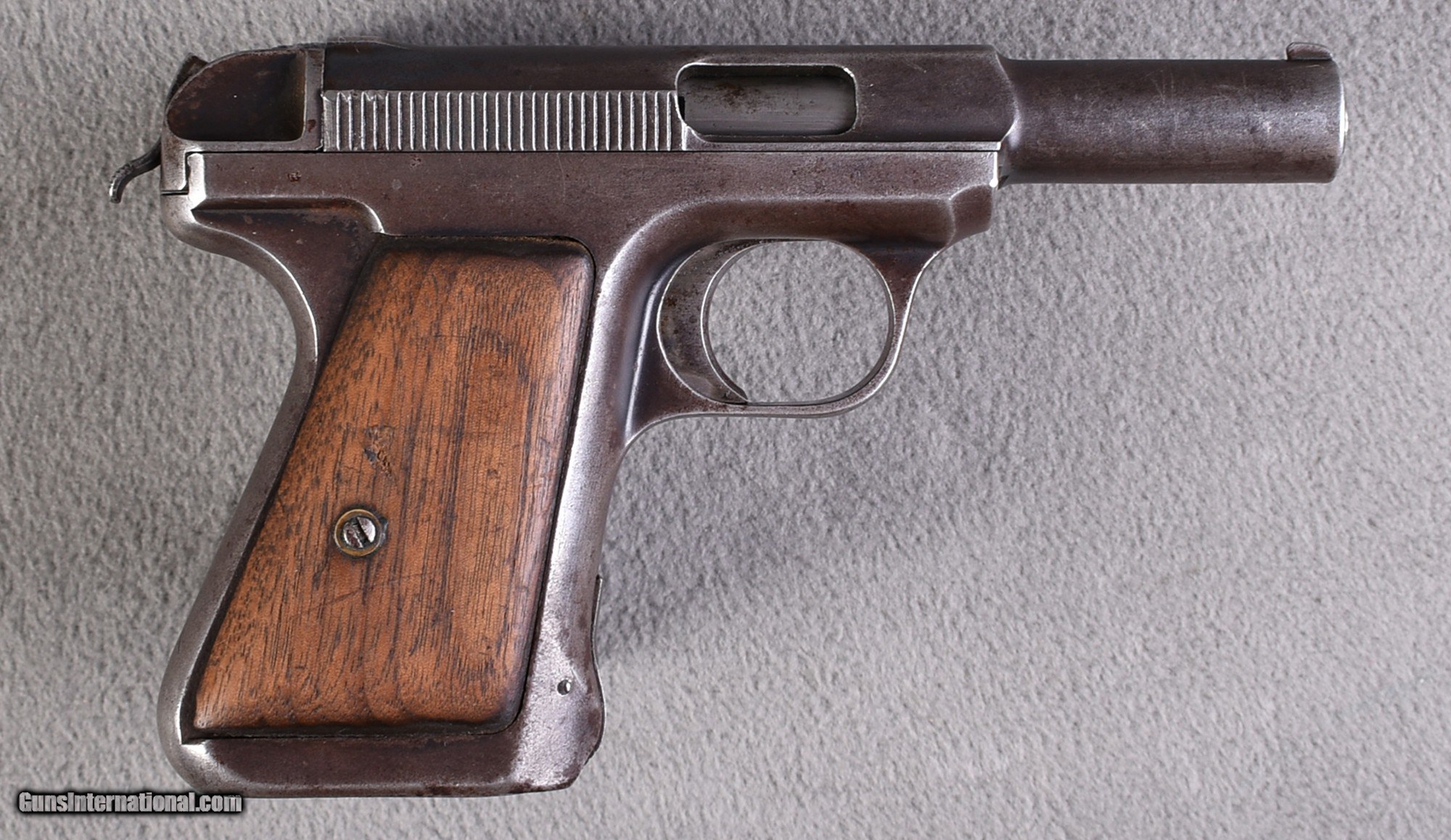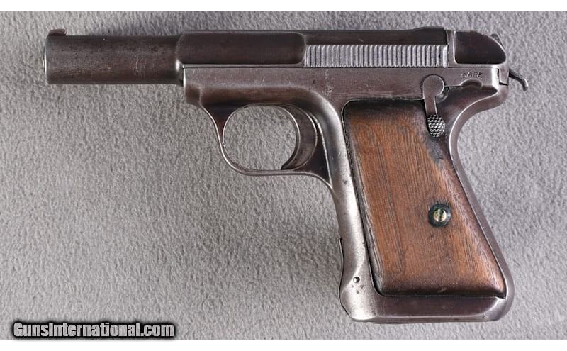 Description: The Savage Model 1917 in .32, manufactured circa: 1920-1928 is a compact, art-deco–styled pocket pistol with real historical heft — comes with one 8-round magazine and for its age, is offered here in excellent condition. Top of slide reads: "Savage Arms Corp. Utica N.Y. USA Cal 32, Patented November 21 1905-7.65 M-M." A direct descendant of Savage's earlier 1907/1915 designs, the 1917 continued Savage's clever use of a double-column magazine and high-capacity layout for its size, a progressive feature that predated many later high-capacity designs and adds genuine collector interest. For the buyer who values small-frame vintage automatics that combine unusual engineering, period styling, and practical shootability, this Savage 1917 is a tidy, well-preserved example that's ready for display or careful range use — please be sure to carefully review all photos provided to fully understand the condition of this firearm before purchasing. This firearm is being offered by the Boise Cabela's Gun Library. We will ship for free to your local Cabela's or Bass Pro Shops for transfer to you. If you are interested in purchasing or have any questions, please call the Boise Cabela's Gun Library directly at (208)-672-7922. Payment by credit card or Cabela's/Bass Pro Shops gift cards is required at the time of purchase. We cannot accept debit cards over the phone, so if you are ready to purchase, please have payment information available. Before calling, please also have the make, model, price, and Cabela's/ Bass Pro SKU or seller's inventory number from Guns International on hand. If you reach our voicemail, please leave a message with this information, and we will return your call as soon as possible. Thank you for your interest. 7.65MM (.32 ACP) SOLD Curio/Relic: Yes Barrels: 91mm Weight: 1.4 lbs Item Location: Boise, ID |