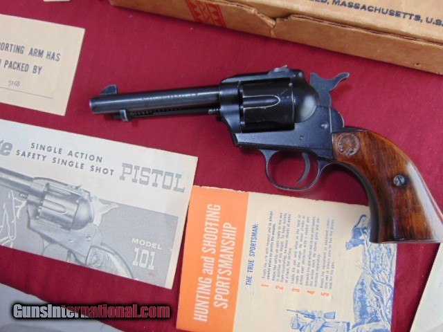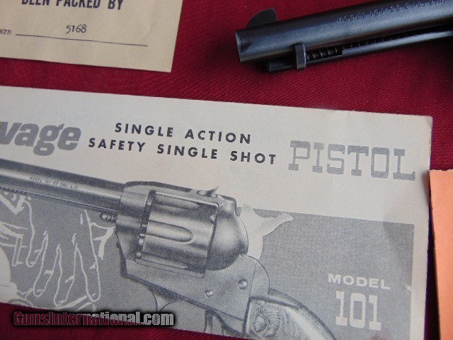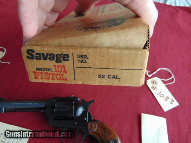 Description: SAVAGE MODEL 101 SINGLE SHOT REVOLVER 22LR WITH BOX INVOICE 1968 Lister Inventory #: #1033 Description: SAVAGE MODEL 101 SINGLE SHOT 22LR REVOLVER . COMES WITH 1968 DATED RECIEPT FROM J.C. PENNY & PRICE TAG $21.95. SER# 43608. GUNS IN GOOD CONDITION WITH SOME FINISH WEAR. BOX IS EXCELLENT CONDITION . EASTERN BRANCH FIREARMS ADD 35.00 SHIPPING – HANDGUN UPS 2ND DAY AIR ADD 35.00 SHIPPING – LONG GUNS GROUND SHIPPING Questions e-mail or call Glen at Eastern Branch Firearms 207-215-5021 TERMS – PLEASE READ BEFORE I DO NOT HAVE A LAYAWAY OPTION ( I DO ACCEPT CREDIT CARDS ) -- I GET ALOT OF REQUEST FOR TRADES, I WOULD PERFER NOT TO DO TRADES ON MY INTERNET LISTINGS. LEGAL REQUIREMENT- Modern firearms must be transferred through a licensed FFL dealer in your area. to supply a signed copy of local dealer’s license before shipment will be made. A C&R License is acceptable for C&R firearms only (guns determined to be C&R’s by ATF and guns known to be at least 50 years old). California law will NOT allow shipment of C&R handguns direct to a C&R holder in the State of California, a 01 FFL LIC. dealer must be used. Antique firearms require to supply proof of age. Some areas still require an FFL transfer for antique & black powder firearms (New Jersey, NYC, etc.) Large capacity magazine restrictions: New Jersey - 15 round maximum for semi-automatic firearms only. California - 10 round maximum for all magazines. Maryland - 20 round maximum for all magazines. Massachusetts - over 10 rounds. Hawaii - 10 round maximum for all handgun magazines. PAYMENT OPTIONS- We accept money orders, cashier’s checks , bank checks. sorry no personal checks. We accept all major credit cards please add 3% to the ’s cash discount price.(Maine Residents to pay 5% sales tax) .Handguns and long guns do need to be shipped separate. PLEASE do not send payment via FED EX . USPS & UPS are fine. Thank you. We include a signed copy of our FFL with each firearm shipped. AMMO •WARNING: Buyer must be over the age of 21 with proof of age to purchase. All state, local and federal laws apply. Please do notif you are prohibited from buying this item in your area. No ammunition will ship to prohibited areas such as the cities of Los Angeles, Oakland and San Francisco. No Shipments to Massachusetts, New York City or Washington D.C. No Shipments to Chicago, IL residents must provide a FOID card. We cannot ship to Alaska or Hawaii. If you are a resident of one of these areas please do not bid. Thank you. SAFTY NOTICE- Buyer is solely responsible for determining that a used gun is safe to shoot. The firearms offered have not been test fired but have been given a visual inspection only for purposes. It is a requirement that every used firearm is inspected by a qualified gunsmith before firing. By , the buyer agrees to hold seller harmless against damages, injury, or death caused by defective merchandise. RETURN POLICY- All firearms come with a 3-day non firing , non messing with ( turning srews ,taking apart,removing parts, scoping. firing, cleaning or messing with in anyway) inspection/return privilege.Inspection is based on a visual review of the gun to confirm the gun is in the condition stated. In the case of a return, buyer pays all shipping charges & if paid for with a credit card buyer absorbs the 3% credit card charges . So please ask questions BEFORE you bid. In the event that the site goes down within 12 hours of the end of the , We reserve the right to relist the item. Thanks for Looking and Good Luck!! U.S. sales only, no exports…this includes antiques. I will ship to third party for exporting- SOLD |