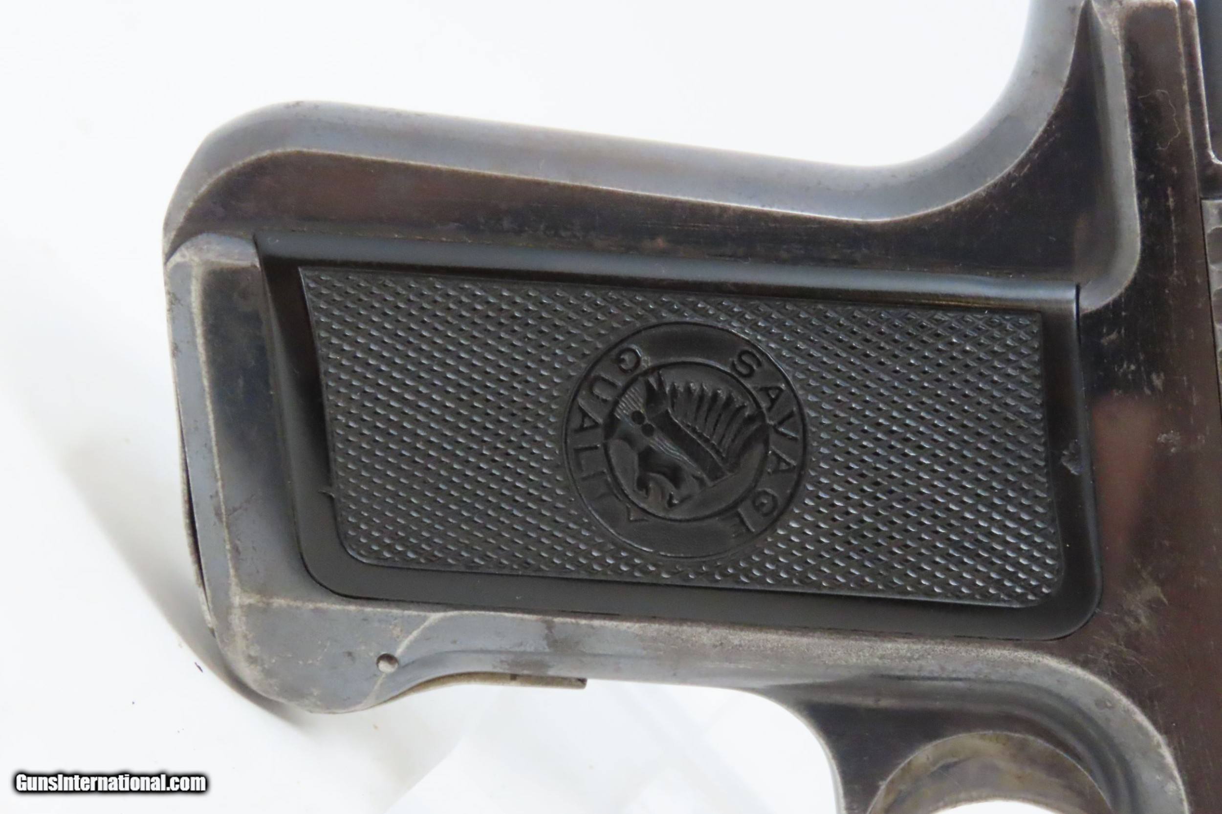 Description: SAVAGE Model 1907 .32 ACP Cal Exposed Hammer POCKET Pistol C&R SELF DEFENSE Made Circa 1910 with 10-Shot Magazine Here we present a Savage Model 1907 Pocket Pistol, made circa 1910 in Utica, New York. The Savage Model 1907 is a semi-automatic pocket pistol produced by the Savage Arms, from 1907 until 1920. Beginning in 1907 it was chambered in .32 ACP and, from 1913 until 1920, in .380 ACP. Although smaller in size, it is derived from the .45 semi-automatic pistol Savage submitted to the 1906-1911 US Army trials to choose a new semi-automatic sidearm. After several years of testing the Savage pistol was one of two finalists but ultimately lost to the Colt entry, which became famous as the Colt Model 1911. In the early 20th Century, Savage was Colt’s primary competition for semi-automatics and this Model 1907 was a best seller. The founder, Arthur W. Savage was a restless and very productive sort who did a little bit of everything during his lifetime. He was born in Kingston, Jamaica to British parents in 1857. He went to school in Baltimore, Maryland in the United States and then in the UK. From there he moved about until he found himself in Australia looking for precious stones, exploring, homesteading and running cattle. He married and started his family (8 children) there before moving to Jamaica to try his hand at agriculture. Some sources say that he grew coffee and some bananas, though likely it was both. Moving on from there, he managed the Utica Belt Line Railroad in New York. In the meantime, he was tinkering with firearms design. By 1894, he seemed to have found his niche and founded his namesake company. Going up against the likes of Winchester, Savage began his firearms line with a lever action rifle, the Model 1895. His Model 1899 is perhaps his most endearing. The cartridges and detachable rotary magazine he developed are two of his most lasting impacts in the firearms industry today. True to character he sold out of the company in about 1905 and moved to California, where he founded the highly successful Savage Tire Company and continued to dabble in firearms. This is a nice example of Savage’s top-selling semi-automatic pistol. It features the exposed hammer and an impressive 10-shot magazine. It is a very nice size for concealed carry and self-defense. Corners are nicely melted and the total weight with an empty magazine is only a little over 19 ounces. The hard rubber grips feature the trademark Indian Chief. The overall condition is fine. Original blue finish and case colors. The action is excellent. The bore is in good condition with strong rifling. The grips are in nice shape. This firearm is classified as a Curio & Relic. Barrel is 3-3/4 inches. Caliber: .32 ACP Overall condition as seen in photos. Very Fast. Very Safe. FREE SHIPPING. Will need to be sent to your local FFL or C&R licensee. This firearm is classified as a Curio & Relic. Guaranteed AUTHENTIC & Includes CERTIFICATE OF AUTHENTICITY. ancestryguns $1050 #226722 SOLD Curio/Relic: Yes |