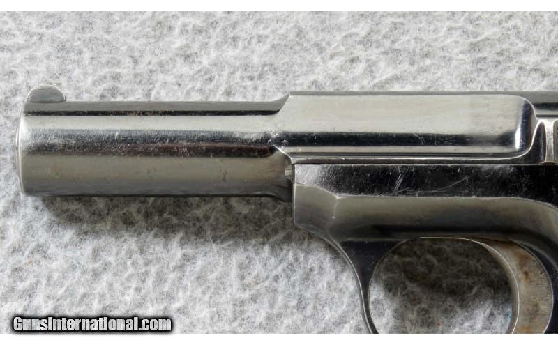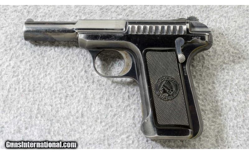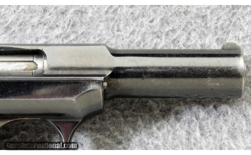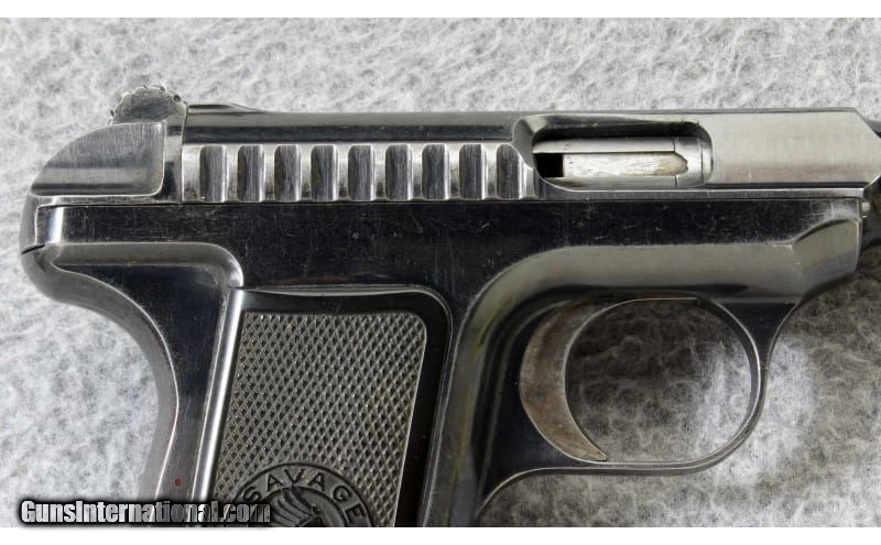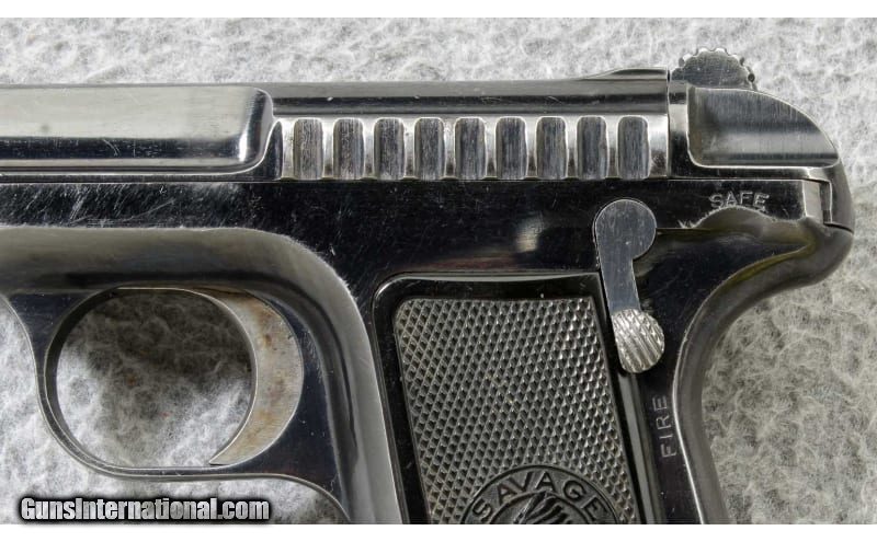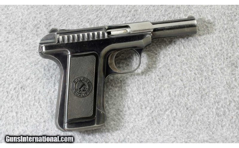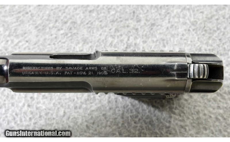 Description: The Savage Model 1907 .32acp semi-automatic pistol has an interesting feature, it employs no screws. Even the grips are snapped in place. The 1907 is a striker fire pistol and the hammer is actually a cocking lever. It also features a double stack magazine holding ten .32 ACP cartridges. The Savage model 1907 would be an interesting piece to add to a collection. Manufactured 1913. .32 ACP SOLD Curio/Relic: Yes Metal Condition: "Very good, with some finish wear on the sharp edges and some fine scratches Bore Condition: "Very good, sharp and bright Barrels: 3 3/4 inch barrel Triggers: Striker fire Weight: 21 oz. Sights: U notch rear sight with blade front Item Location: Lehi, UT |