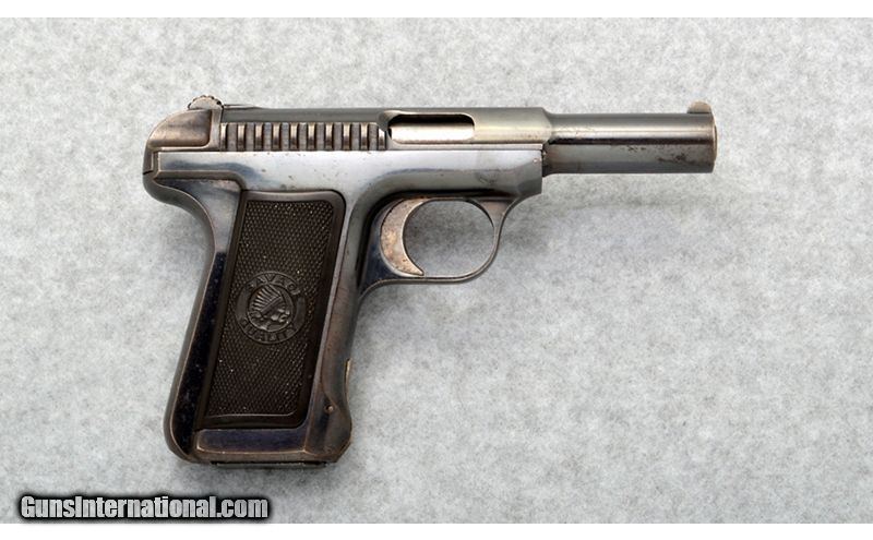 Description: The Savage Model 1907 is a semi-automatic pocket pistol produced by the Savage Arms, from 1907 until 1920. It was chambered in .32 ACP and, from 1913 until 1920, in .380 ACP. Although smaller in size, it is derived from the .45 semi-automatic pistol Savage submitted to the 1906-1911 US Army trials to choose a new semi-automatic sidearm. After several years of testing the Savage pistol was one of two finalists but ultimately lost to the Colt entry, which became famous as the Colt Model 1911. 181 of these .45 ACP pistols were returned to Savage after the testing and sold on the civilian market. .32 Auto SOLD Metal Condition: Good Bore Condition: Very good Barrels: 3.5 Weight: 1.25 lbs. Sights: "Blade front, grooved rear Item Location: Oklahoma City, OK |