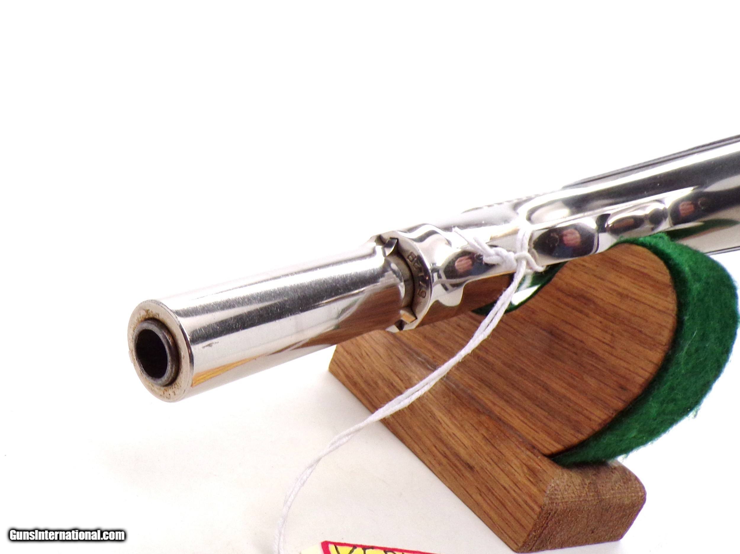 Description: SOLD It is estimated that only 400-600 Savage pistols of all models were nickel plated. Couple that with this one being a .380, you now have what I consider a rare pistol. A very high percentage of the original nickel finish remains. There is some flaking on the right side of the lower back strap. The pictures show the area. Finish would still rate in the high 90's. Notice this one is marked SAVAGE on the left side of the frame. Not all Savage pistols are so marked. All markings are clear and original. What I believe can be the original magazine is included. Grips are excellent with no cracks or chips. These Savage pistols are manufactured without screws. I have shot Savage pistols many times. They are the original double stack magazines. You will enjoy owning this Savage .380. It will make an interesting addition to any collection. For more information or pictures please contact me. American Arms & Antiques item #2781. SOLD |