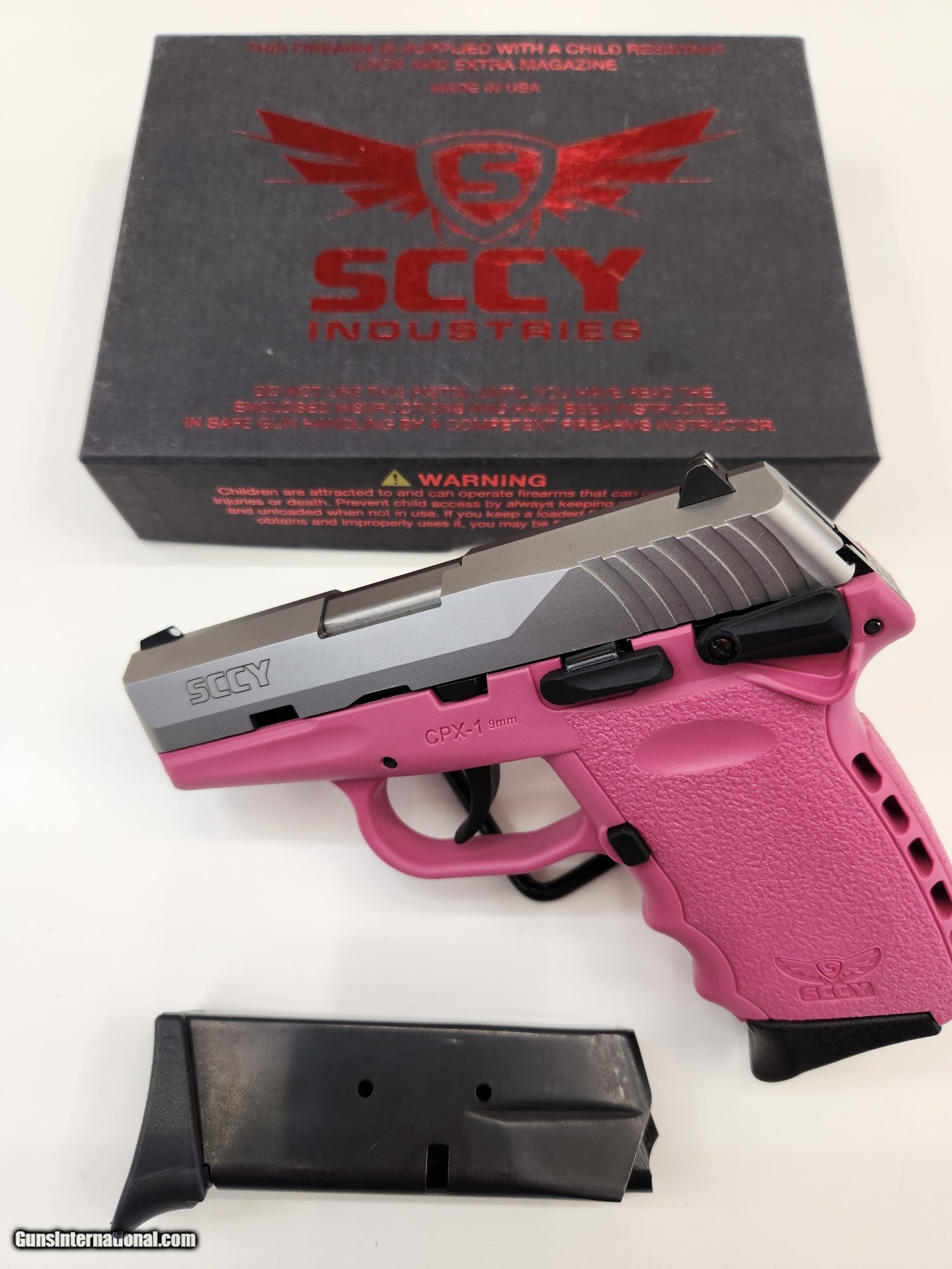 Description: Guns Listing ID: 866348 The SCCY CPX-2 is a polymer-framed semi-automatic pistol chambered in 9mm with a 10 round capacity. A 3.1 barrel is adorned with three dot sights adjustable for windage. The Zytel polymer frame and grip includes ergonomic finger grooves and an integral recoil cushion on the backstrap. Weighing in at just 15 ounces the CPX-2 is a great choice for concealed carry. Details Action-Double Caliber 9mm Capacity 10 Material Zytel Polymer Finish Stainless and Pink Sights 3-Dot Adjustable Length 3.1 Overall Length 5.7 Weight 15 oz. Comes with box and 2- 10 round magazines This SCCY is in excellent condition. SOLD Manufacturer: SCCY Model: CPX-1 Caliber Info: 9MM LUGER (9X19 PARA) Condition: Used - Non-Certified Barrels: 3.1 BARREL |
