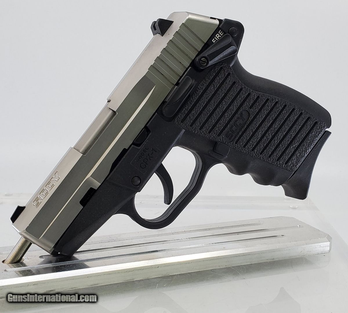 Description: Guns Listing ID: 606081 The CPX-1 is a locked breech design that uses an aluminum receiver set inside the polymer grip housing and attached with steel pins. The CPX-1 uses a slide and barrel machined from 416 stainless steel. The CPX-1 is equipped with a slide stop and locks open when the last round is fired.[2] The handgun has an ambidextrous manual safety that is frame mounted. SOLD Manufacturer: SCCY Model: CPX-1 9MM w/ Safety Caliber Info: 9MM Condition: Used - Non-Certified Barrels: 3.1 BARREL Finish: BLACK AND STAINLESS |