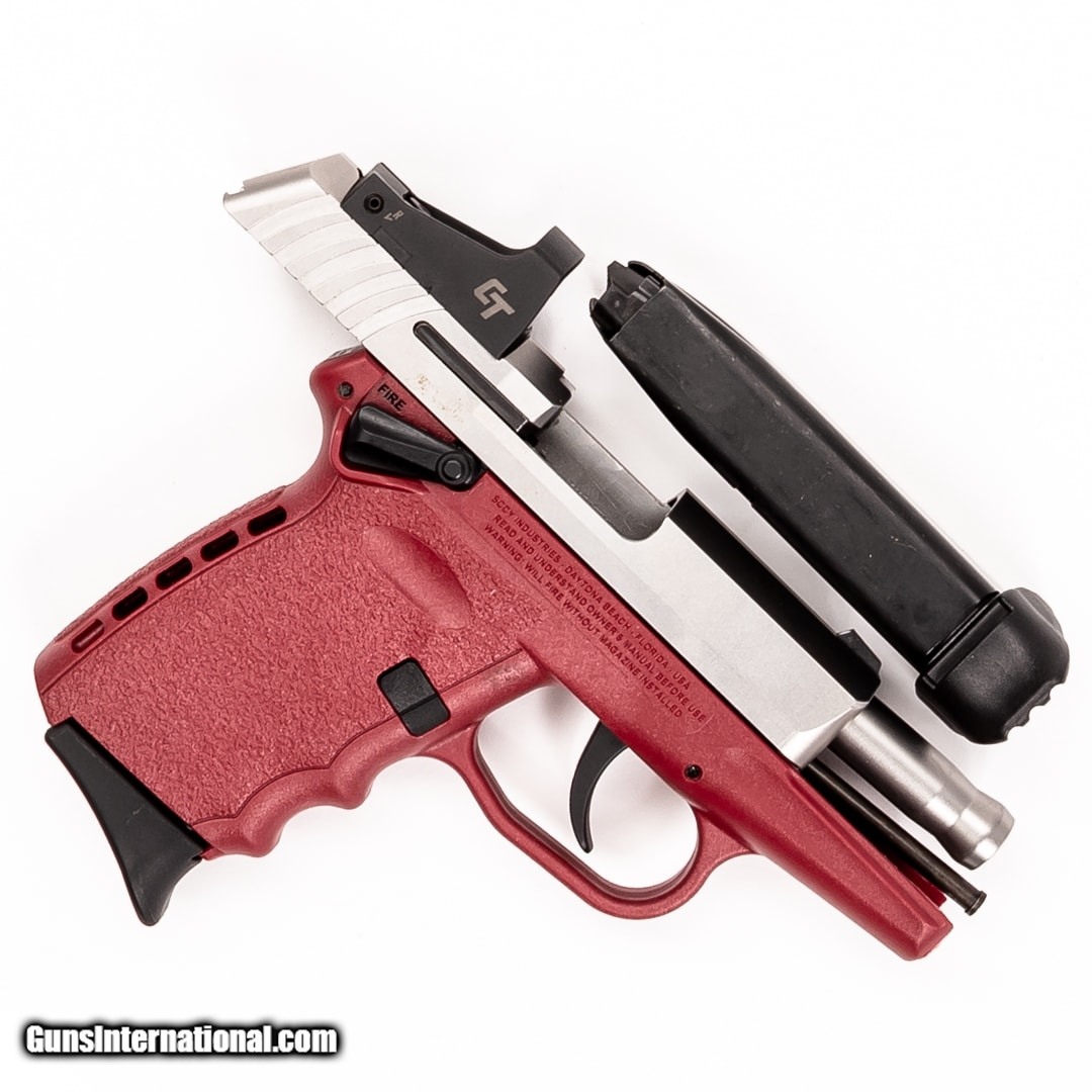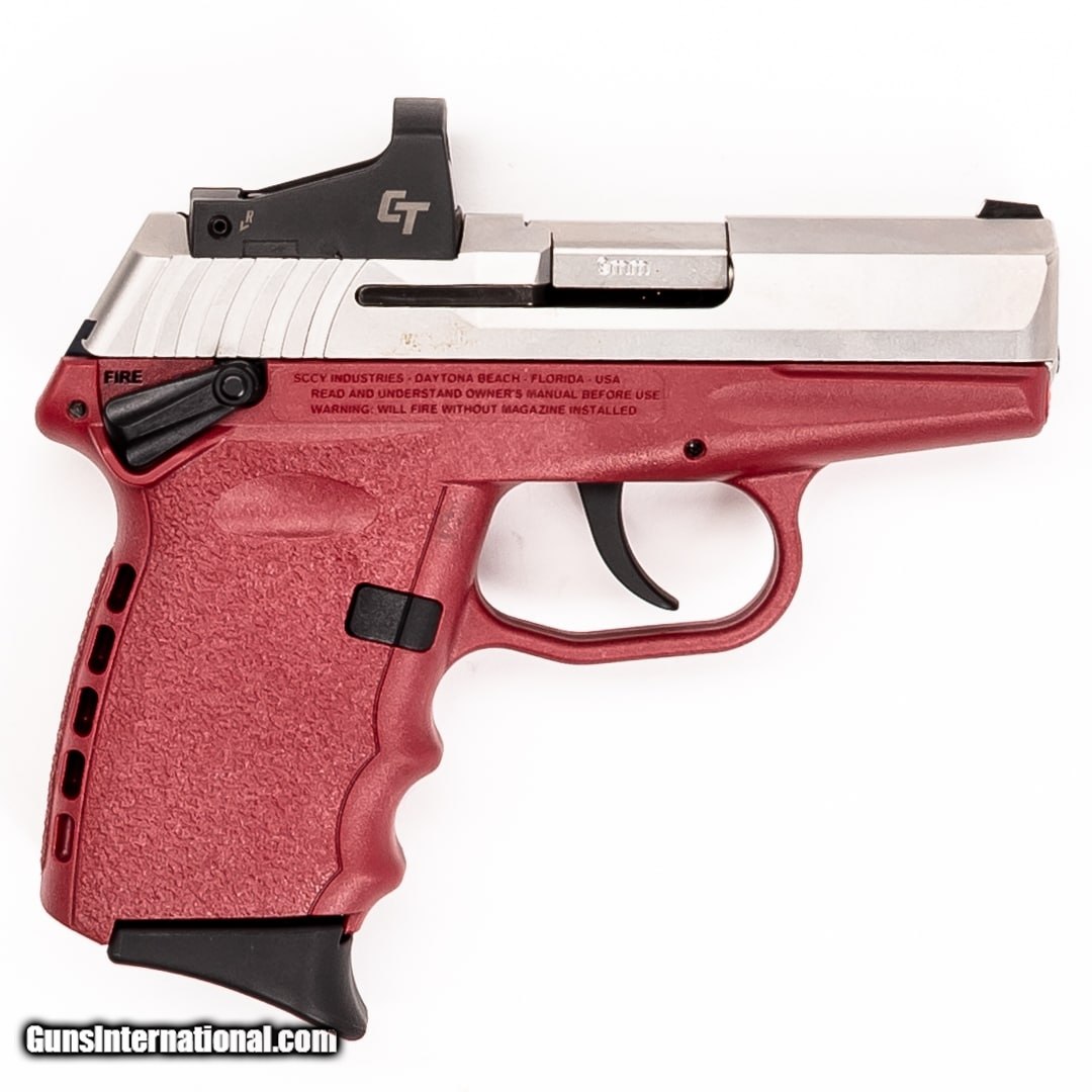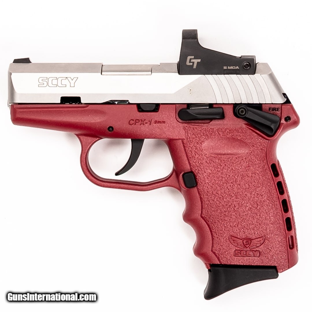 Description: Guns Listing ID: 332614 Lightweight and compact, the SCCY CPX-1 is an affordable American-made handgun designed for concealed carry, easy to operate, and ultra-reliable. An ergonomically designed grip aids in a firm hold, while an integral cushion adds comfort and reduces recoil. This CPX-1 is equipped with a Crimson Trace red dot sight and is in very good condition. It comes in the original box, along with the owner's manual and two 10-round magazines. SOLD Manufacturer: SCCY Model: CPX-1 Caliber Info: 9MM LUGER Condition: Used - Certified Barrels: 3 BARREL Finish: RED |