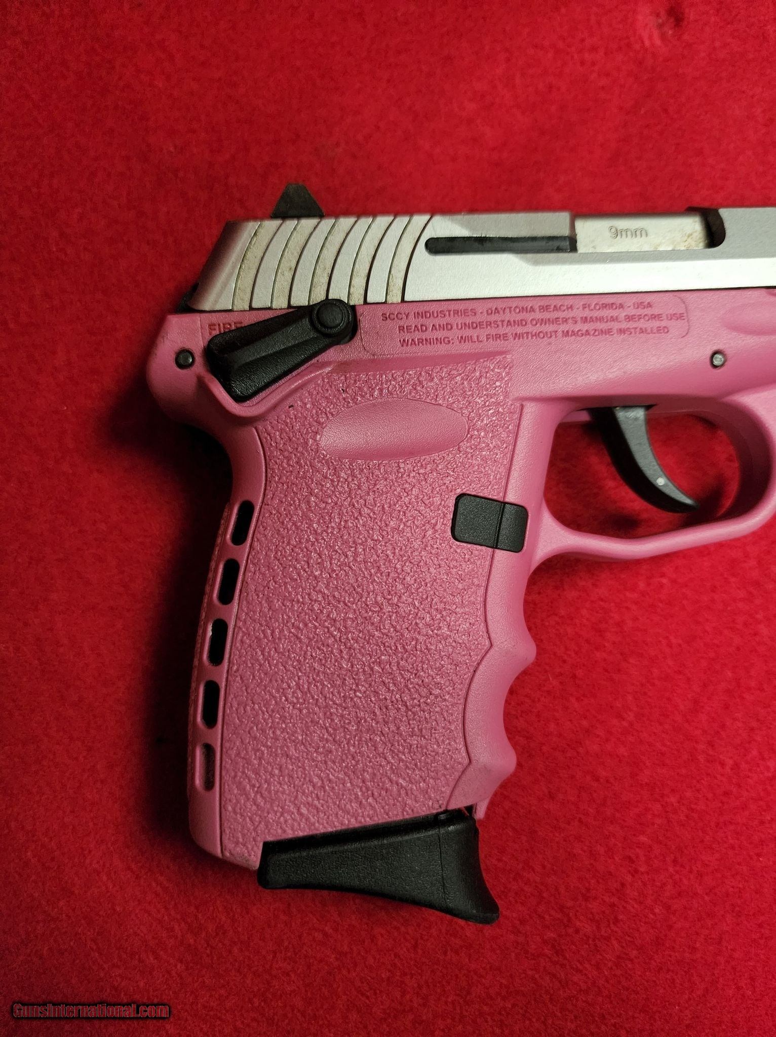 Description: Guns Listing ID: 477961 According to our rating scale I would Rate this gun \"GOOD\". I have taken multiple pictures to show the condition of it. We want you to get the best impression of it. With the hopes when you get it, that it is better than what you thought. 100% working order. Residual dirt and grime scratches on gun Includes firearm and 1 mag, The bore I would rate 7 out of 10. If I had to rate the firearm in condition I would say 7 out of 10. (Please see my pictures for a better detailed idea), Please see all Photos for a very detailed Description of condition. We rate firearms using these condition standards, for modern firearms. REMEMBER IF YOU MAKE AN OFFER, YOU CAN ONLY MAKE ONE EVERY 30 DAYS ON THAT ITEM. SO MAKE IT COUNT!!!!! NEW-A gun given a grade of \"new\" looks just as it did when it left the factory and has never been sold at a retail store. PERFECT-A “perfect” gun is literally as good as new, although it may have been sold in a retail store. EXCELLENT-An “excellent” rating means the gun appears to be in perfect condition but may have had minor use. VERY GOOD-A “very good” firearm is perfect mechanically but may have minor cosmetic blemishes. GOOD-A rating of “good” indicates that the gun is in proper working condition but may show signs of wear. FAIR-A “fair” firearm may or may not be in safe working order. It has not been test fired, only visually inspected. It may need repair or maintenance. UNRATED-Unrated condition means this firearm has not been test fired, it may function perfectly or it may be in need of repair. Cosmetically it may be in very good to fair condition. You will need to look at the pictures and ask questions. SOLD Manufacturer: SCCY Model: CPX-1 Caliber Info: 9MM Condition: Used - Non-Certified Barrels: 3.1 BARREL Finish: PINK |