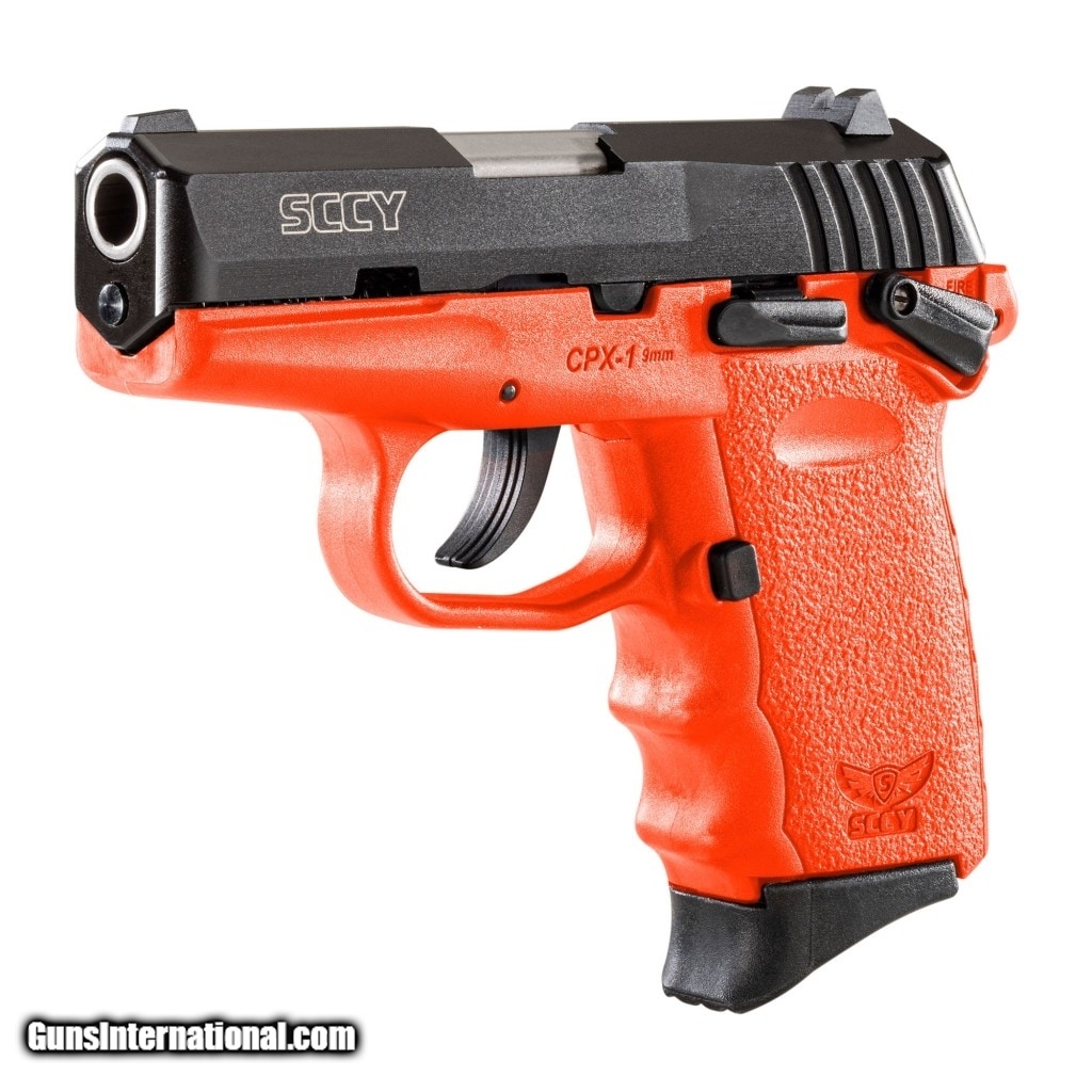 Description: Guns Listing ID: 606832 The SCCY CPX-1 is a polymer-framed semi-automatic pistol chambered in 9mm with a 101 round capacity. A 3.1 barrel is adorned with three dot sights adjustable for windage. The Zytel polymer frame and grip includes ergonomic finger grooves and an integral recoil cushion on the backstrap. Weighing in at just 15 ounces the CPX-1 is a great choice for concealed carry. Details Barrel machined from bar stock with 7 lands and grooves having a 16-1 right hand twist. - Receiver 7075-T6 aircraft grade heat treated aluminum alloy machined from bar stock. - GripFrame Made from Zytel polymer with ergonomic finger grooves and an integral RE-COIL CUSHION on the back-strap. - Recoil Spring System all steel fully encapsulated for ease of disassembly and reassembly. - Slide LockRelease steel with a Zytel over molded polymer extension for ease of operation. - 3 dot sight system steel rear sight adjustable for windage only with locking screw. - Hammer firing system double action only internal hammer with inertial firing pin to prevent accidental discharge if dropped. - Manual Guarded Safety Newly designed with a guard molded into the frame. - Double action trigger specifically designed for shooter comfort and accuracy by designing the system to have a smooth effortless consistent 9 pound trigger pull. - Magazine included with (2) double stack 10 round capacity magazines with finger extension base installed and 2 flat magazine bases included. - Trigger Guard Lock custom designed to properly fit and be child resistant. Includes 2 keys. - DimensionsWeight - Barrel Length 3.1 - Height 4 - Length 5.7 - Width 1 - Weight 15oz SOLD Manufacturer: SCCY Model: CPX-1 Caliber Info: 9MM LUGER (9X19 PARA) Condition: new Barrels: 3.1 BARREL Finish: ORANGE |