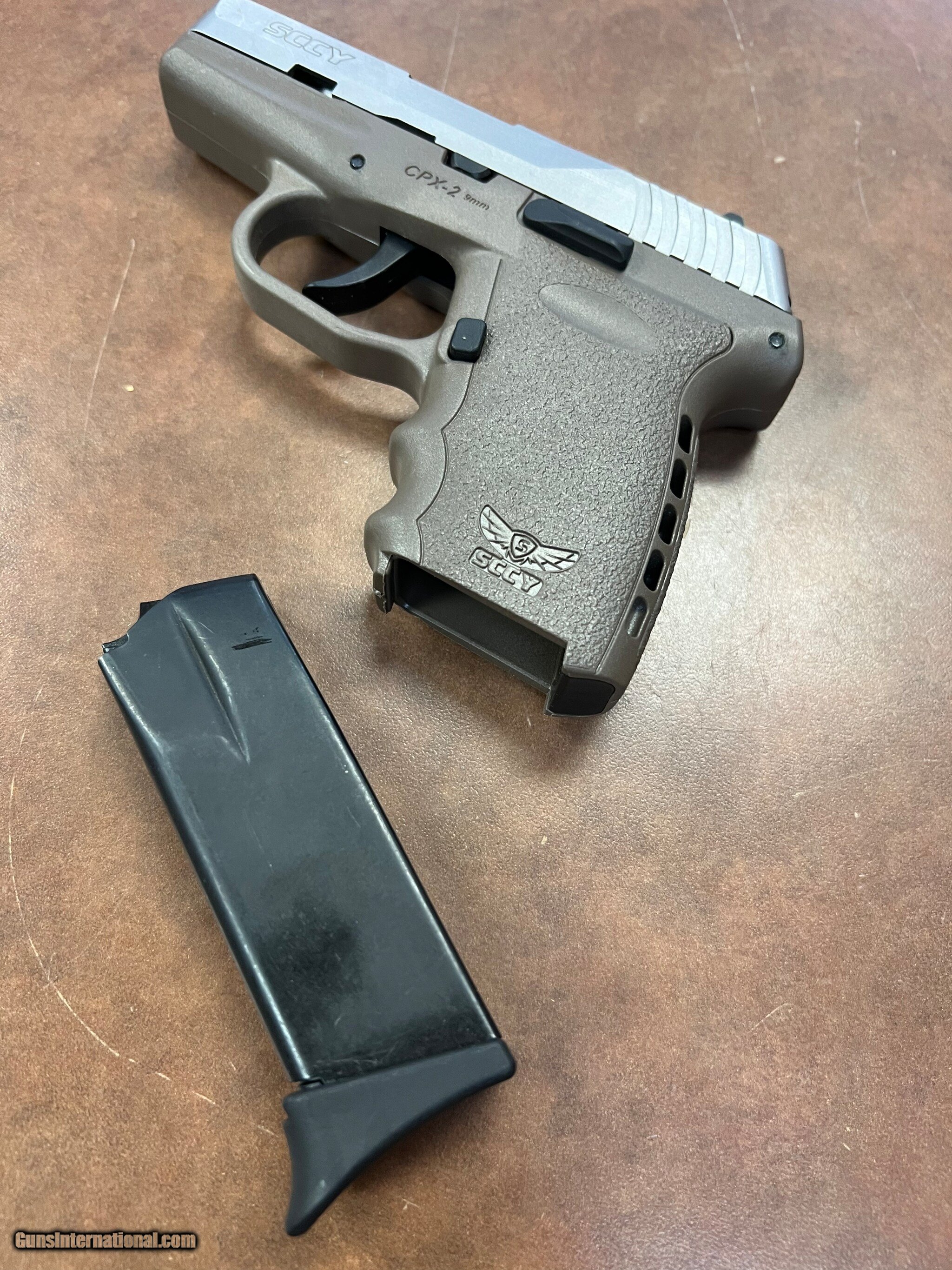 Description: Guns Listing ID: 866081 Used no case One magazine Fixed sights SOLD Manufacturer: SCCY Model: CPX 2 Caliber Info: 9MM LUGER (9X19 PARA) Condition: Used - Non-Certified Barrels: 2 BARREL Finish: TAN AND SILVER |