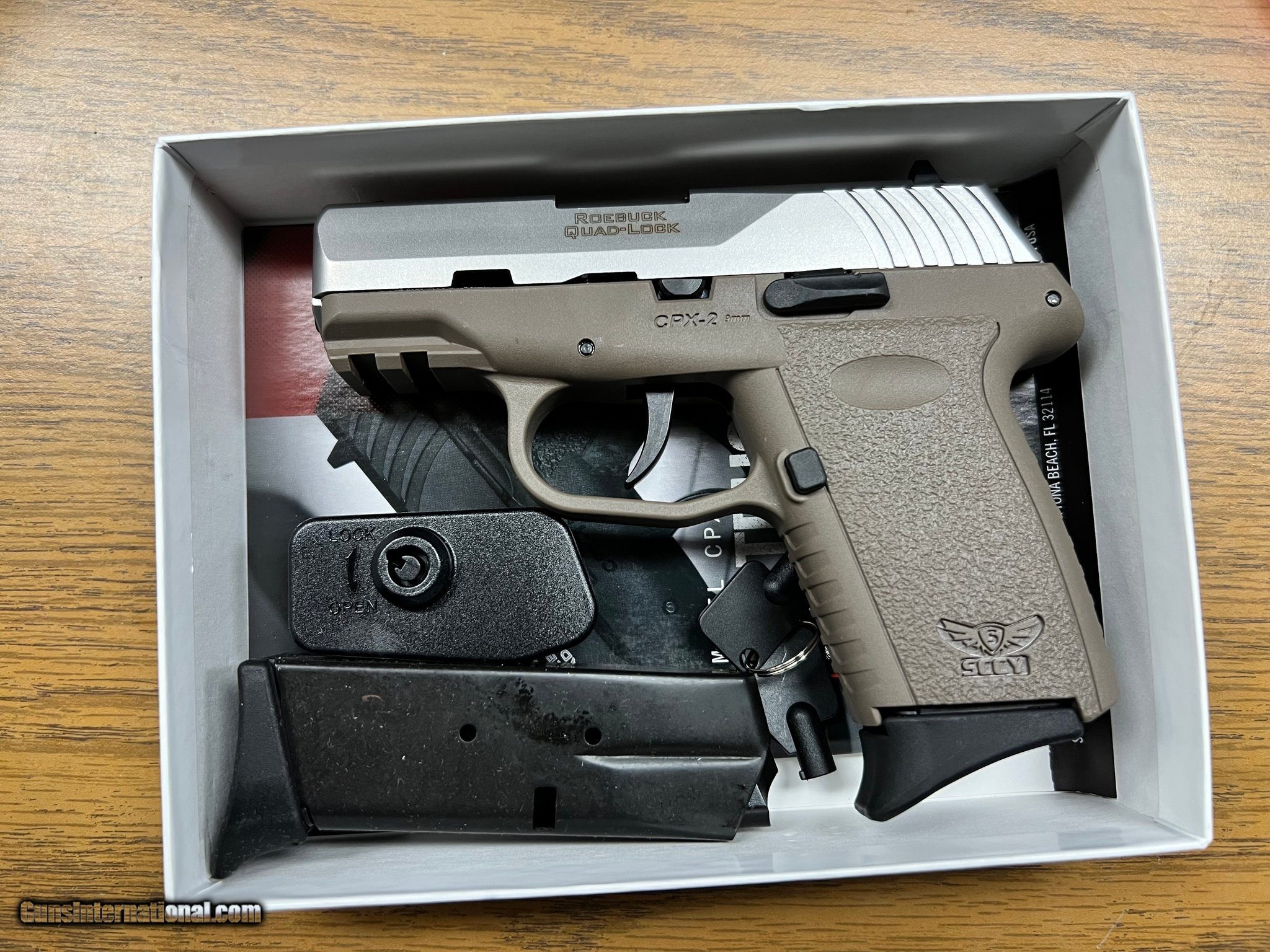 Description: Guns Listing ID: 1306046 Never fired. Box included. FDE and Silver color The CPX-2 is a compact, hammer-fired, DAO pistol chambered in 9mm. SOLD Manufacturer: SCCY Model: CPX 2 Caliber Info: 9MM LUGER (9X19 PARA) Condition: Used - Non-Certified Barrels: 3.1 BARREL Finish: FDE/BLACK |